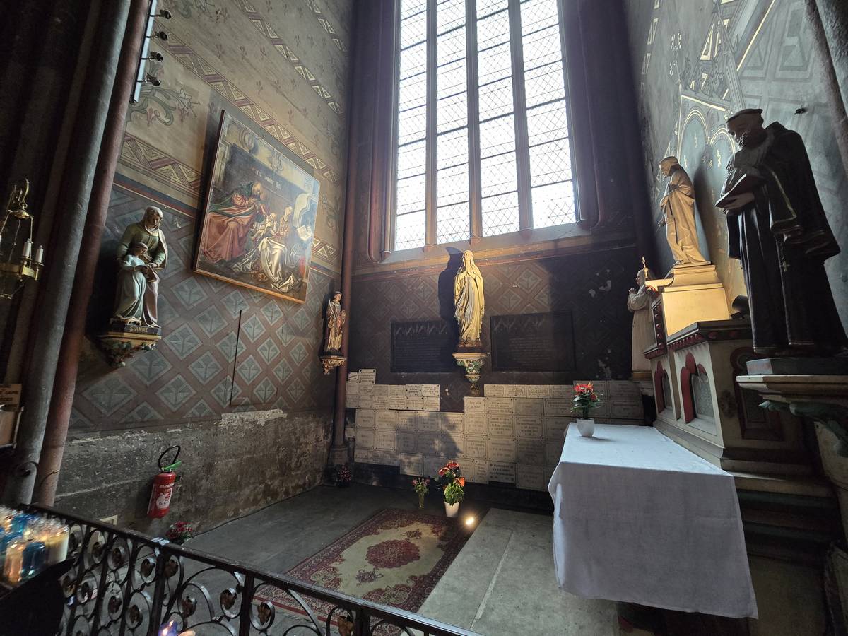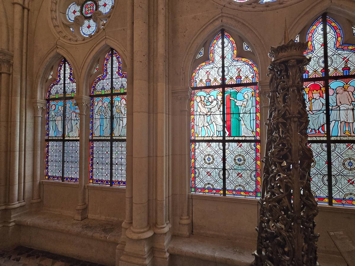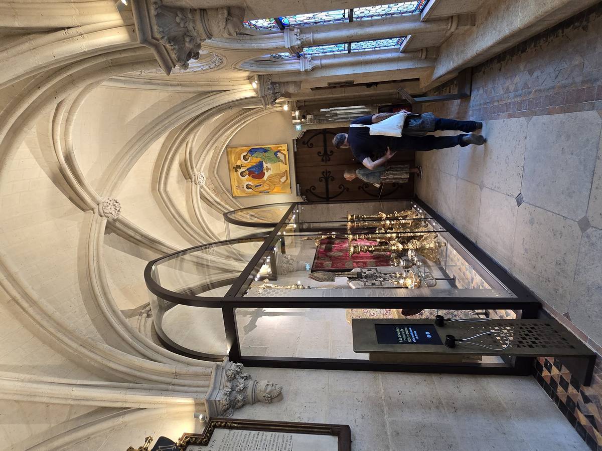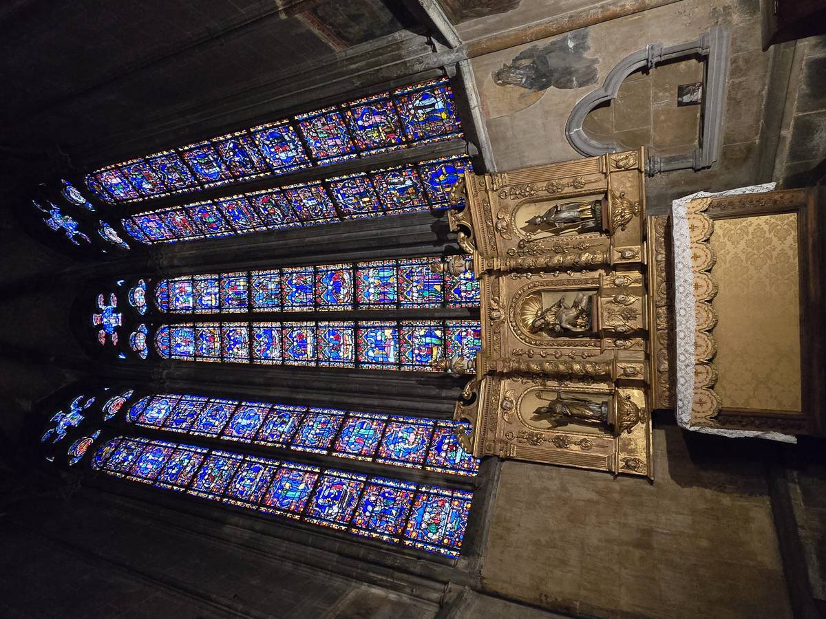 Nous partons vers 09h30 du camping-car, pensant que la navette passerait à 10h00 comme indiqué sur le net... Las, elle n'est passée qu'à 11h15. Nous sommes arrivés au centre ville vers 11h50. De suite direction la cathédrale, but de notre visite. Pas de regret, cette cathédrale de Chartres est magnifique comme en témoignent les photos. Nous sommes sortis une heure plus tard et, avons immédiatement pris le chemin du retour. Le chauffeur du mini-bus nous avait dit 13h30, nous étions à l'arrêt à 13h25! Nous avons pu le prendre, enfin, à 14h30!!! Même si ce chauffeur était sympathique, nous étions, un temps soit peu, en rogne! Après un déjeuner rapide, nous avons amorcé notre retour sur Vannes en faisant un détour par Mulsanne au sud-est du Mans afin d'acheter deux fauteuils-camping chez JYSK. Par contre, pour retrouver la route du retour, ce fut laborieux et on a bien fait 20 kilomètres de plus. Le soir, nous avons bivouaqué à Vaiges, une quinzaine de kilomètres de Laval, ville où j'habitais et où je travaillais, quand j'ai connu Evelyne en 1970! (Coordonnées : 48.041819, -000.483403)