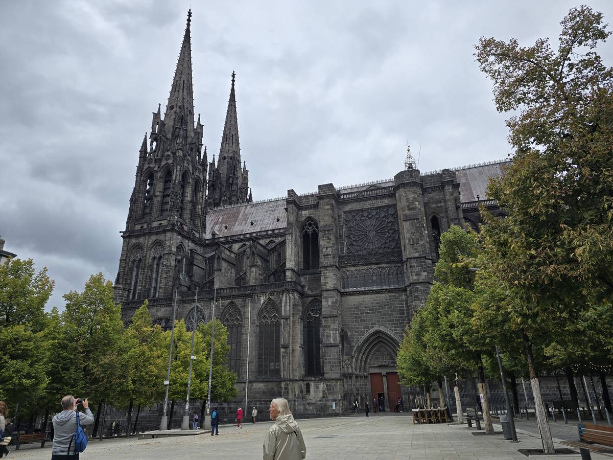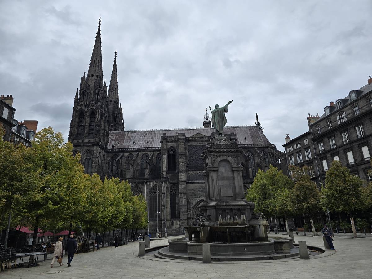 Nous avons dormi à Saint Flour sur le parking d'un supermarché Intermarché. Nous sommes arrivés sous la pluie battante. Ce matin, il ne pleut pas, le temps est menaçant. Dans ces conditions, nous décidons de passer notre chemin, d'autant que le stationnement est aléatoire avec un risque de PV... Pas étonnant, l'aire de service est une aire CCP, et leurs conseils concernant les camping-cars qui ne résident pas sur leurs aires n'encouragent pas les possesseurs de camping-car à stationner dans le centre-ville. Nous nous dirigeons sur Clermont-Ferrant que nous atteindrons vers 12h. Nous déjeunons dans le camping-car après avoir régler l'emplacement de parking et 2 billets de tramway, ce dernier se trouvant auprès de l'aire et se rendant très rapidement au centre ville. (Clermont-Ferrant, coordonnées 45.797901, 3.11262)