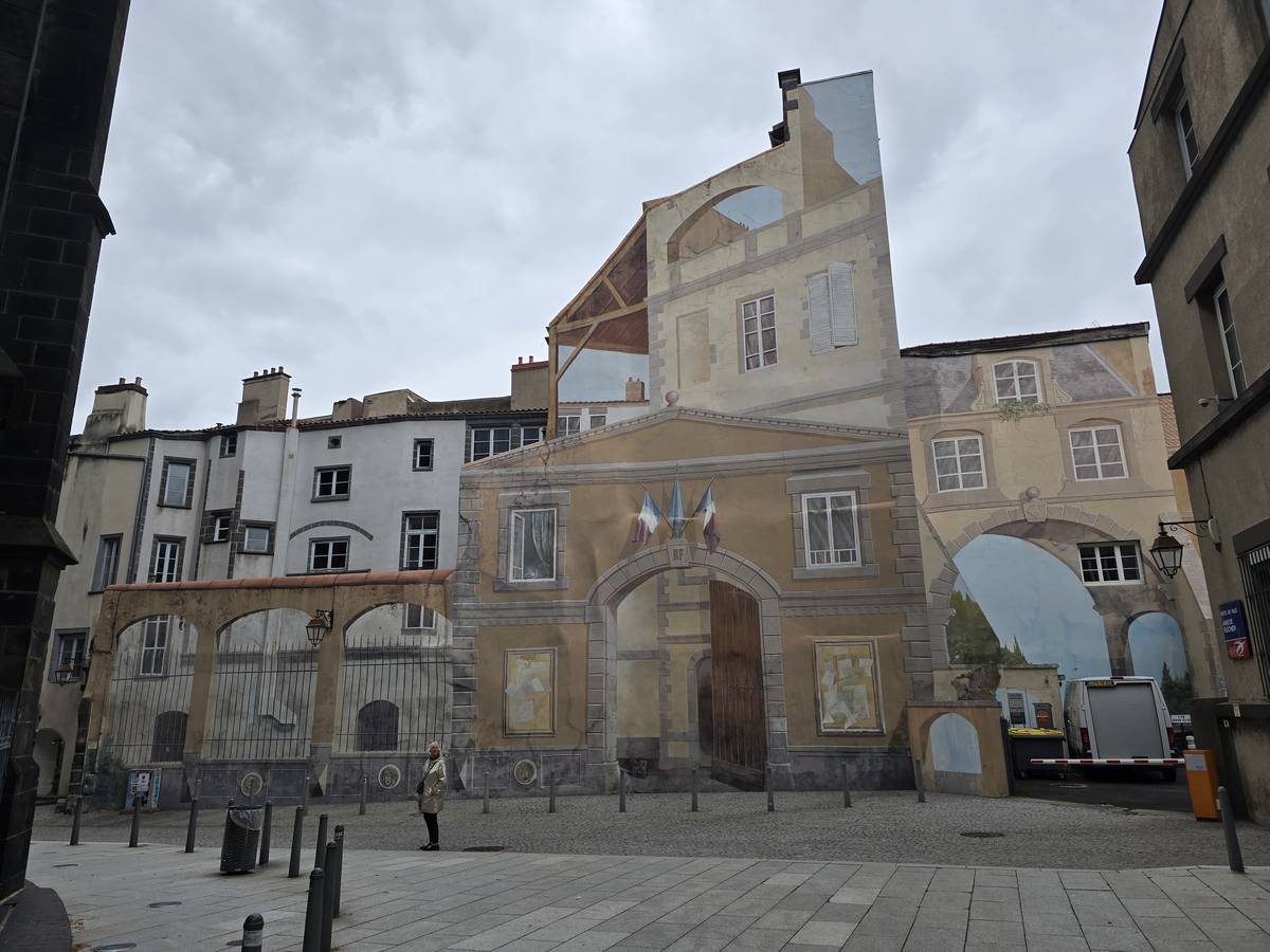 Une fresque en trompe-l'œil sur les murs de coté de la mairie :