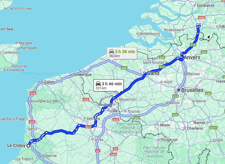 Nous arriverons à l'aire du Crotoy un peu après 20h00. (coordonnées : 51.56475, 4.742556 - 9€ les 24h)