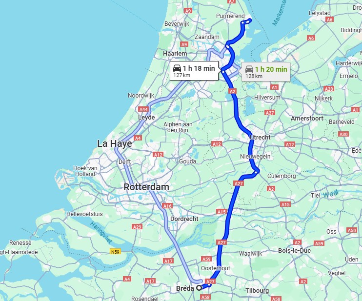 Retrouvailles, papotage, petite balade dans la baie de Somme... et nous voila partis vers les contrées du nord de l'Europe. Aujourd'hui, nous arriverons à Bréda en Hollande après avoir traversé le nord de la France Arras, Lille, puis la Belgique, Gant, Anvers. A Bréda, nous trouvons un parking au fond d'une impasse. Celui-ci est occupé par un semi-remorque en déchargement, nous attendrons la fin pour nous stationner correctement. Nous serons rejoints par un camping-cariste hollandais un peu plus tard dans la soirée. (coordonnées : 50.228699, 1.61235 - gratuit)