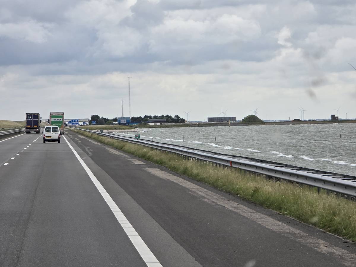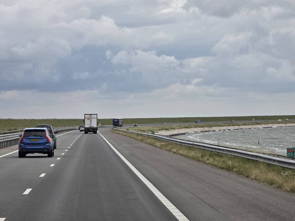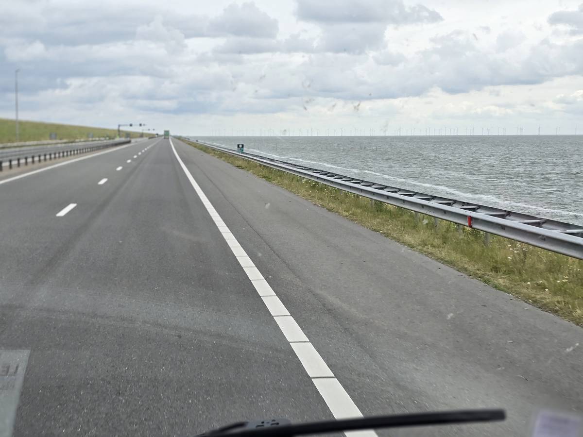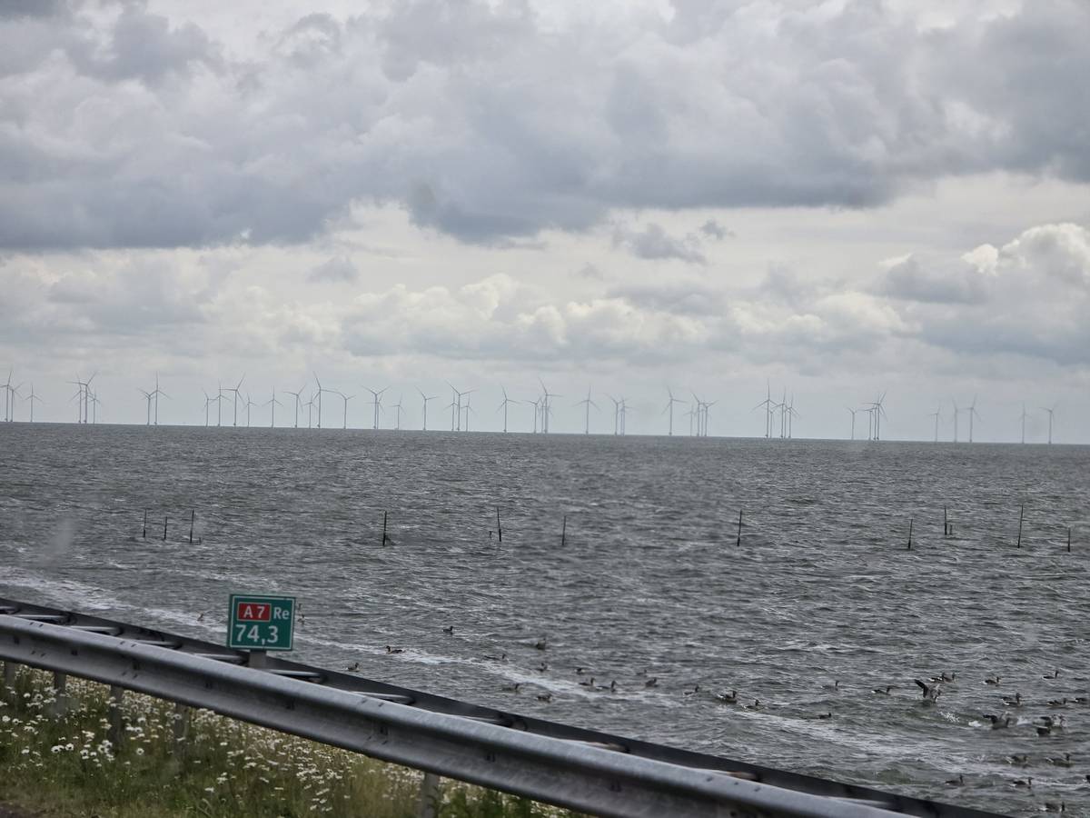 Nous passons sur la digue (Afsluitdijk) qui empêche la mer d'inonder les Pays-Bas. C'est impressionnant. Nous avons la chance de la passer par un temps relativement ensoleillé.