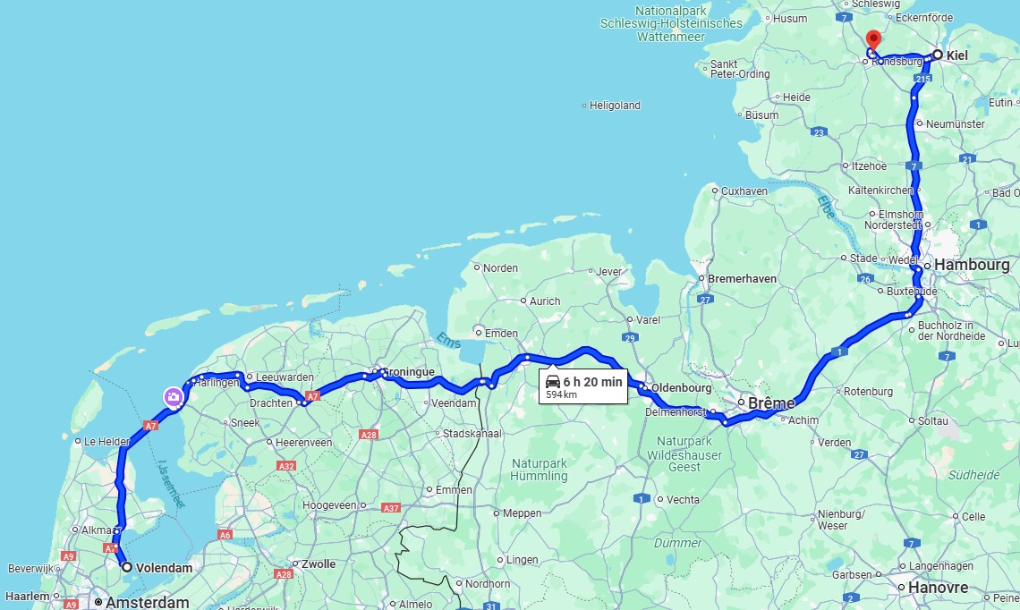 Nous continuons notre route, Hambourg (Allemagne), arrêt avant la frontière avec le Danemark. (coordonnées : 54.33297, 9.716824 12€ les 24h)
