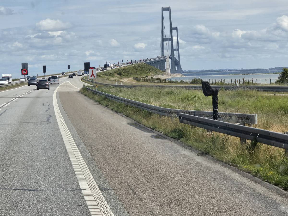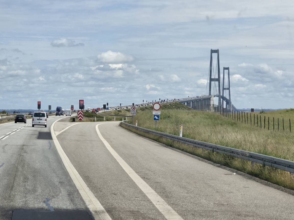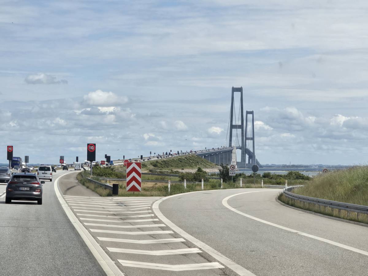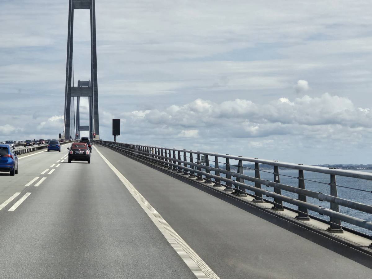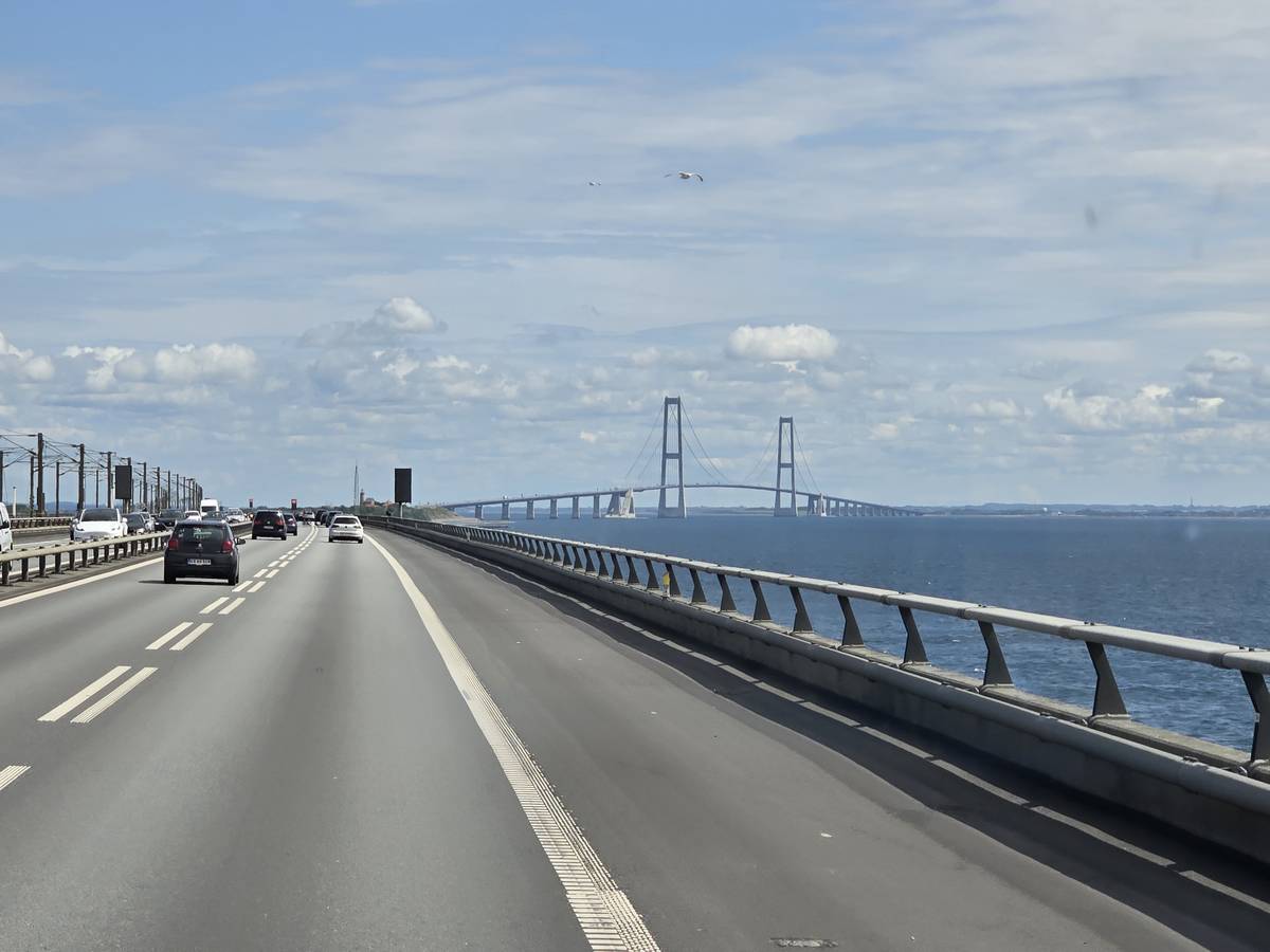 Direction Copenhague, capitale du Danemark. Pour y arriver, nous devons prendre le pont est du Grand Belt (Storebaeltsbroen) à Nyborg. Ce pont fait 18 Km et a été construit en 1991. (635DKK = environ 85€)