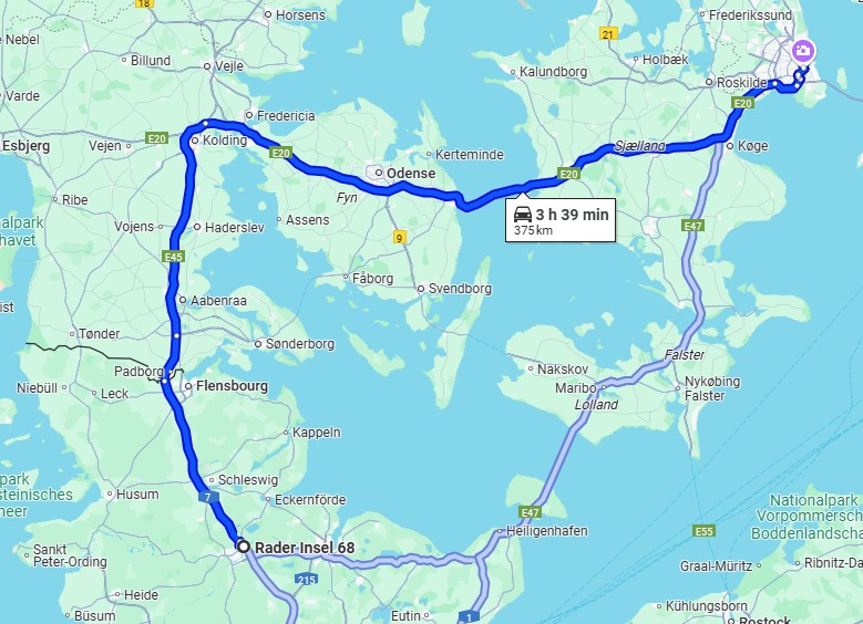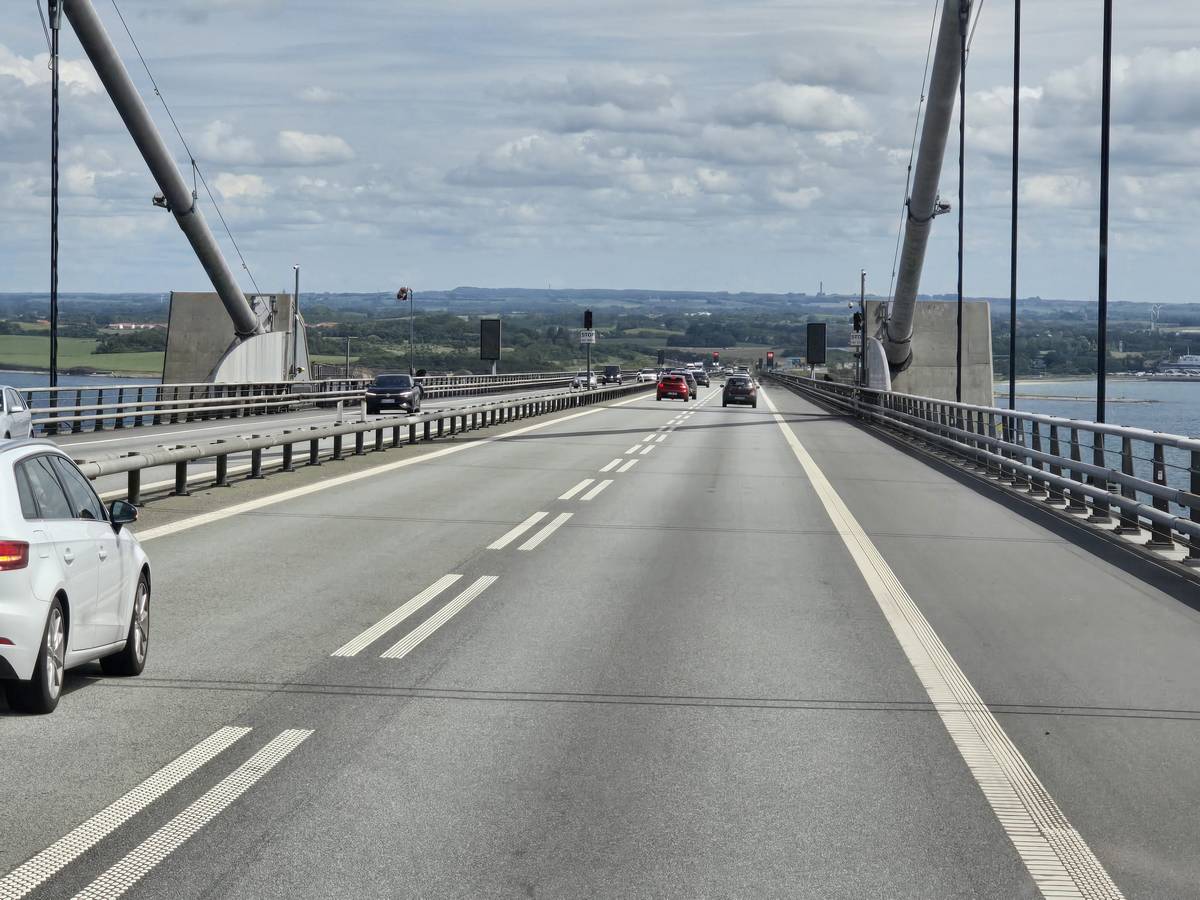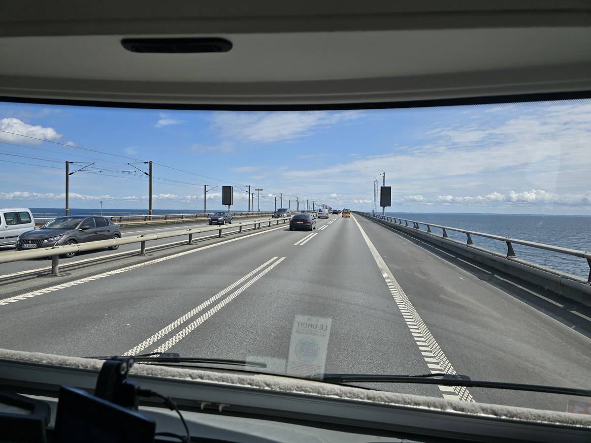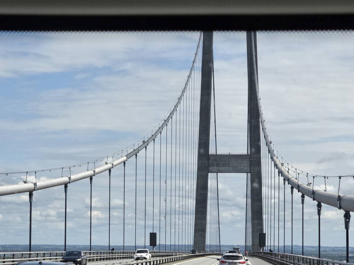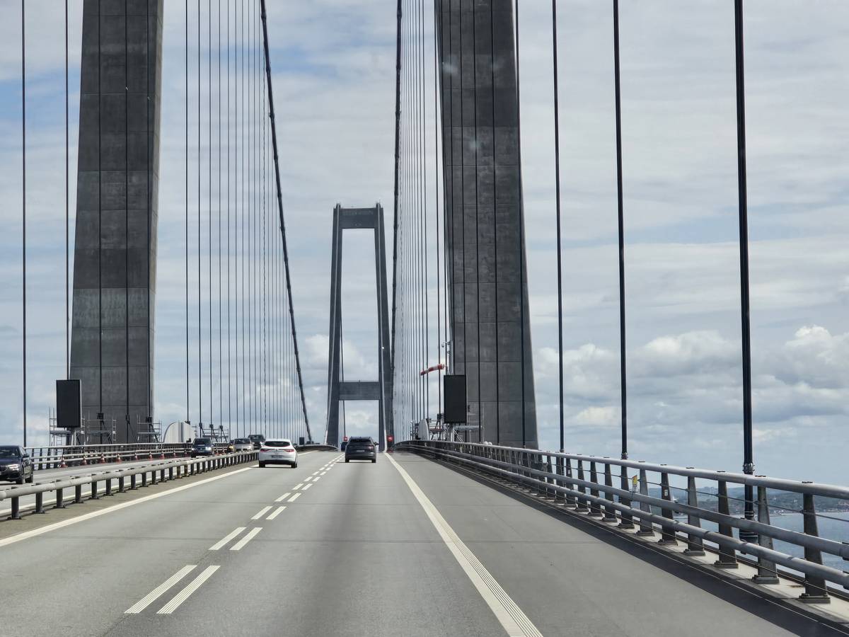 Direction Copenhague, capitale du Danemark. Pour y arriver, nous devons prendre le pont est du Grand Belt (Storebaeltsbroen) à Nyborg. Ce pont fait 18 Km et a été construit en 1991. (635DKK = environ 85€)