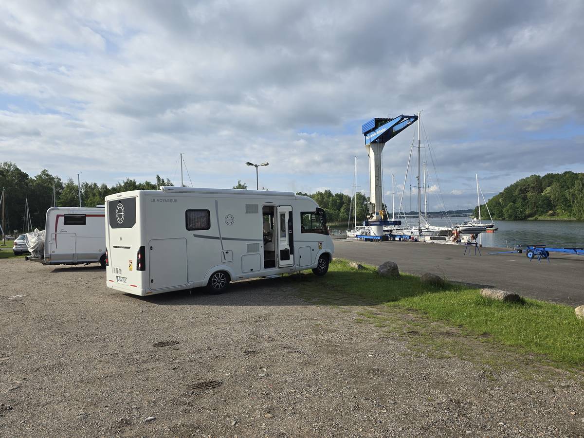 Nous remontons par le nord en longeant la mer Baltique. Nous faisons étape à Harnosand sur un beau parking en voie de rénovation. Actuellement, il est gratuit, mais je pense, pas pour longtemps. Hélas, les toilettes toutes récentes dans un beau chalet tout neuf, sont dans un état lamentables. Des jeunes trainent dans le coin!!! (Coordonnées : 62.59998, 18.02712 - gratuit pour l'instant)