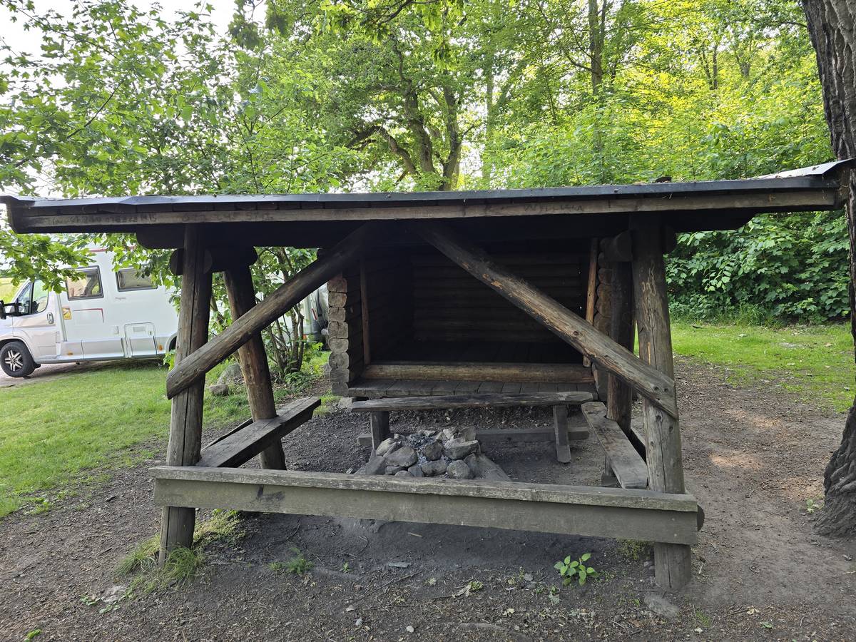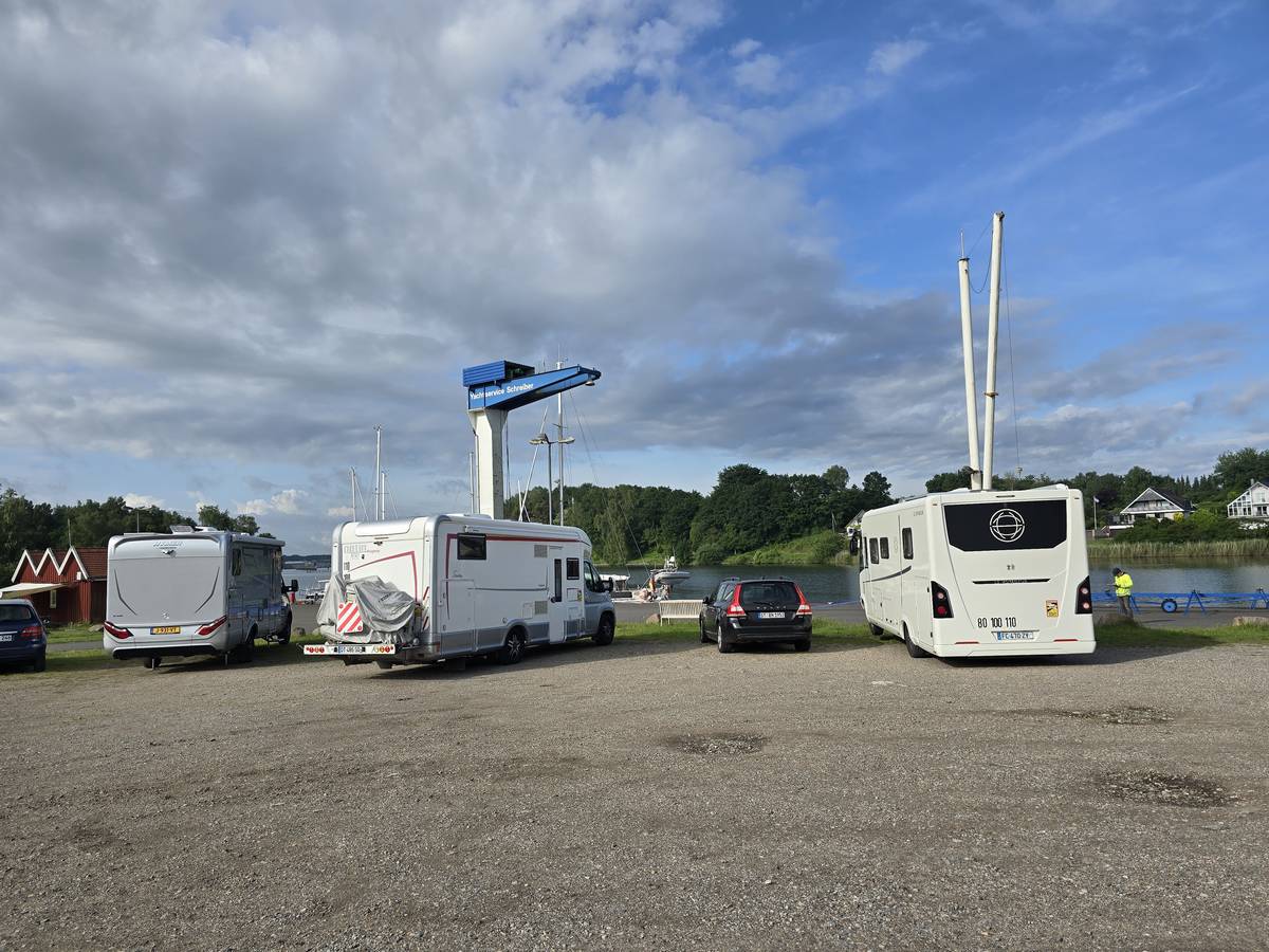 Nous sortons de Copenhague, direction la Suède par le ferry Helsingor (Elseneur)/Helsingborg. Traversée très rapide, moins de 20 minutes. Nous restons dans nos camping-cars. Nous prenons la route en direction de Stockholm et nous arrêterons sur une aire très agréable en bord de route secondaire avec toilette sèche et abri avec grand barbecue (le bois est compris). Nous ne nous servirons pas du barbecue, par contre 2 motards arrivés plus tard dormiront dans l'abri et allumeront le feu. Nous avons une belle vue sur le lac Vattern. (coordonnées : 58.296105, 14.647415 - gratuit)