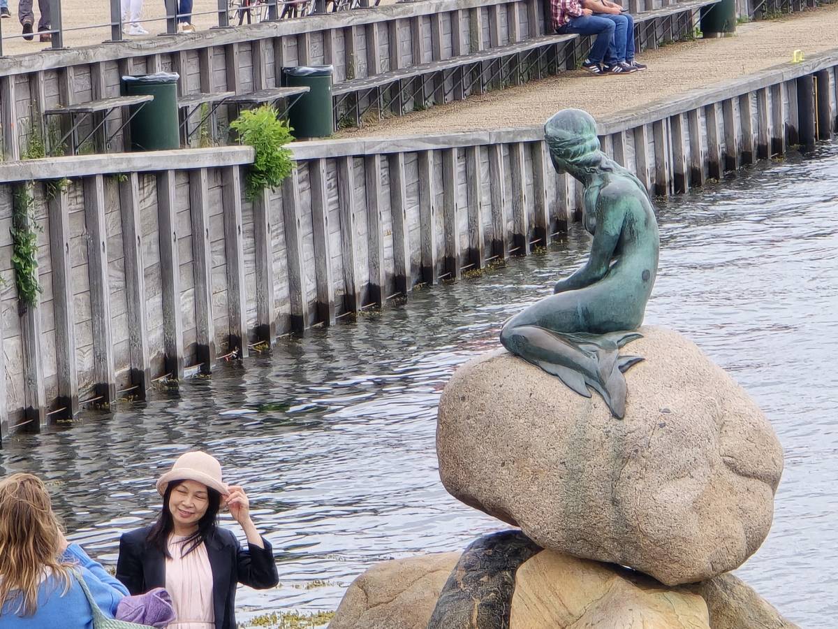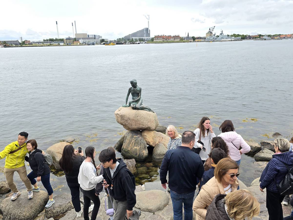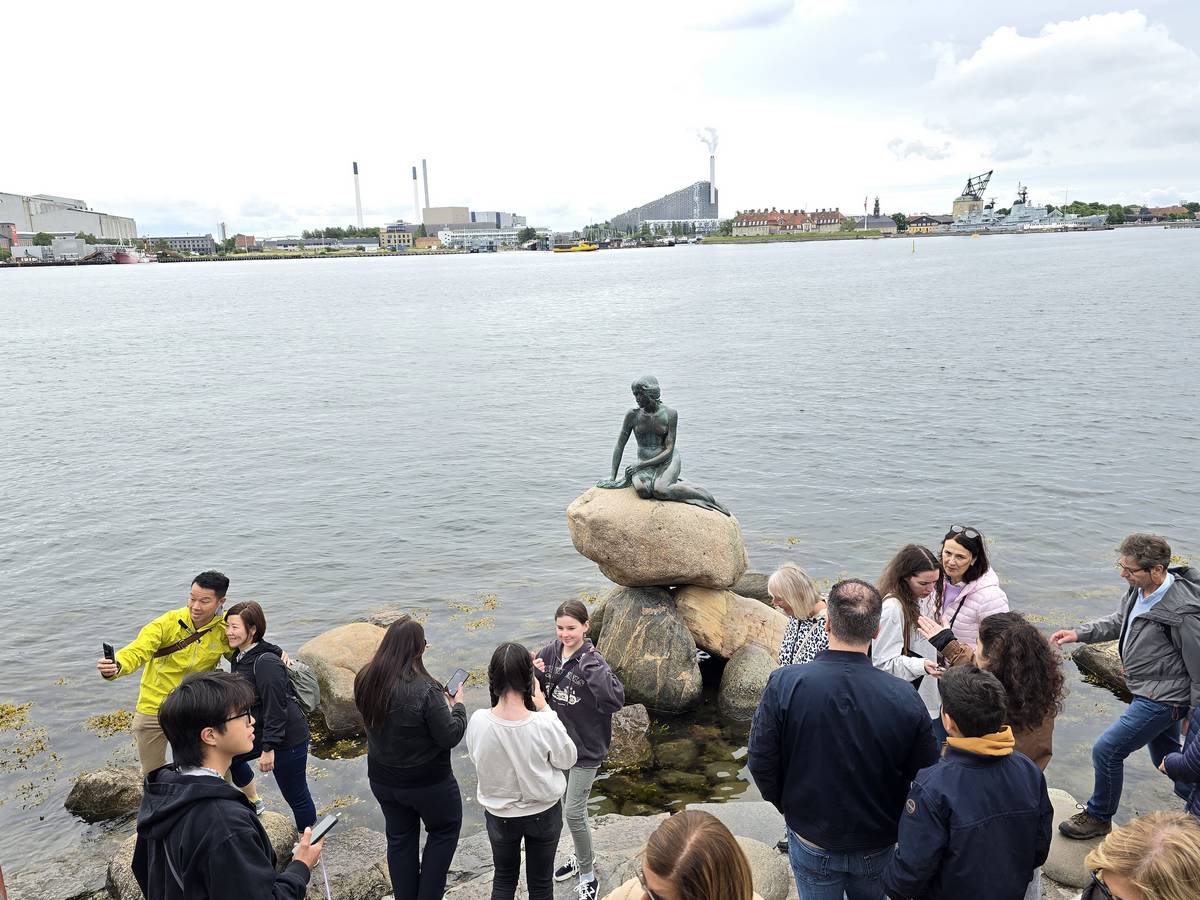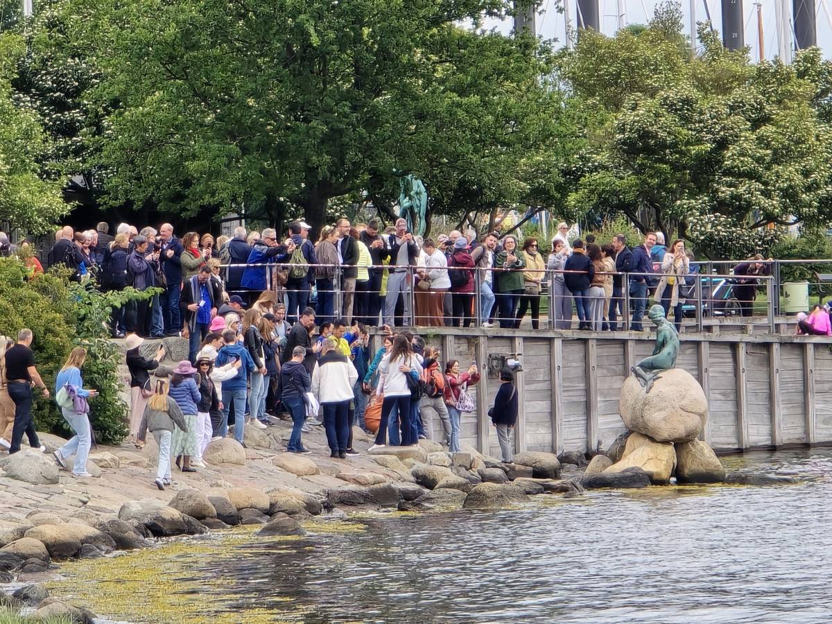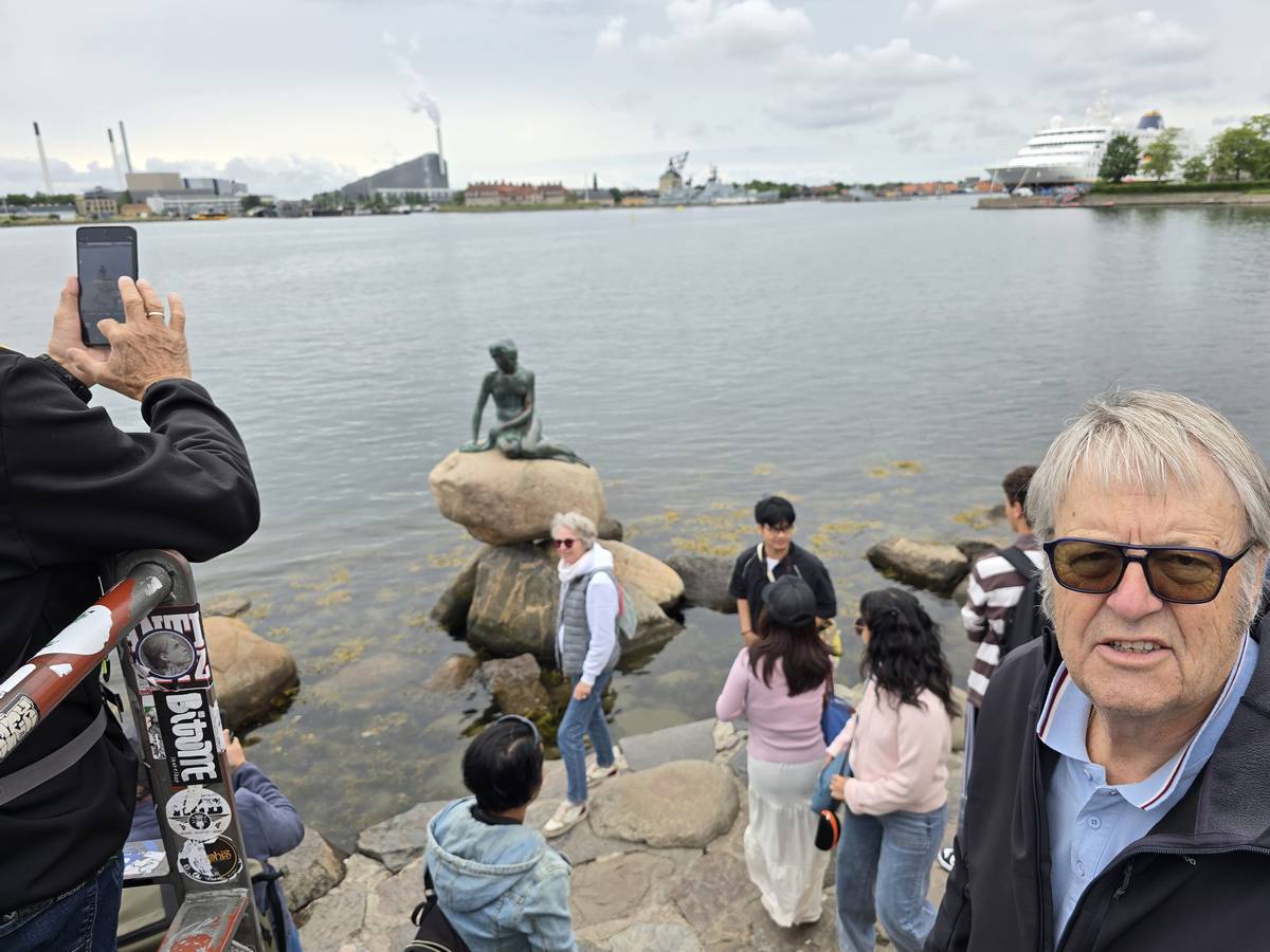 Nous partons le matin dès 9h00, pour une visite de Copenhague, le temps est à la pluie, mais nous aurons de la chance de n'avoir que peu de pluie durant notre visite. Le but en priorité, la petite sirène. Celle-ci est envahie, surtout des chinois, ils se la sont accaparés et nous avons eu du mal pour faire des photos à peu près correctes. Nos amis ne viendront pas, ils se reposent et profitent du temps libre pour s'occuper de leur bien-être. Nous rentrerons vers 14h00 sans avoir déjeuner (et après beaucoup d'erreurs d'aiguillage par le bus !!!) sous la pluie, mais heureux d'avoir vu la petite sirène, même entourée de tout ce monde. L'après-midi se passera à la paperasse qu'il nous reste à faire.