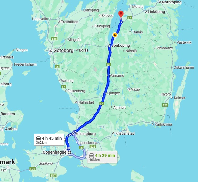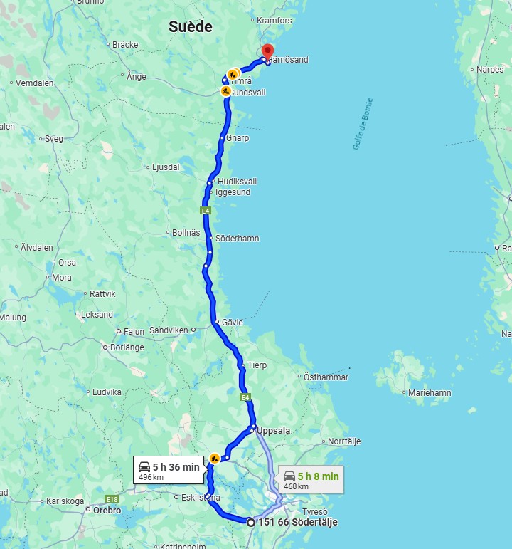 Nous décidons de revenir sur nos pas et de passer par Elkoping, nous évitons Stockholm.