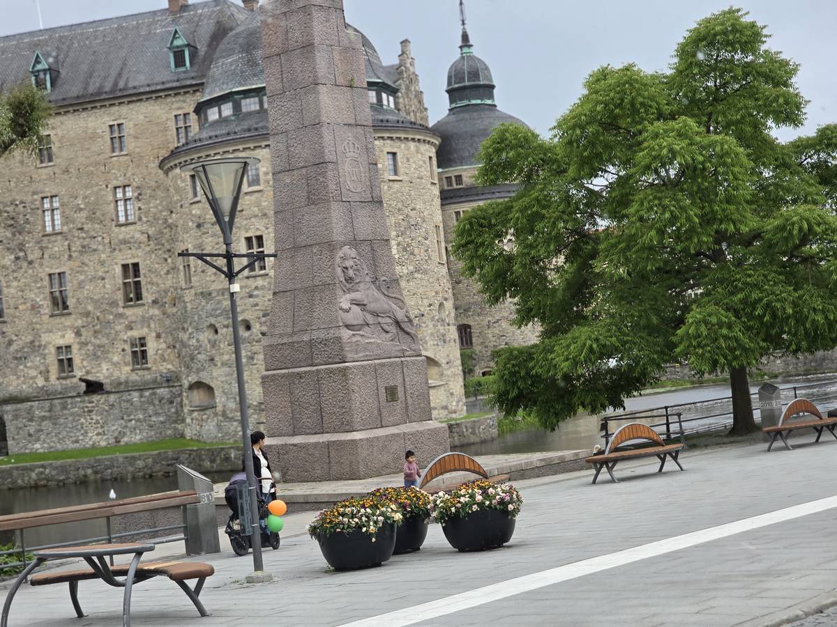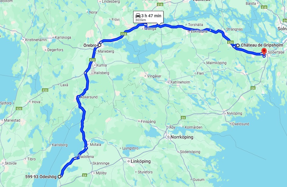 Nous décollons vers 09h00, direction Stockholm. En cours de route, passant à coté de Sorebro, nous en profitons pour faire une incartade dans la ville. Nous volons au passage quelques photos du château. Puis de nouveau, un château, celui de Grissholms à MarieFred. Ne trouvant pas de place où stationner pour la nuit, nous continuons sur Stockholm. Nous trouverons un bivouac non loin de Soderstalje, sur un grand parking entre 2 lacs aux coordonnées : 59.167716, 17.594388. C'est très bien à part le sol jonché d'excréments des nombreuses oies cendrées qui peuplent les lacs aux alentours.