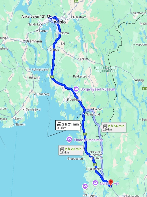 Comme je vous l'ai dit hier, nous devons quitter le camping avant midi. Bien sûr, nous pouvons le laisser sur le parking devant le camping et prendre le bus pour nous rendre sur l'île de Bigdoy, visiter 2 musées. Cette solution ne me plaisait pas, tant et si bien, que j'en étais venu à me dire, on fait l'impasse et on sort de la Norvège. Mais, la nuit portant conseil, nous avons décidé d'aller avec le camping-car faire la visite de ces deux musées, le musée des drakkars et le musée du Kon-Tiki. Hélas, arrivés devant le musée des drakkars, nous trouvons celui-ci fermé... quelle déception... réouverture en 2027. Quant au musée du kon-Tiki, nous arrivons sur un parking où l'on ne peut pas stationner avec un camping-car de 7,50m... sauf sur l'endroit réservé aux handicapés!!! Il se trouve que le gardien du parking s'est pointé faire sa ronde. Evelyne est allée le voir et, il nous a accordé une heure sur cet emplacement. Sitôt dit, sitôt payé par "EasyPark" et nous voila, courant vers le musée. Rapide mais l'essentiel a été vu, nous n'avons loupé que les 2 séances de cinéma. Nous étions revenus, trois minutes avant la fin de cette heure. Nous passerons la nuit à Munkedal, dernière photo de coucher de soleil (coordonnées : 58.442224, 11.698537)