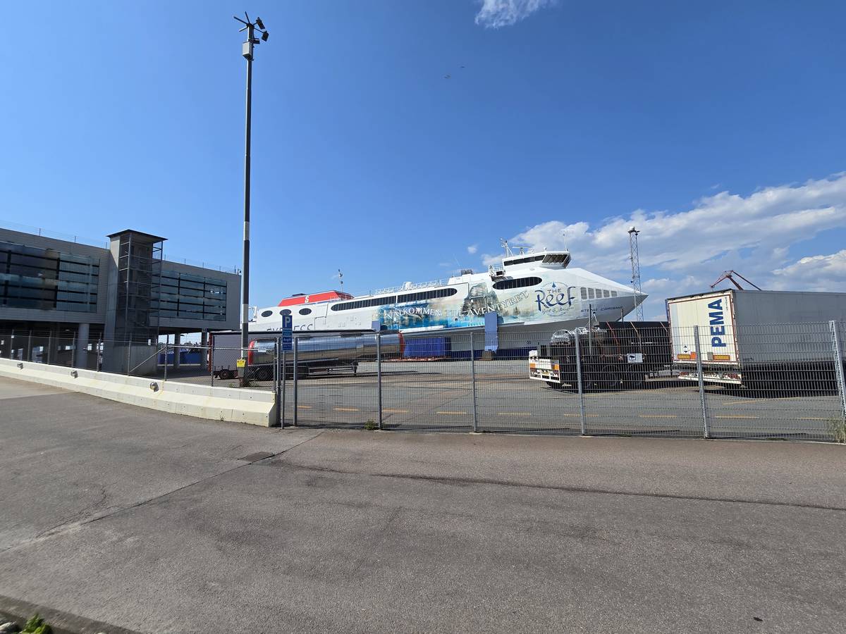 Nous partons du parking de Goteborg pour nous rendre sur les lieux d'embarquement du ferry, il est 0h05. Nous passons la douane et nous nous mettons dans la file d'attente. Nous embarquons à 1h00 et le bateau part à... 1h20, donc 10 minutes avant l'heure! Dans le ferry, quelques bruits provenant des enfants... qui ne dorment pas... et dont les parents se désintéressent. Ca ne m'empêche pas de piquer un roupillon, contrairement à Eve qui restera éveiller pendant tous le trajet. Après le débarquement, nous nous dirigeons vers un endroit sympa sur le port où nous serons tout seul, aujourd'hui, c'est dimanche! Frederikshavn (coordonnées : 57.448394, 10.550831)