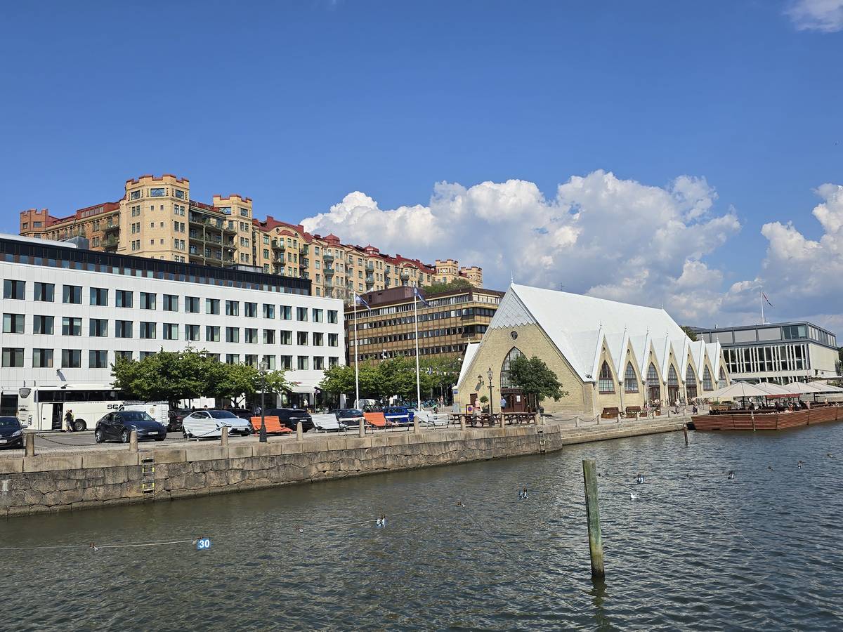 Avant toute chose, bon anniversaire à notre fils ainé Bruce. Nous partons vers 10h00, direction Goteborg pour une rapide visite. En roulant, "Tiens un Ikea" me dit une voix à coté de moi! "C'est l'anniversaire de Bruce, je t'offre un repas chez Ikea", lui réponds-je du tac au tac. Chiche... Voila comment, ce midi, nous avons mangé dans un restaurant sans étoile!!! Oh, la belle boulette suédoise... Pendant ce frugal repas, nous décidons de prendre le ferry en direction du Danemark. Le billet est pris, nous partons de Goteborg à 1h30, le 20 juillet pour arriver à 5h15 à Frederikshavn. En attendant, nous patientons après notre périple dans Goteborg (11600 pas), sur un parking près de l'embarquement (coordonnées : 57.699663, 11.929744)