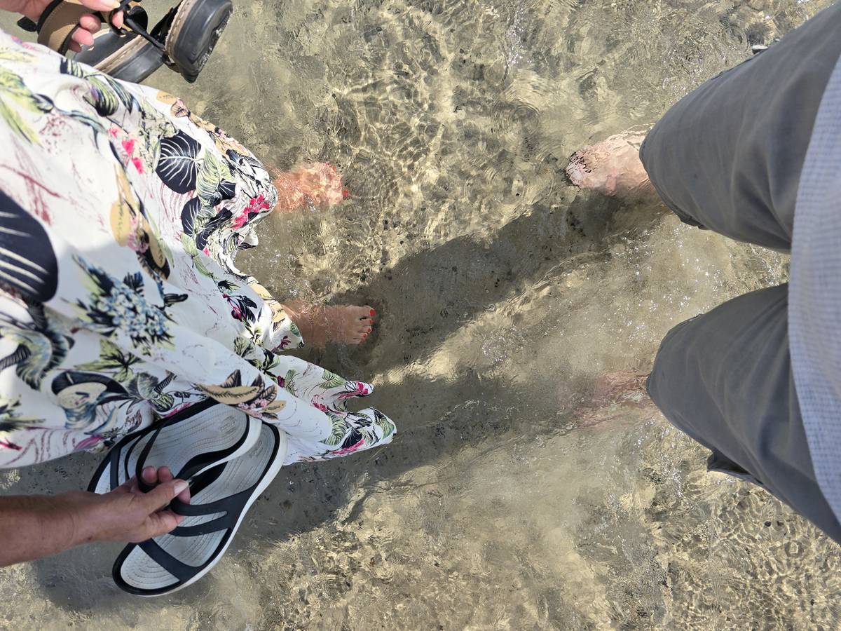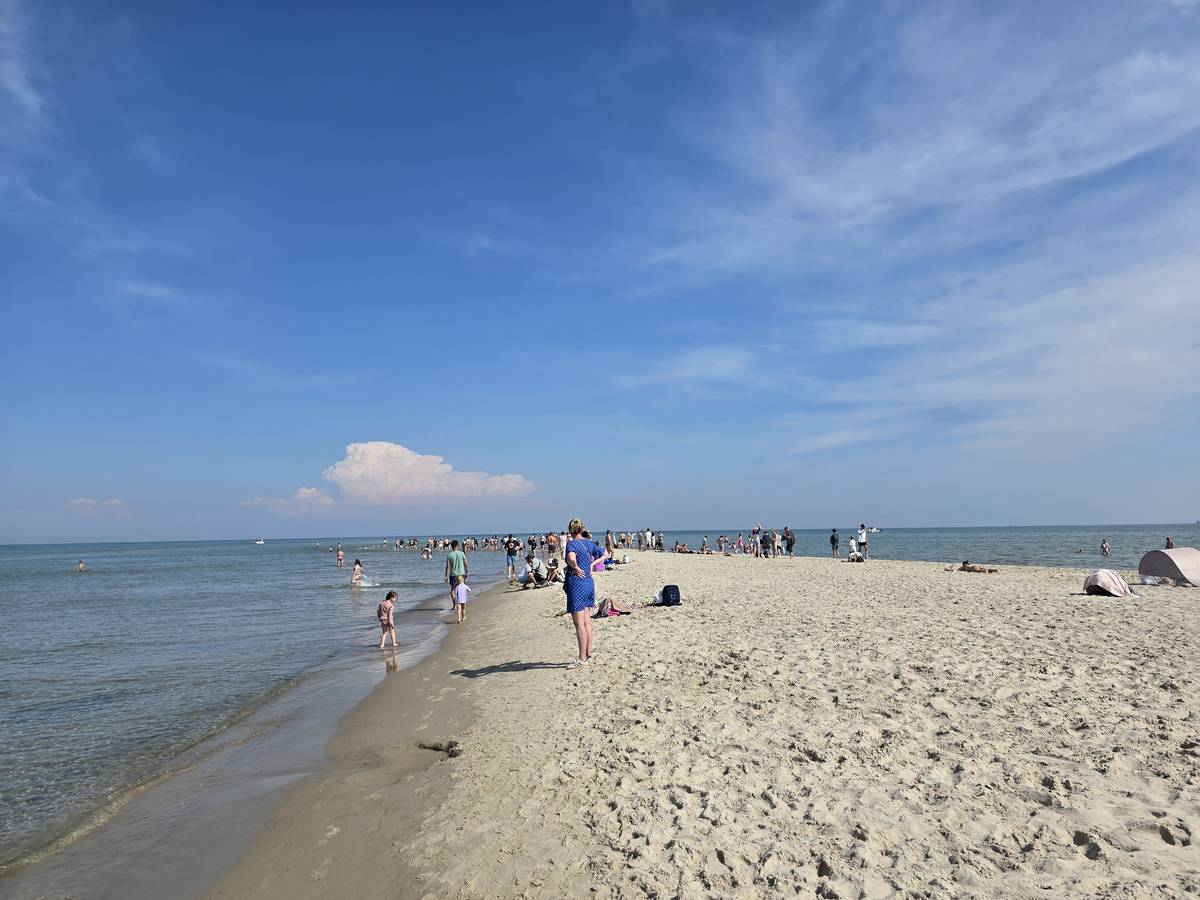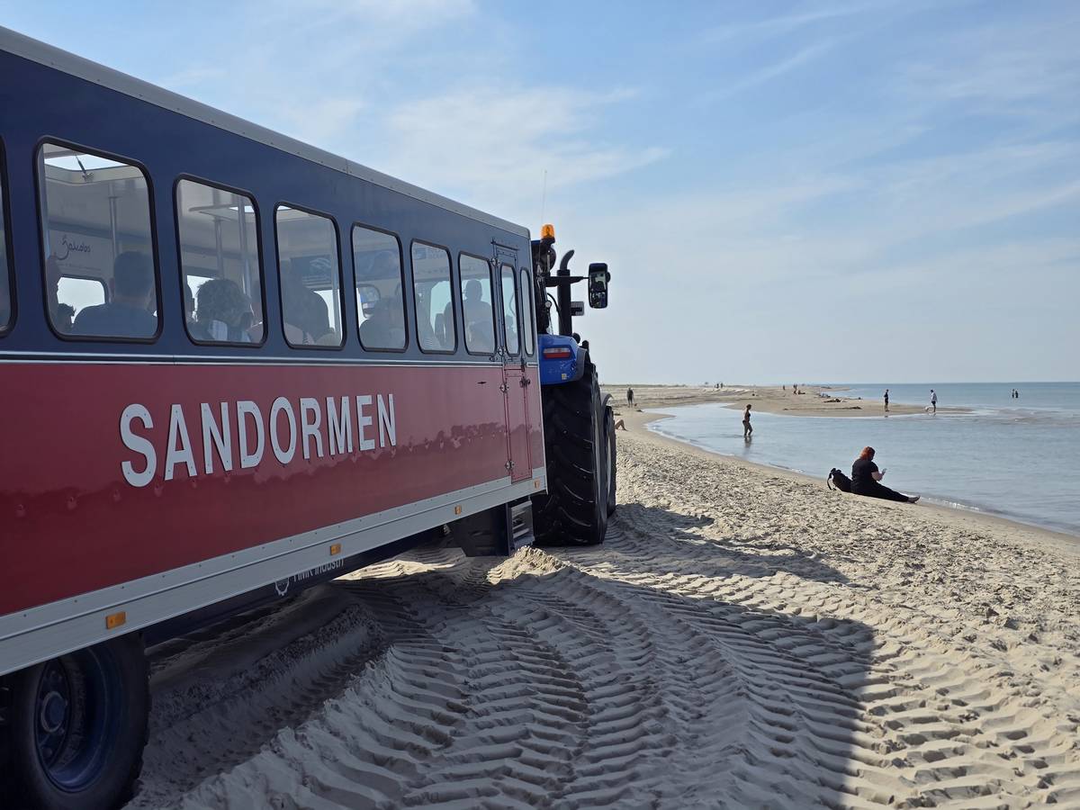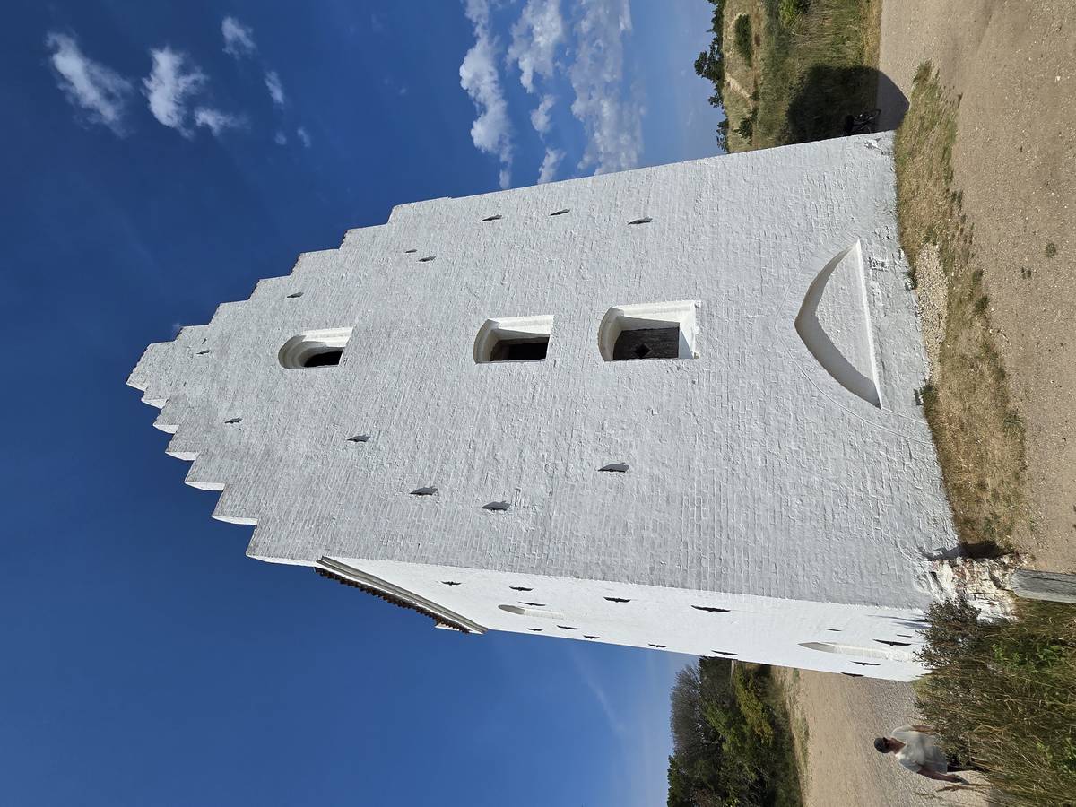 Nous avons fini notre nuit sur ce parking de Frederikshavn, il est 9h00 losque nous ouvrons les yeux. Il fait un temps splendide, nous aurons 27° dans la journée... et ce fut une belle journée, vous en jugerez vous-même. En effet, tout d'abord, sur la route de Skagen, nous nous arrêtons à l'église ensablée. Nous irons faire une balade, monter dans le clocher et enfin, nous déjeunerons sur le parking. Puis nous nous dirigeons au delà de Skagen, sur le parking de Grenen. Grenen, c'est la pointe septentrionnale du Danemark, là où la mer du nord rejoint la mer Baltique sans se mélanger... c'est impressionnant. Sur les photos, on distingue le sillon séparant les deux mers. Il est à noter que la mer Baltique est plus chaude que la mer du Nord... étonnant non!!! Pour aller du parking où nous avons garé le camping-car, et cette point nord, nous empruntons un tracteur (dont le pilote est Laetitia Halliday!!! enfin, son sosie...) traînant une remorque-car (voir photos), sympa et, surtout pour nous, les ancêtres, ça nous évite de nous tuer à la marche dans le sable!!! Ensuite, petite marche jusqu'au phare et retour. Enfin, nous nous rendons à Skagen où nous dormirons sur le port après avoir fait une dernière balade dans les rues piétonnes. (coordonnées : 57.719238, 10.589801)