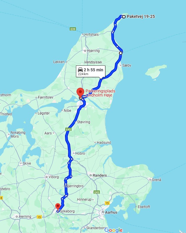 Nous partons de Skagen pour descendre sur Aalborg. En effet, nous allons visiter Lindhom Hoje, le Carnac danois. C'est la plus grande nécropole du Danemark comprenant près de 700 sépultures dispersées sur la colline. L'époque se situe entre 400 et 1000. Vers l'an 1000, les collines furent entièrement recouvertes de sables poussant la population à l'exil. Le site a été retrouvé quasi intact. Ce matin, le temps a changé et est passé à la forte pluie. Nous avons donc commencé par le musée dont vous pourrez voir beaucoup de photos, puis sommes sortis dans le vent et la pluie, parapluie en main. Nous sommes montés sur la colline, avons fait quelques photos puis sommes rentrés vaincus par le vent et la pluie... Ce soir, il pleut et nous sommes à Silkeborg (coordonnées : 56.176138, 9.553792)