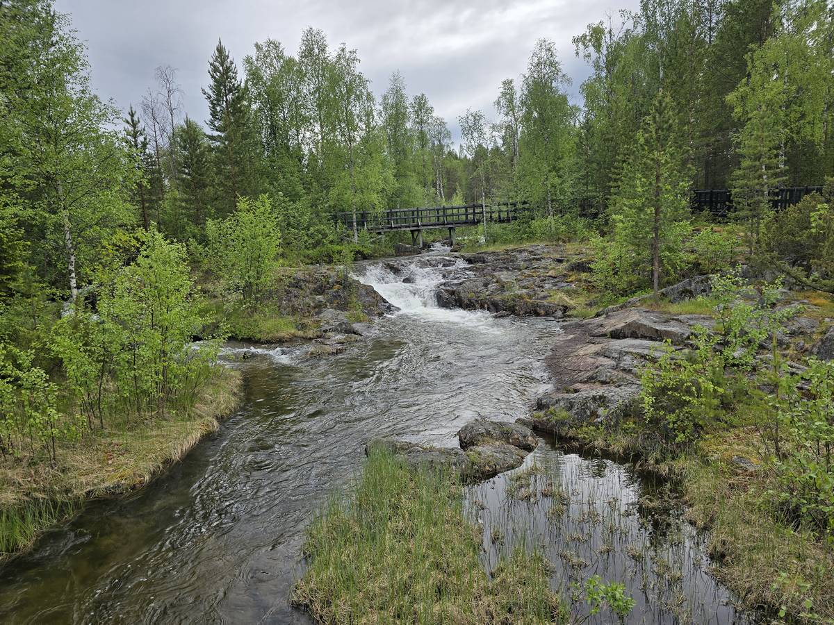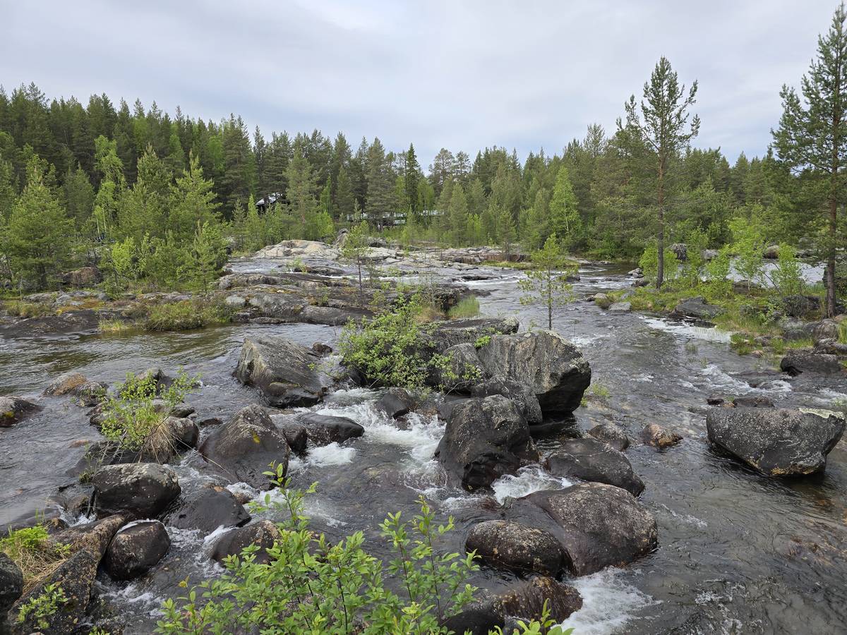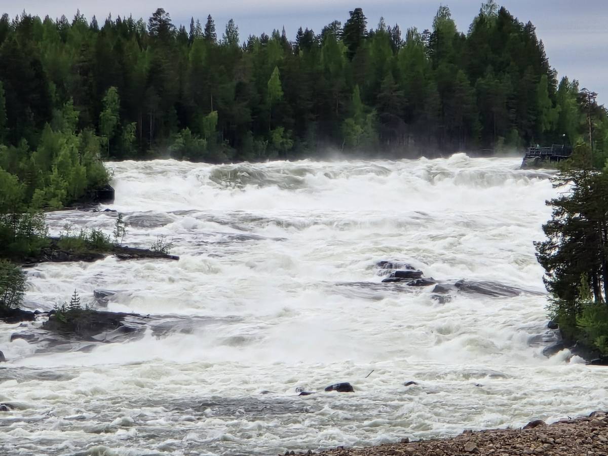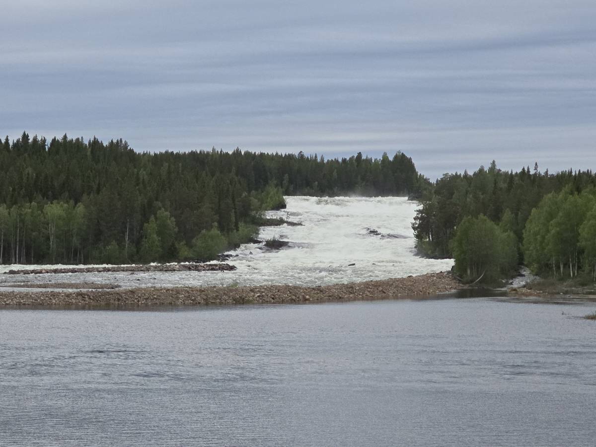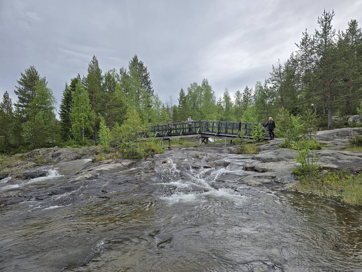 Les rapides de Kukkola à la frontière Suède/Finlande. Il y avait beaucoup de camping-cars français faisant partie du club Orcada. Nous les retrouverons à Napapirii. Sur le parking, il y avait des nuées de moucherons qui rentraient par tous les orifices!!!