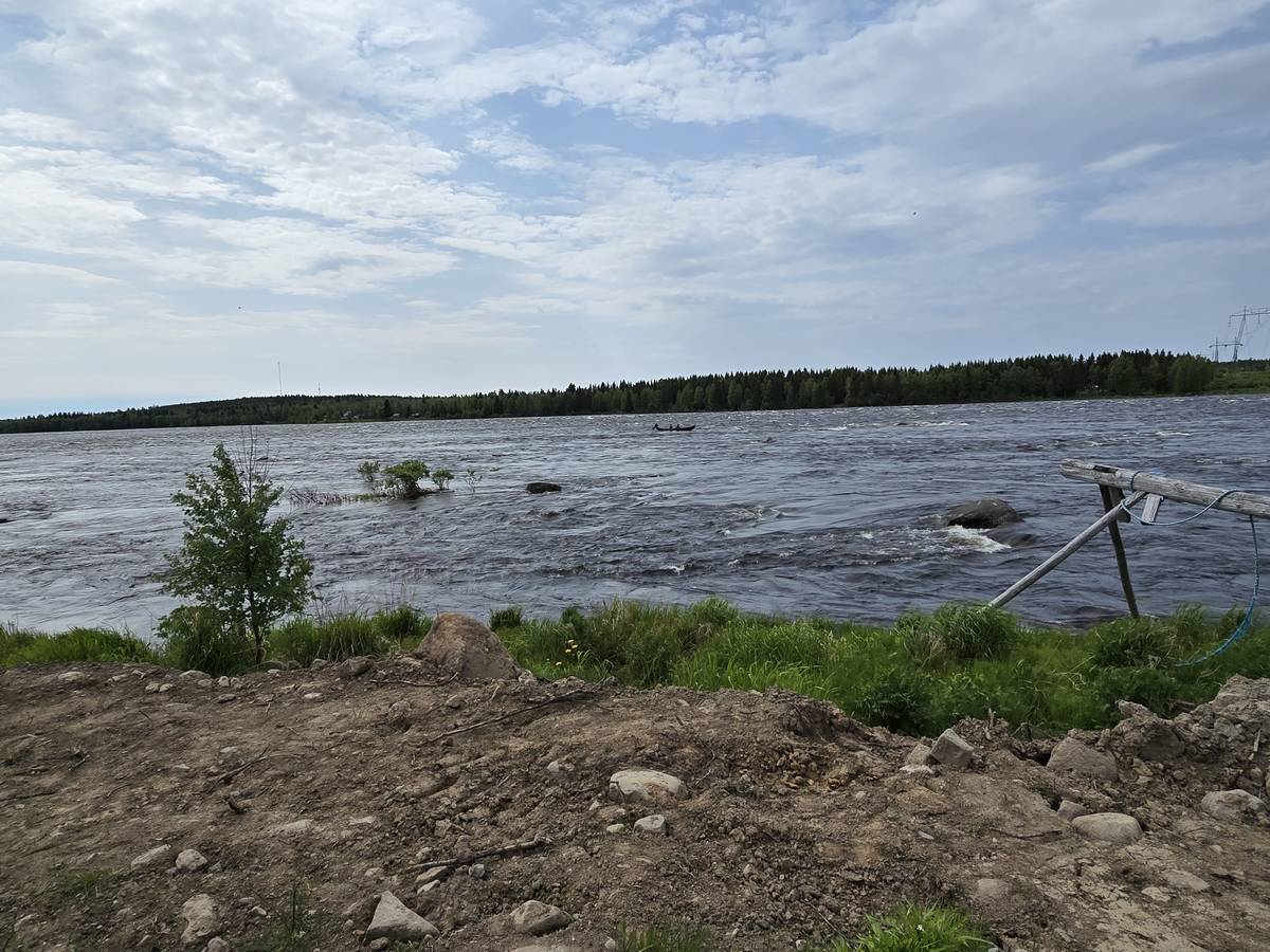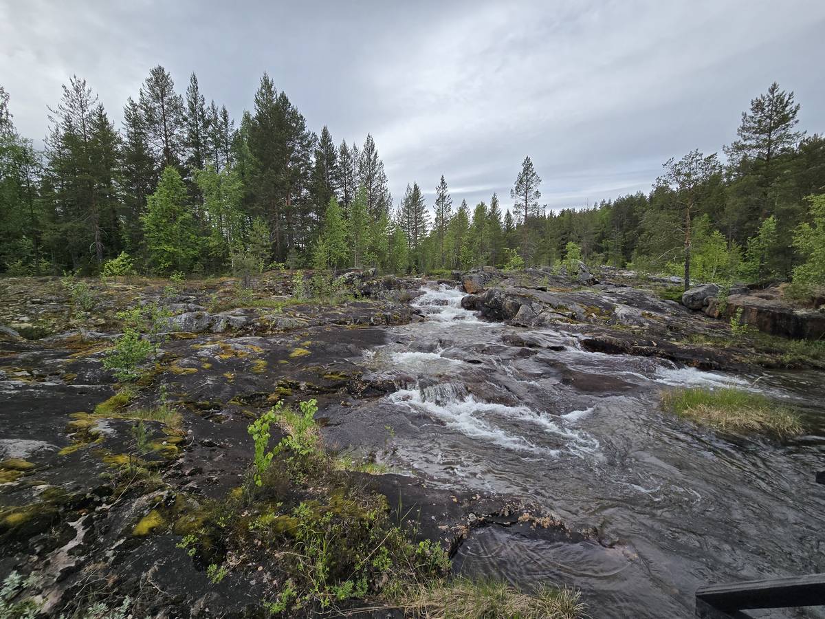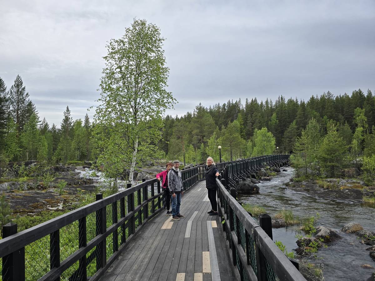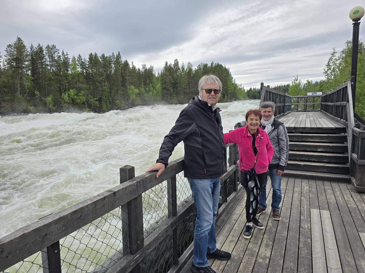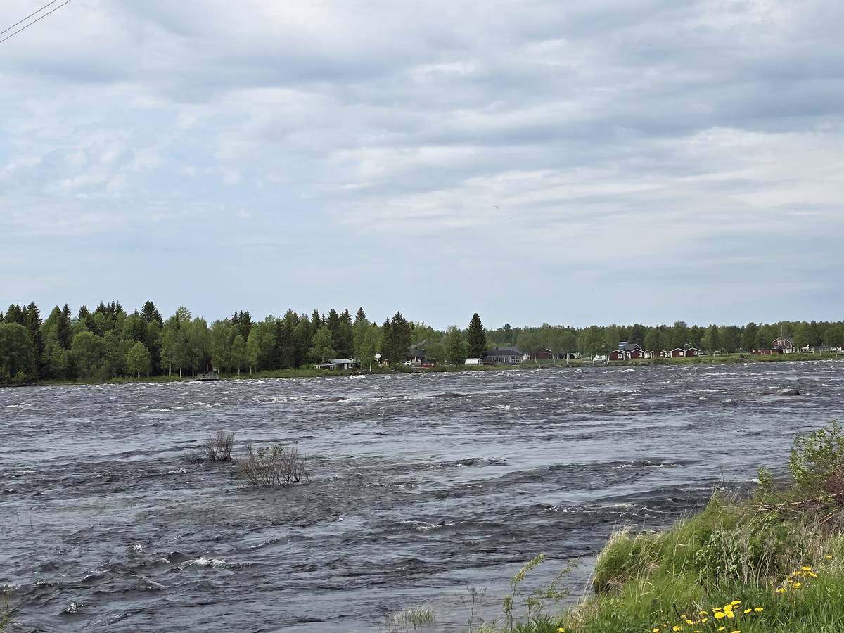 Les rapides de Kukkola à la frontière Suède/Finlande. Il y avait beaucoup de camping-cars français faisant partie du club Orcada. Nous les retrouverons à Napapirii. Sur le parking, il y avait des nuées de moucherons qui rentraient par tous les orifices!!!