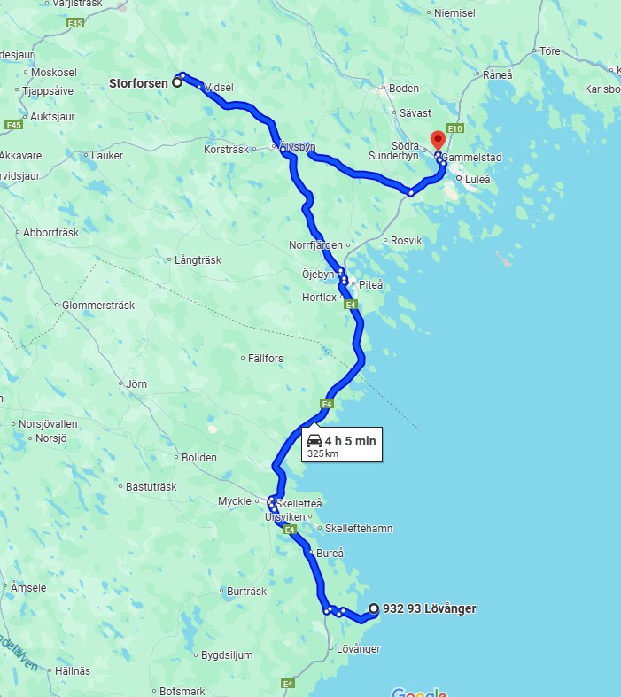 Nous passerons la nuit sur le parking de ce village. (coordonnées : 65.648250, 22.029122)