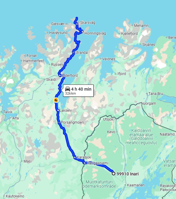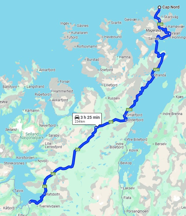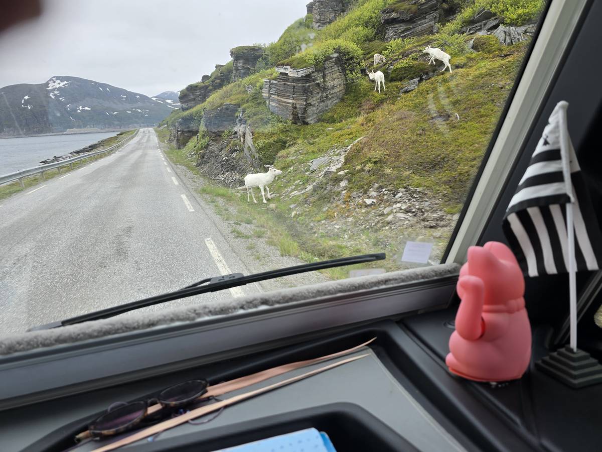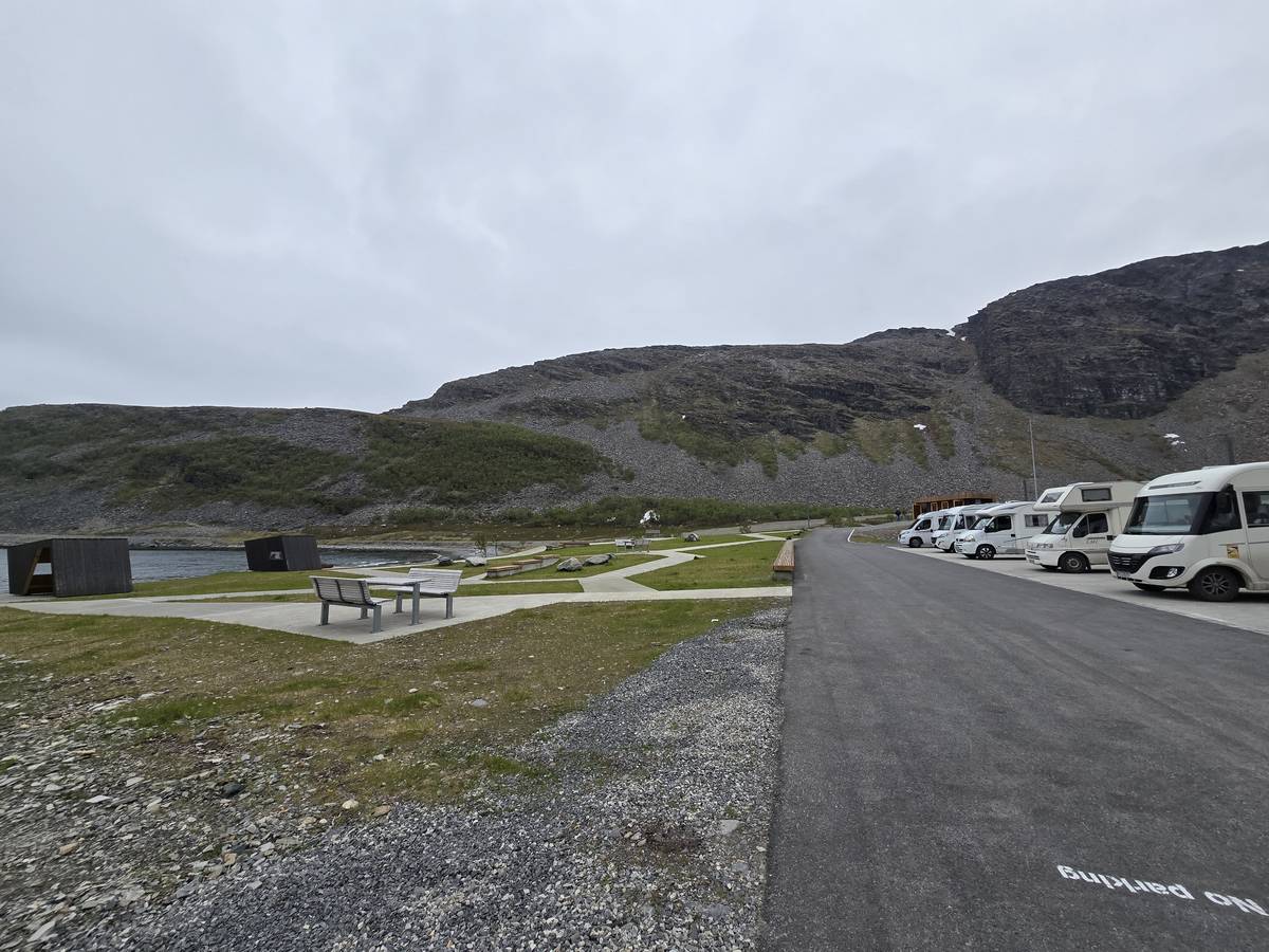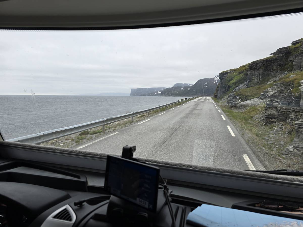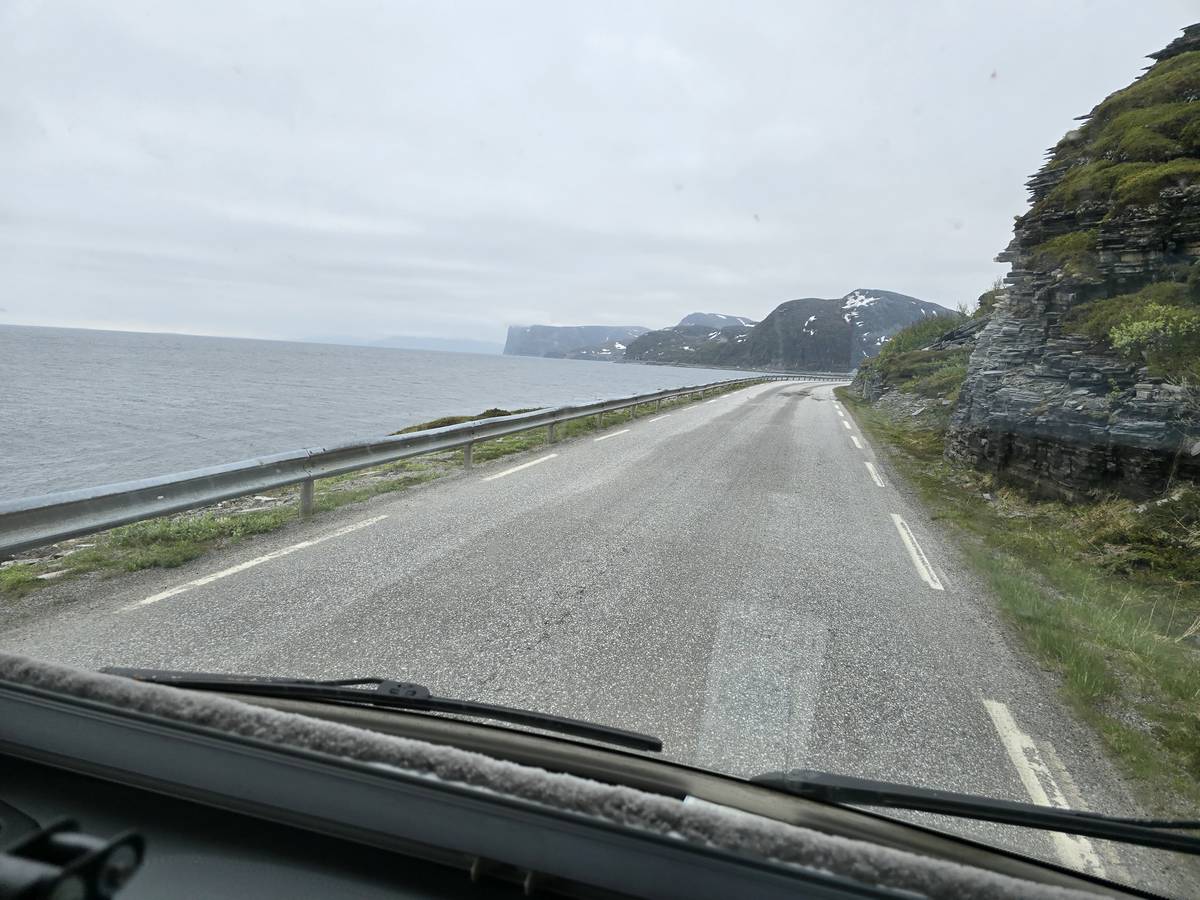 Nous nous dirigeons vers le cap nord (Nordkapp). Nous dormirons sur le parking du cap nord. Pas de nuit, nous verrons le soleil de minuit.