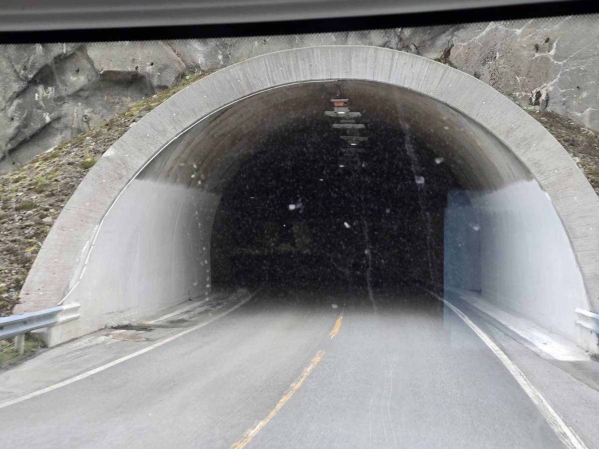 Le tunnel construit entre 1993 et 1999, mesure 6 875 mètres de long et atteint une profondeur de 212 mètres au-dessous du niveau de la mer. Il dispose de portes antigel, qui ferment les entrées du tunnel en hiver pour éviter que l'eau de ruissellement ne gèle. Ces portes s'ouvrent automatiquement quand les voitures s'approchent et sont ouvertes de manière permanente en été.