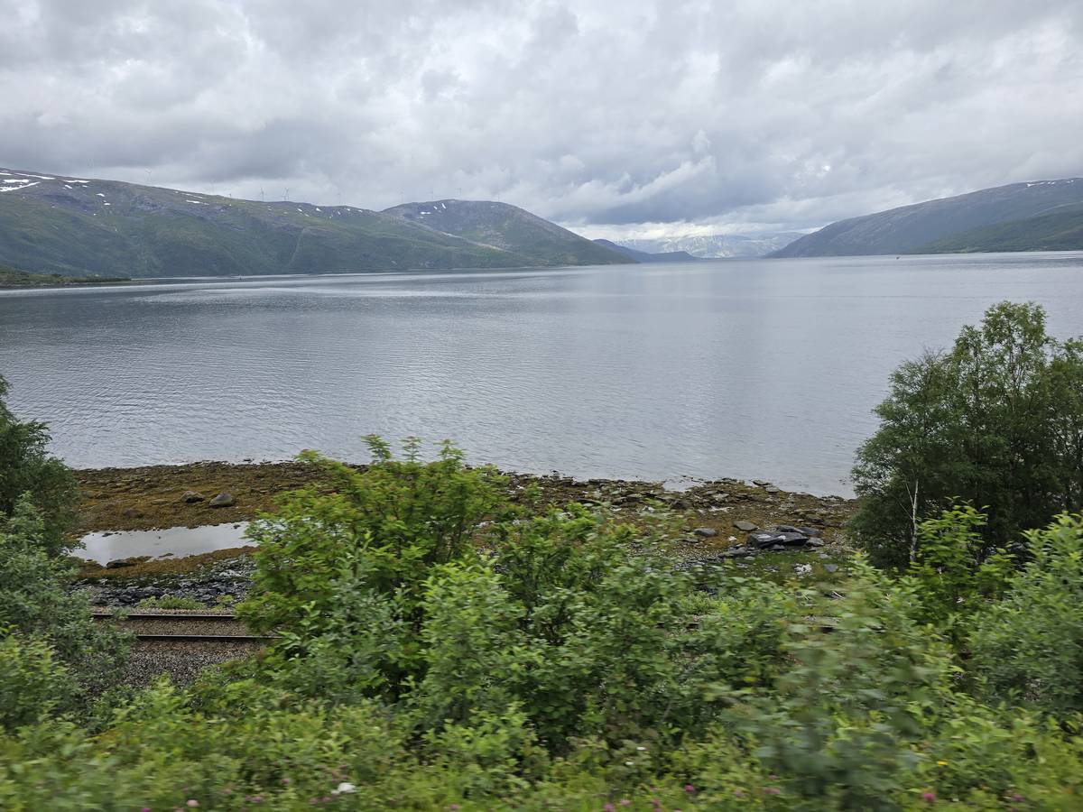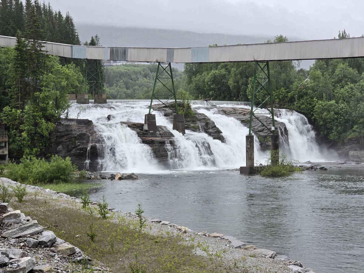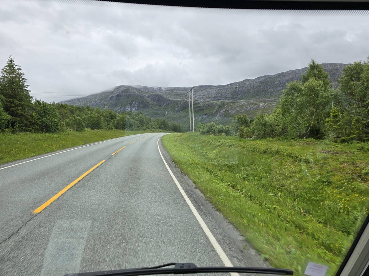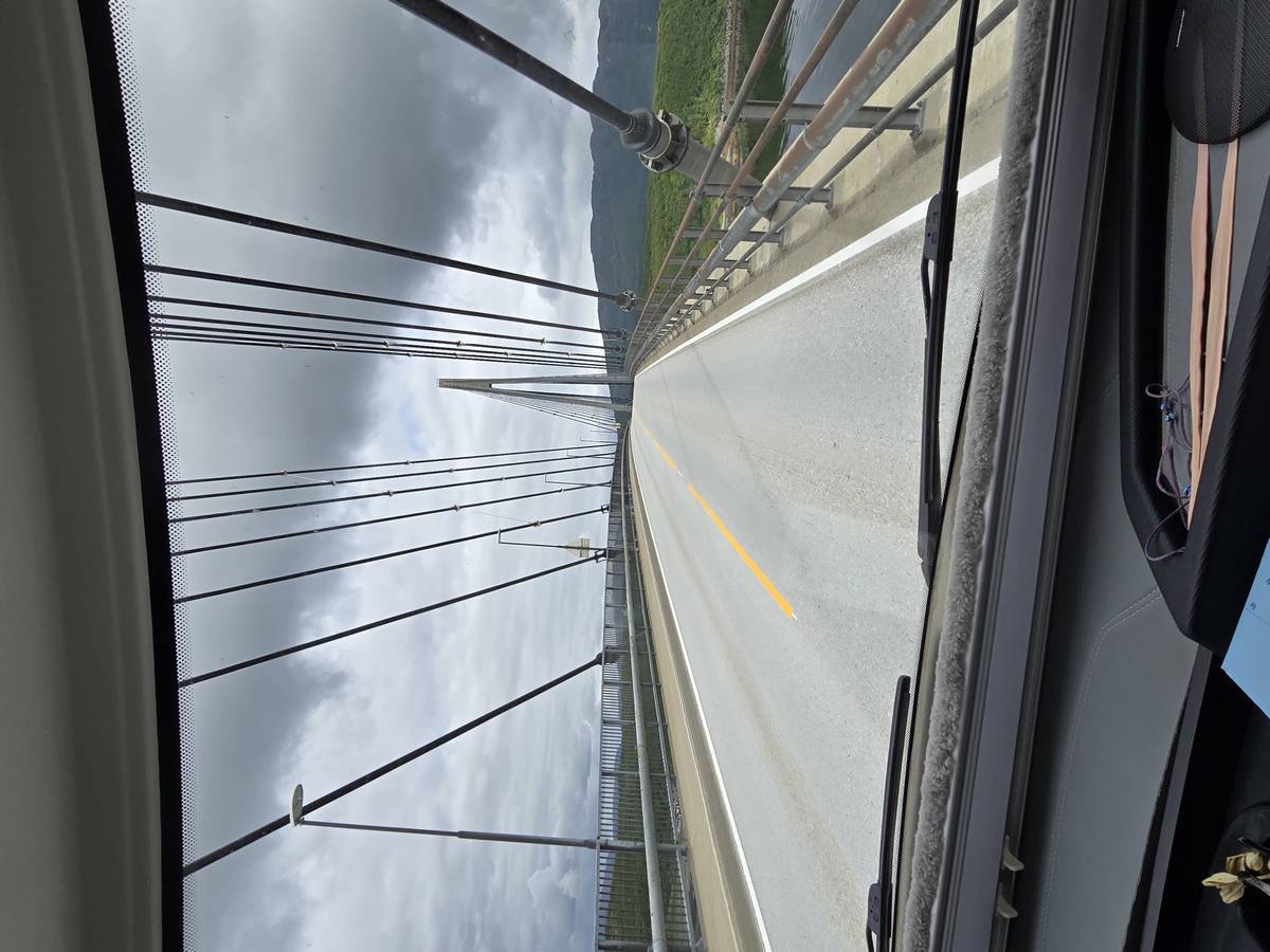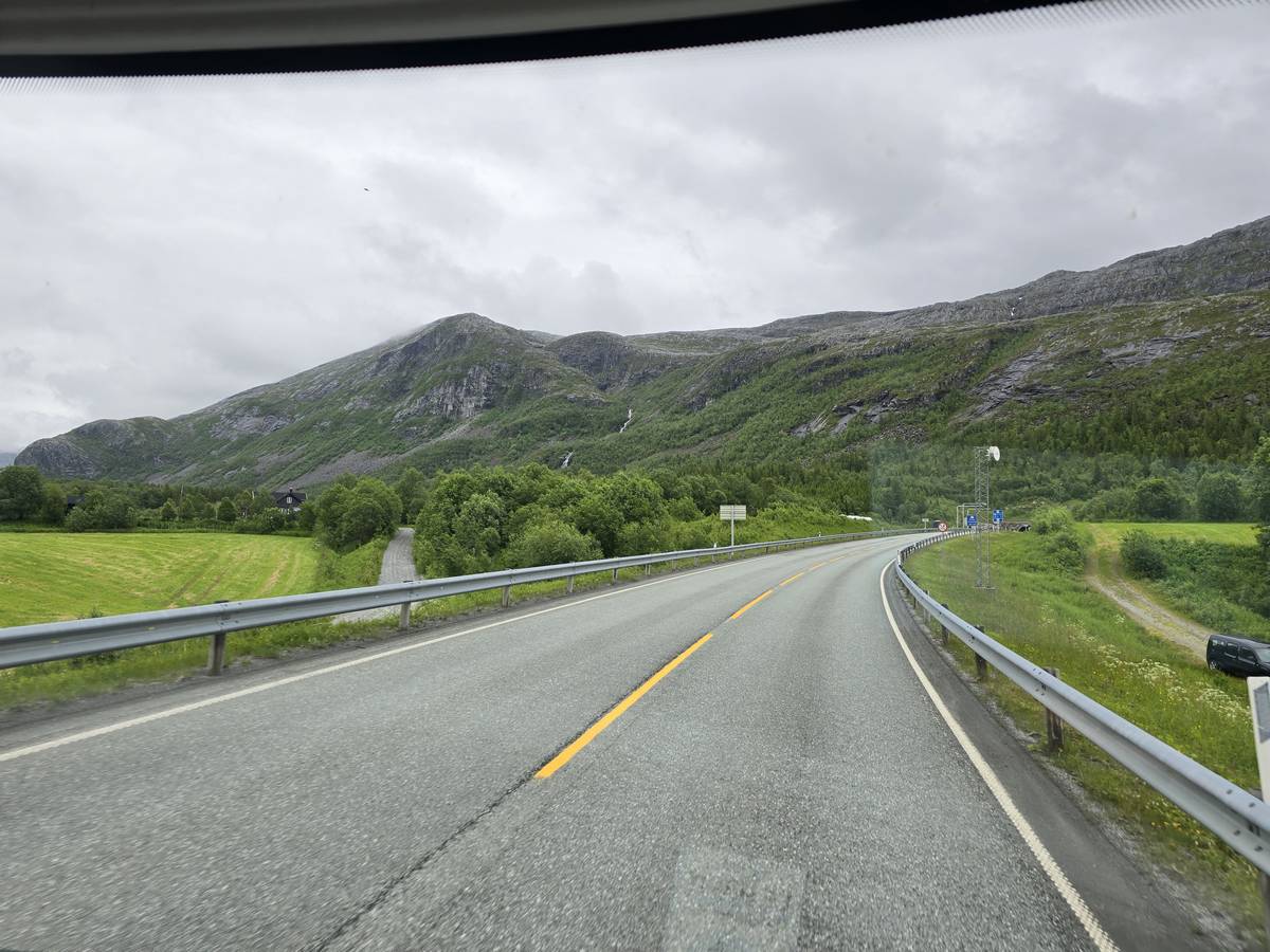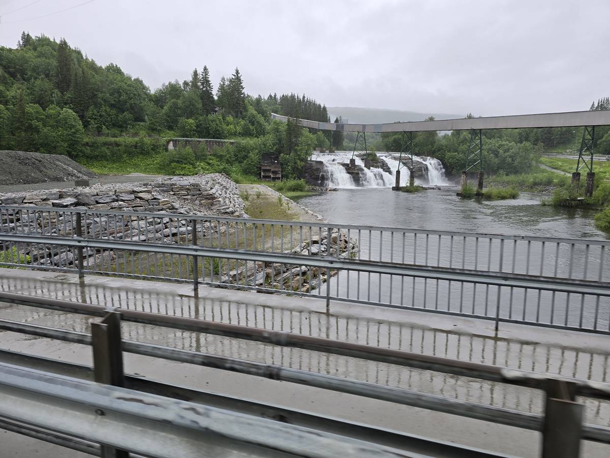 Un long pont reliant 2 îles sur la route après Mo I Rana.Il pleuvait à grosses gouttes comme les photos en témoignent!