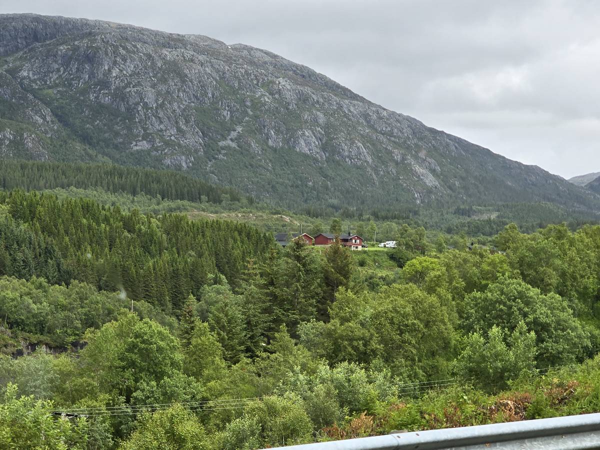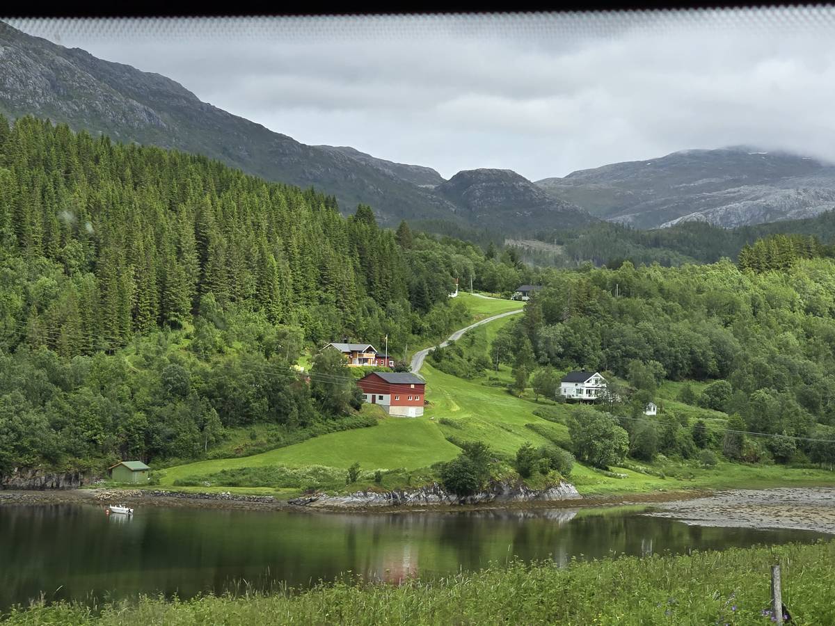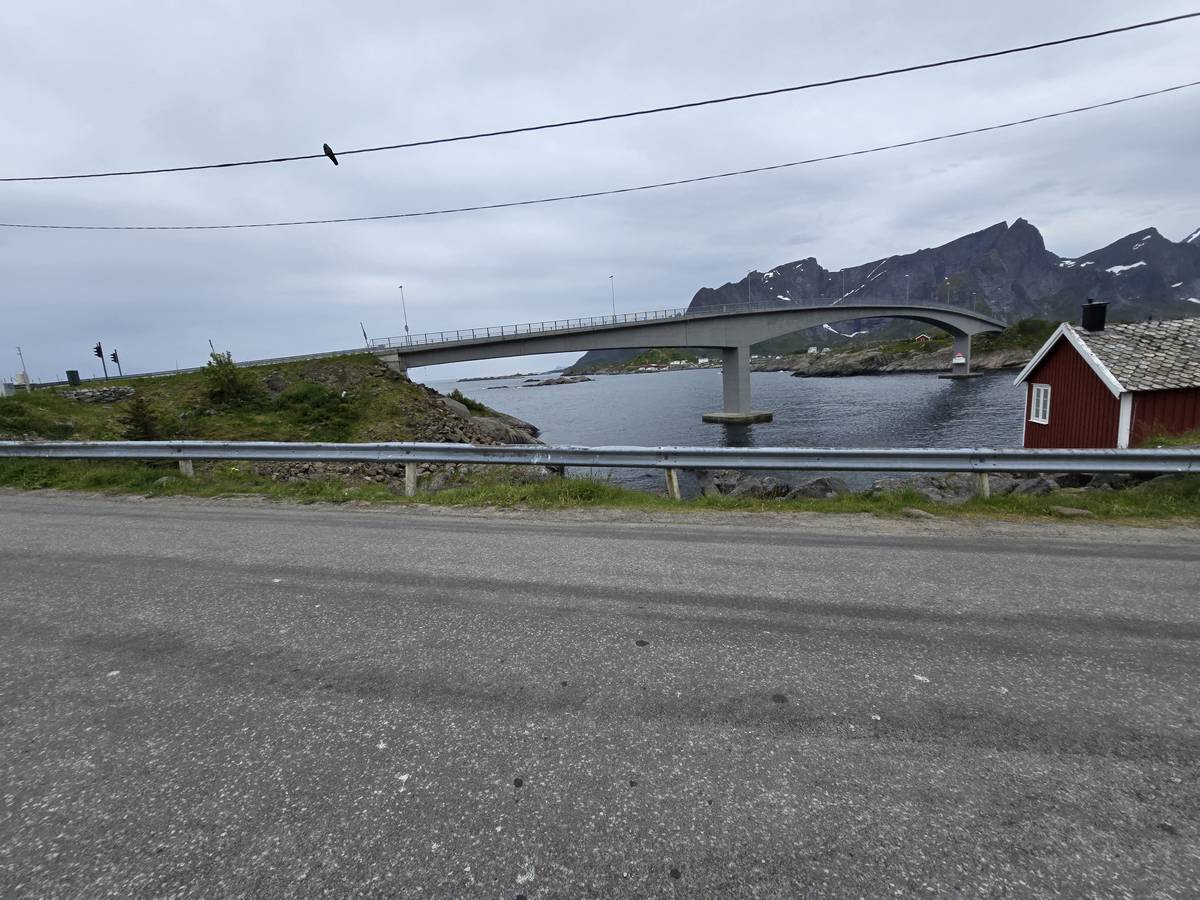 Nous renonçons à continuer d'îles en îles et rebroussons chemin. Encore un pont, puis des photos prises le long du chemin. Snasa (Coordonnées : 64.339458, 12.335197)