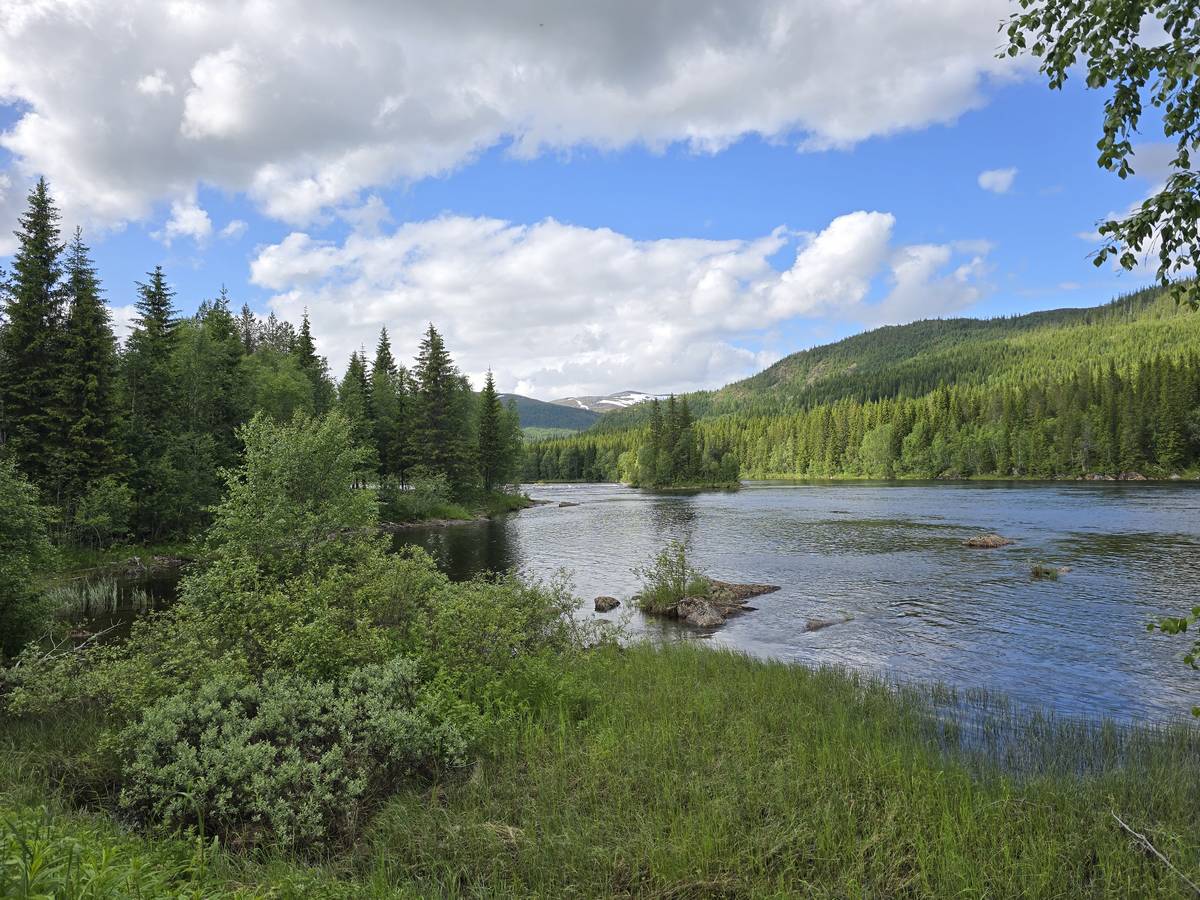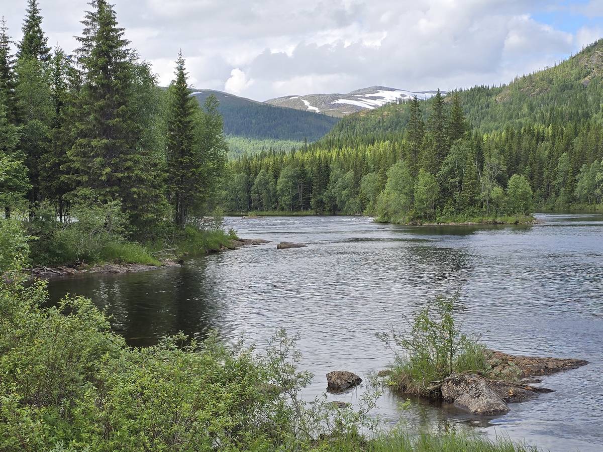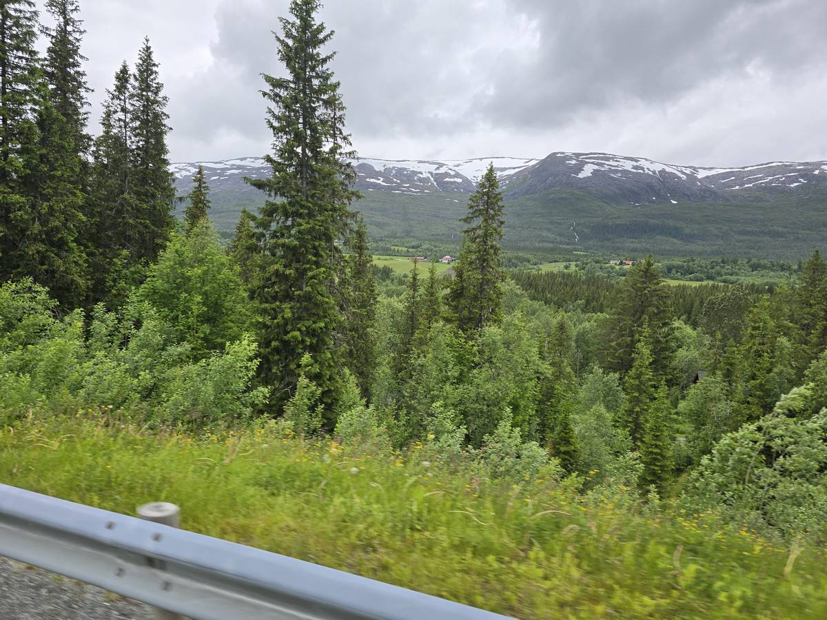 Nous renonçons à continuer d'îles en îles et rebroussons chemin. Encore un pont, puis des photos prises le long du chemin. Snasa (Coordonnées : 64.339458, 12.335197)