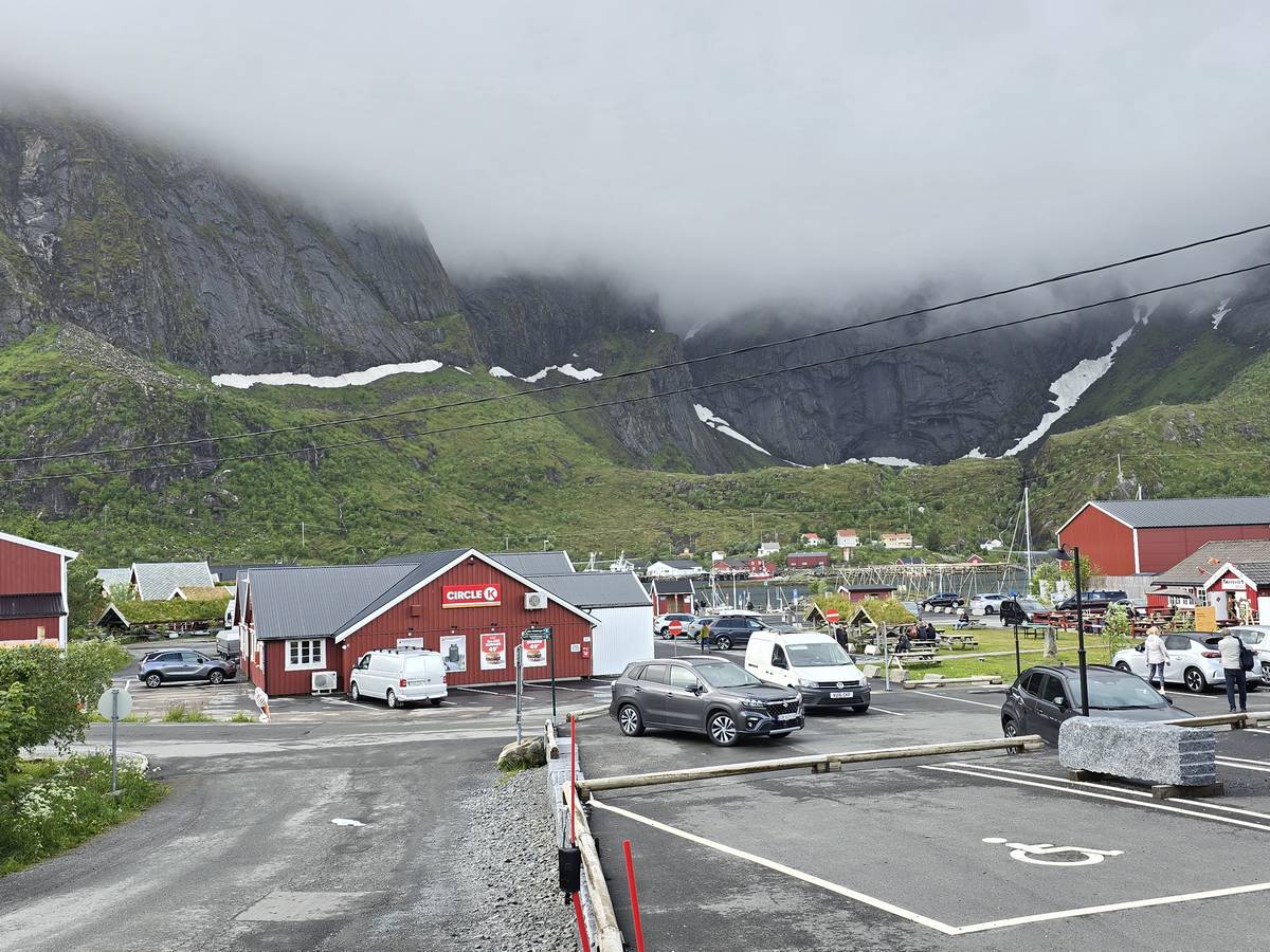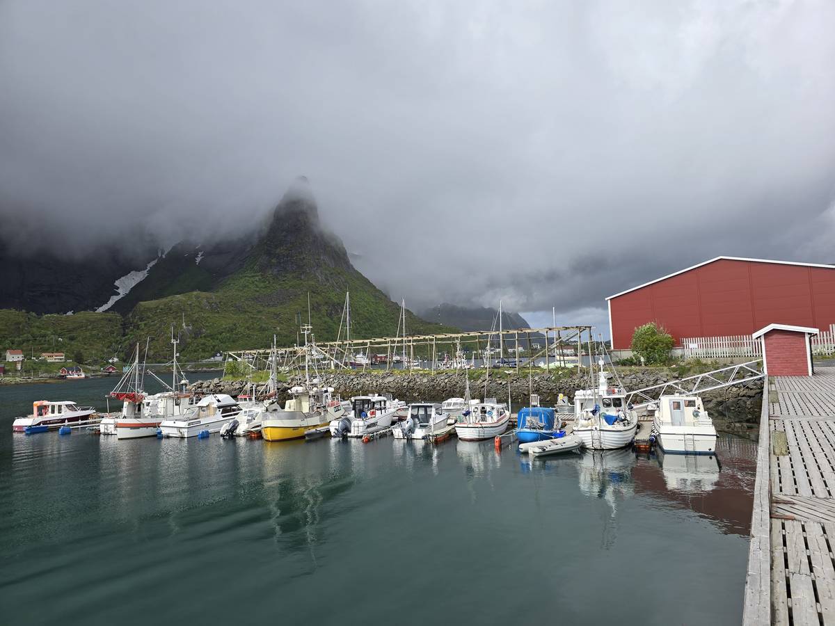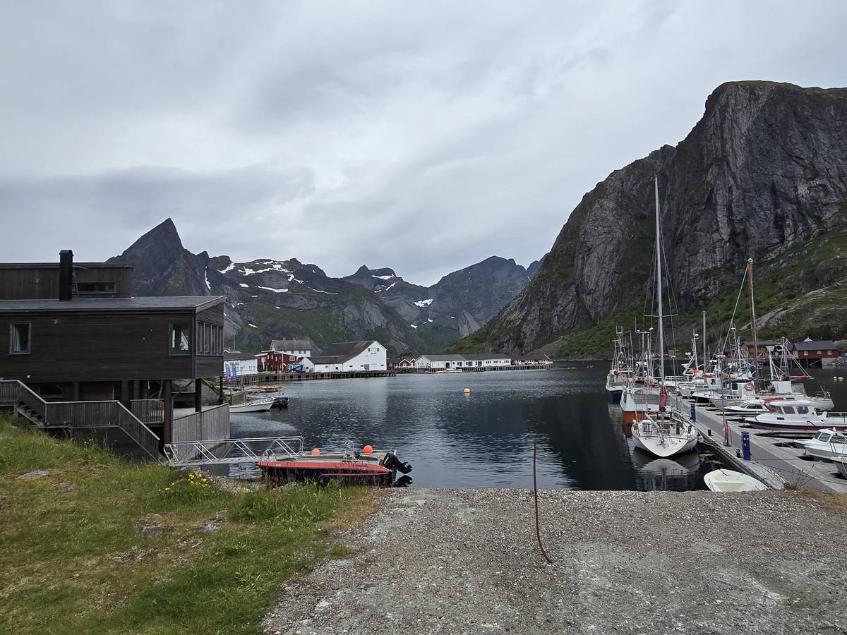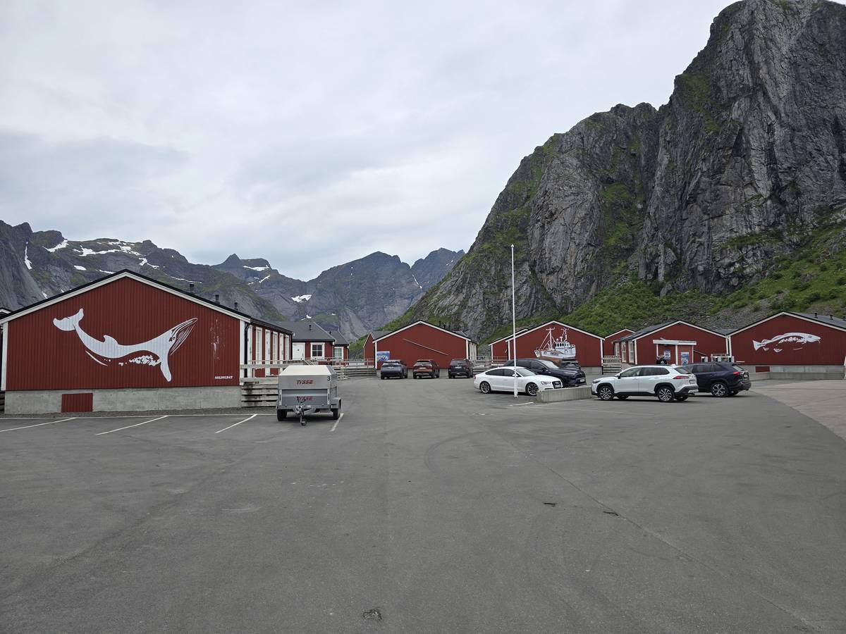 Nous nous rendons à Hamnoy, ce petit port nous plait, la place en face de ce village de pêcheurs également, nous décidons d'y rester jusqu'au surlendemain. (Coordonnées : 67.946381, 13.137839)