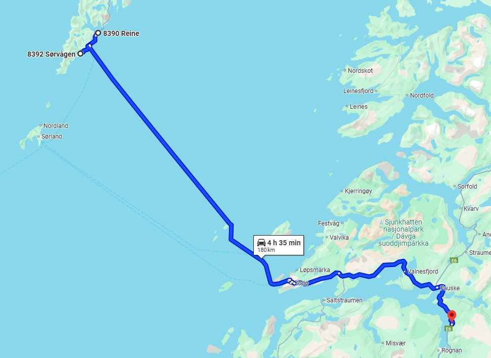 Une dernière visite sur les Lofoten avant de prendre le ferry à Moskenes pour Bodo. Nous nous rendons à "A I Lofoten". Nous stationnons sur une grande place après le tunnel à gauche. De cette place, un sentier nous amène à cette charmante ville à l'extrème pointe sud des Lofoten. Le soir nous dormons près de Rognan (Coordonnées : 67.162212, 15.482121)