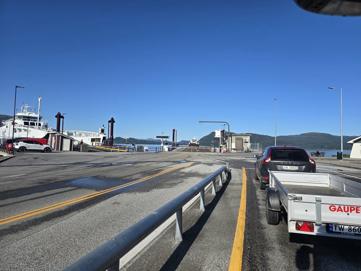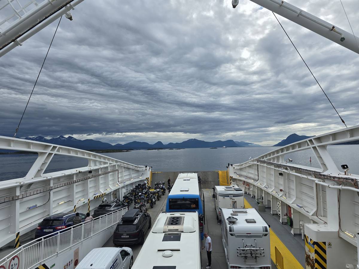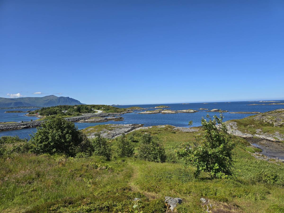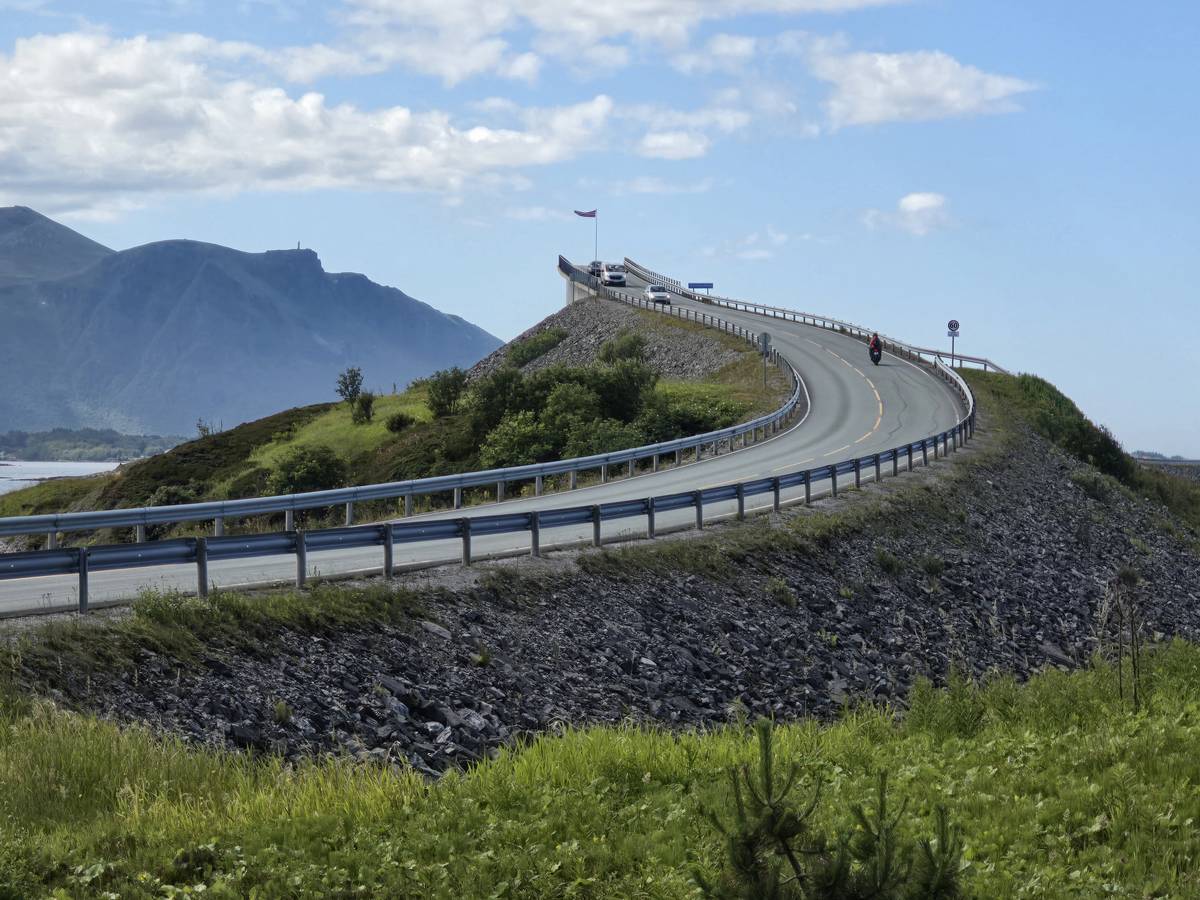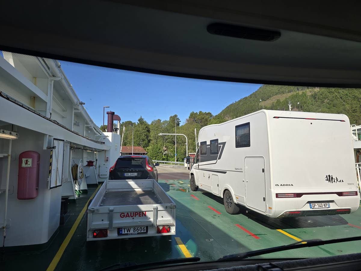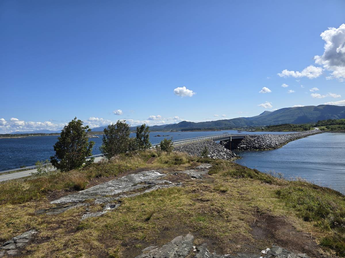 Nous prenons le ferry pour Christiansund. Puis la magique route de l'Atlantique. Vous trouverez cerainement des photos un peu similaires, c'est volontaire! J'ai trouvé cette route tellement belle que j'ai pris beaucoup de photos (nous avons pris) et j'en ai gardé beaucoup et jeté également beaucoup. Nous passerons la nuit entre Alesund et Vetnes sur un grand parking (Coordonnées : 62.532978, 6.950589).