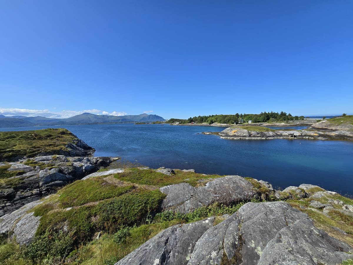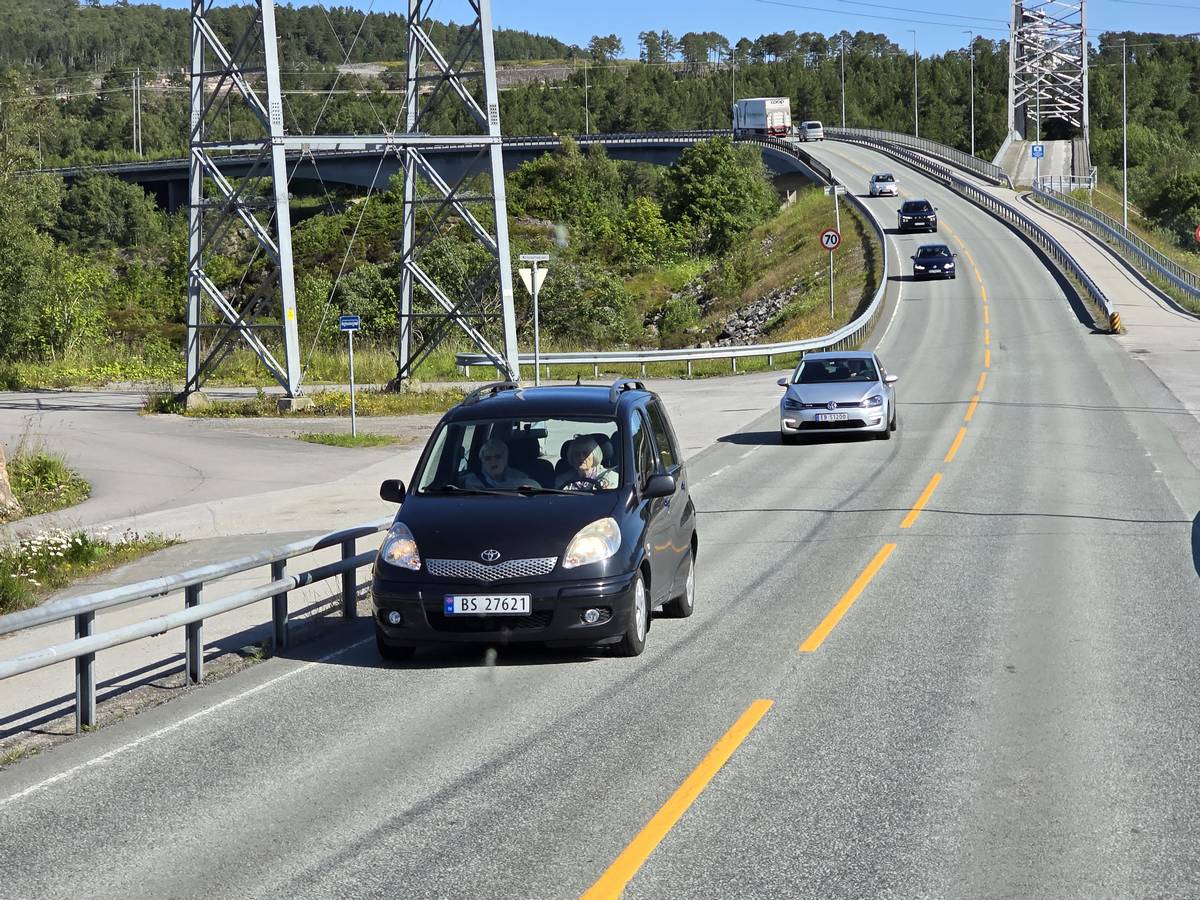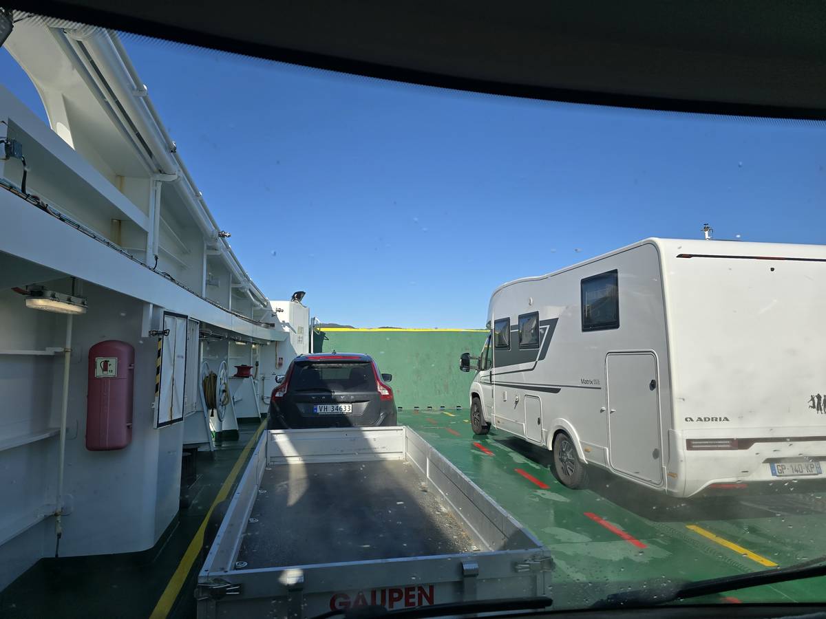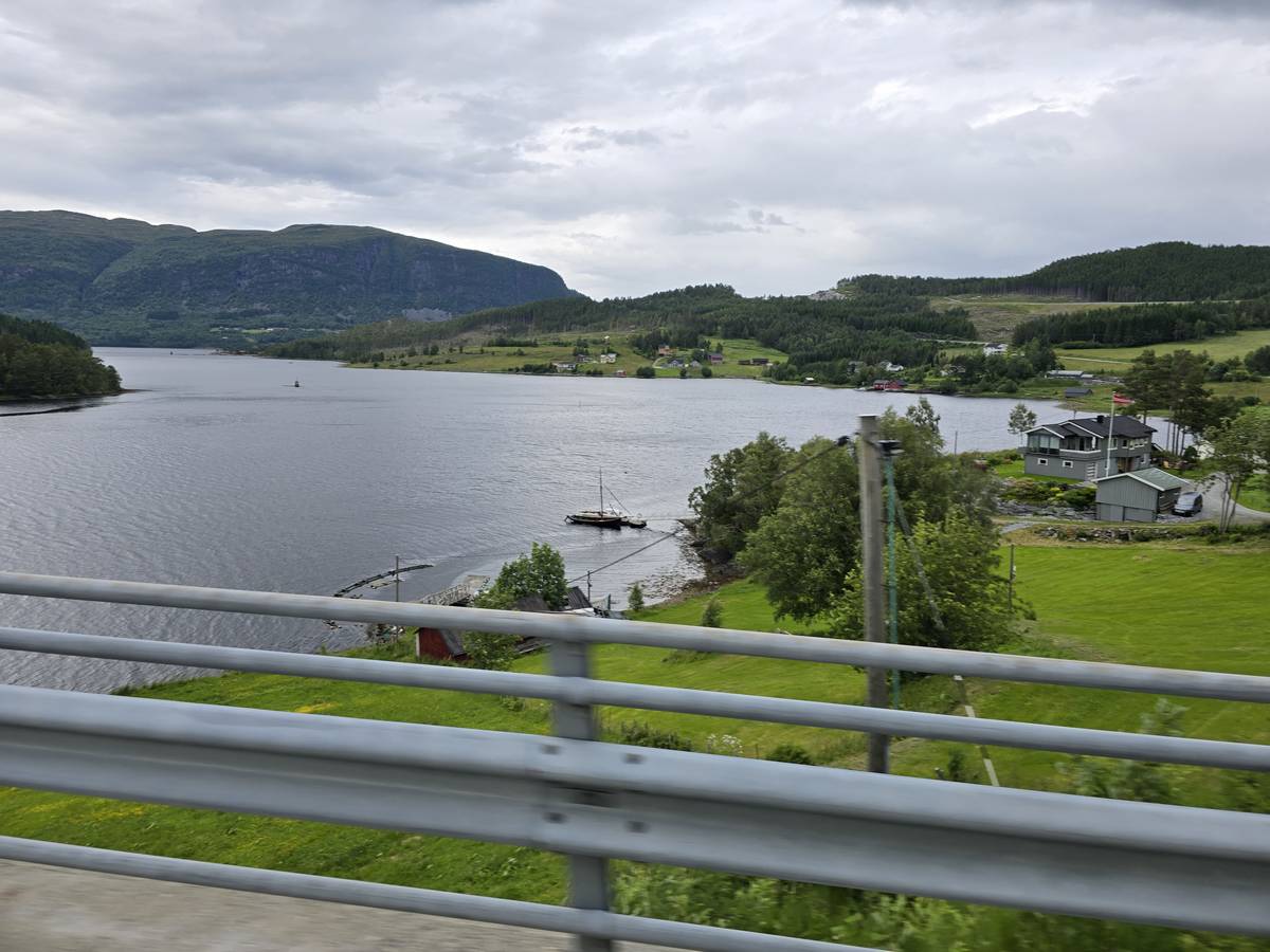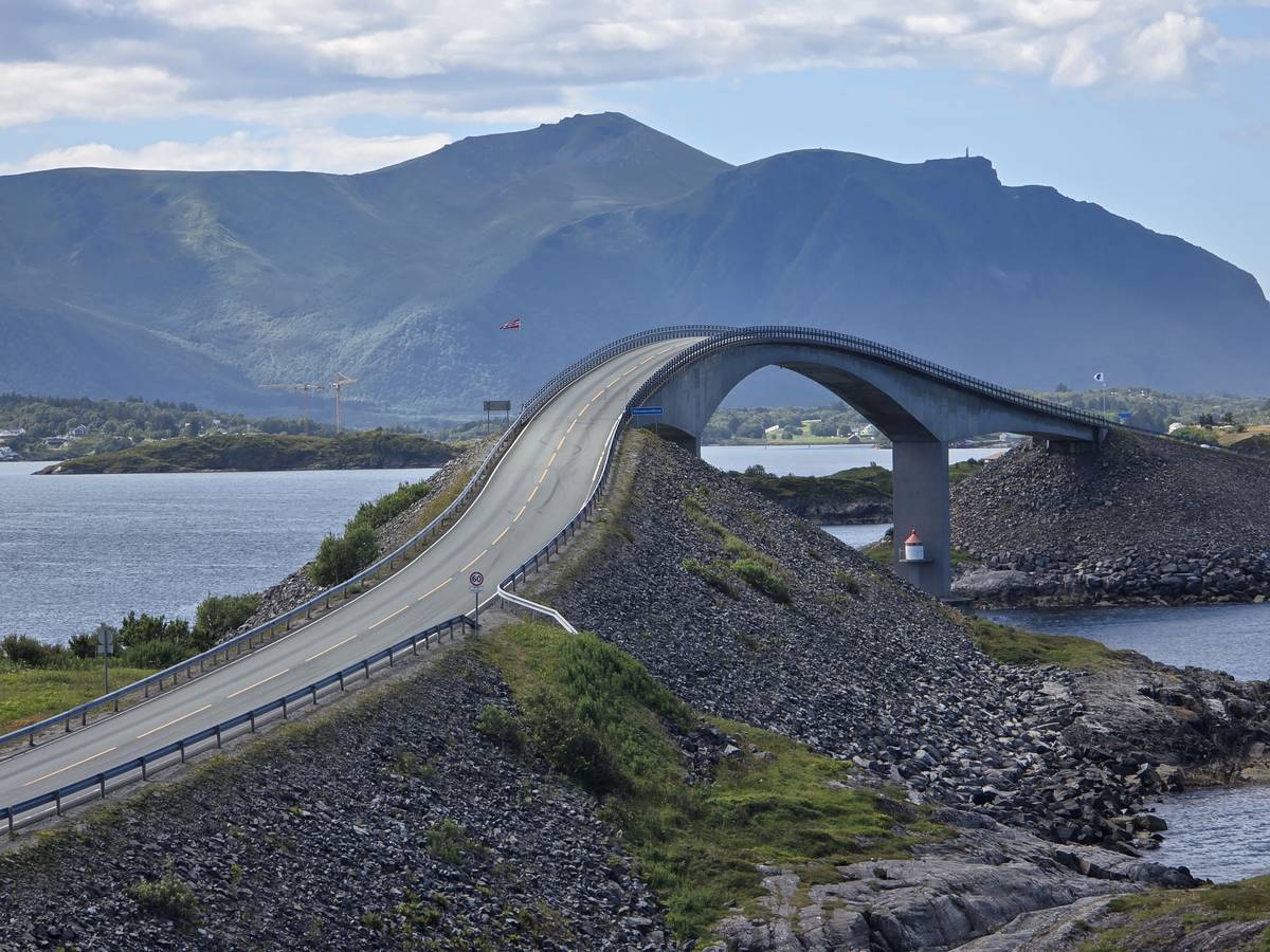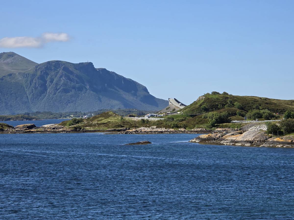 Nous prenons le ferry pour Christiansund. Puis la magique route de l'Atlantique. Vous trouverez cerainement des photos un peu similaires, c'est volontaire! J'ai trouvé cette route tellement belle que j'ai pris beaucoup de photos (nous avons pris) et j'en ai gardé beaucoup et jeté également beaucoup. Nous passerons la nuit entre Alesund et Vetnes sur un grand parking (Coordonnées : 62.532978, 6.950589).