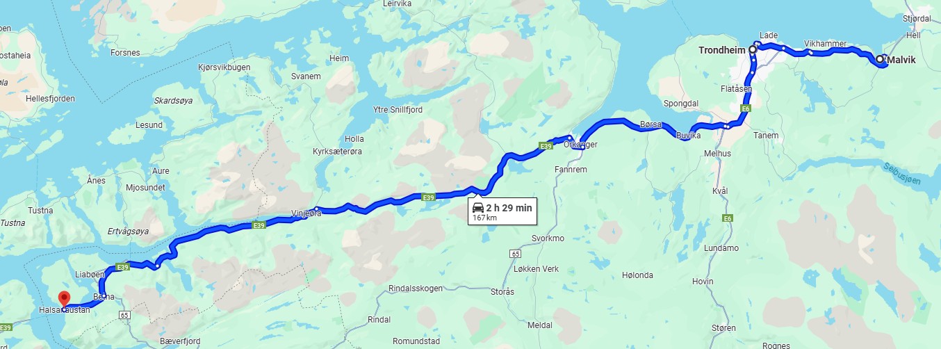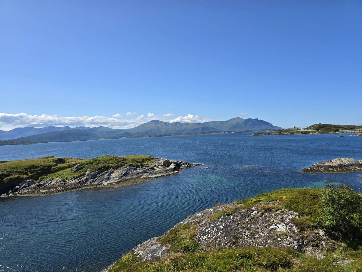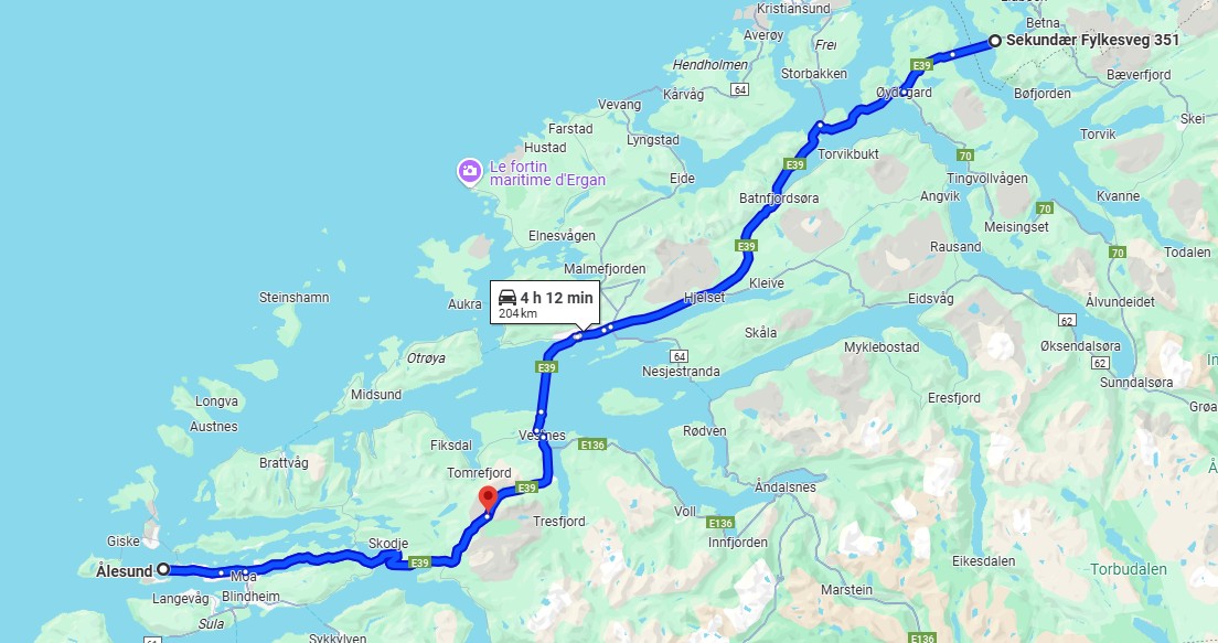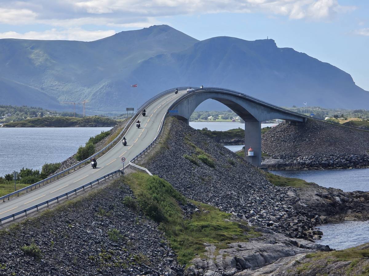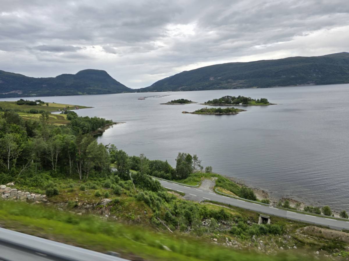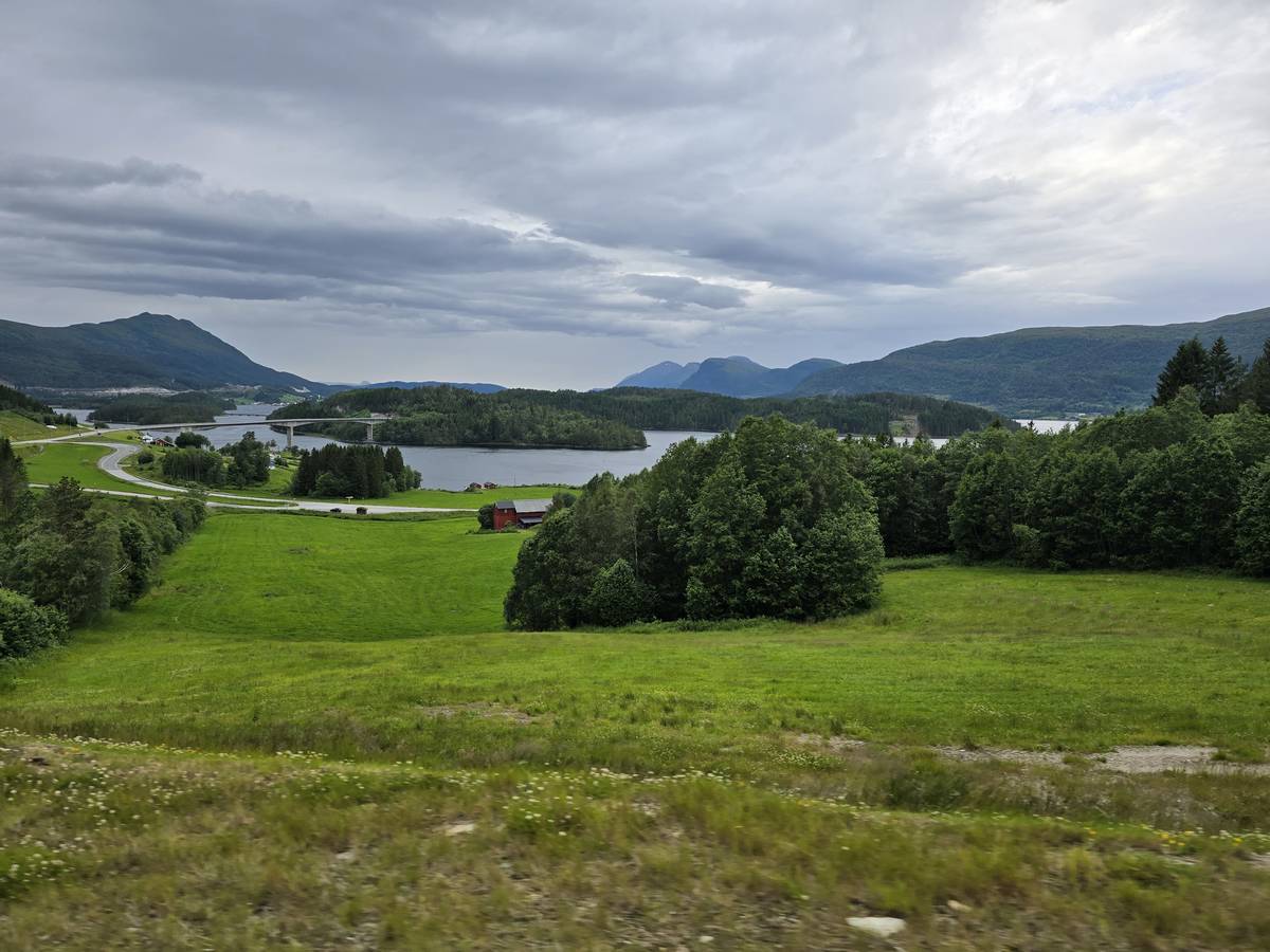 Nous prenons le ferry pour Christiansund. Puis la magique route de l'Atlantique. Vous trouverez cerainement des photos un peu similaires, c'est volontaire! J'ai trouvé cette route tellement belle que j'ai pris beaucoup de photos (nous avons pris) et j'en ai gardé beaucoup et jeté également beaucoup. Nous passerons la nuit entre Alesund et Vetnes sur un grand parking (Coordonnées : 62.532978, 6.950589).