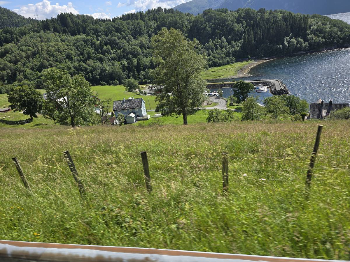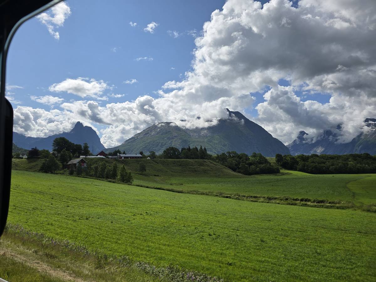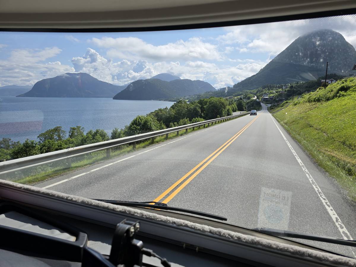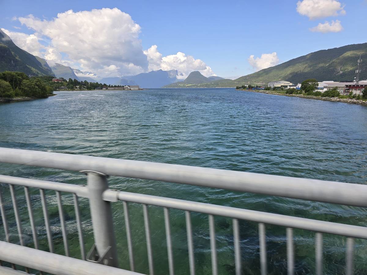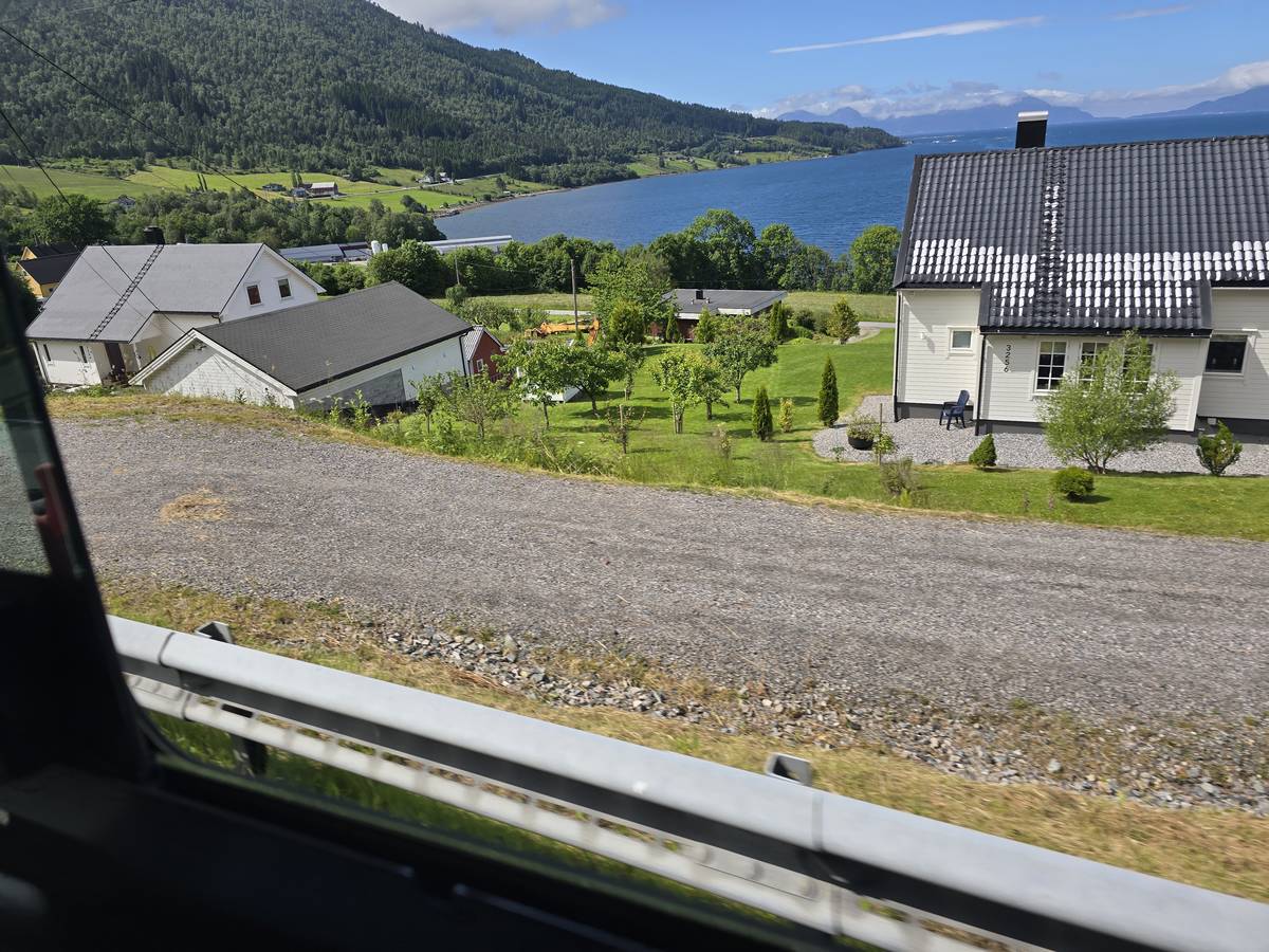 Sur la route jusqu'au sommet de la route des aigles (Orneveien). Nous prenons le ferry à Linge, nous traversons le Storfjord et débarquons à Eidsdal.