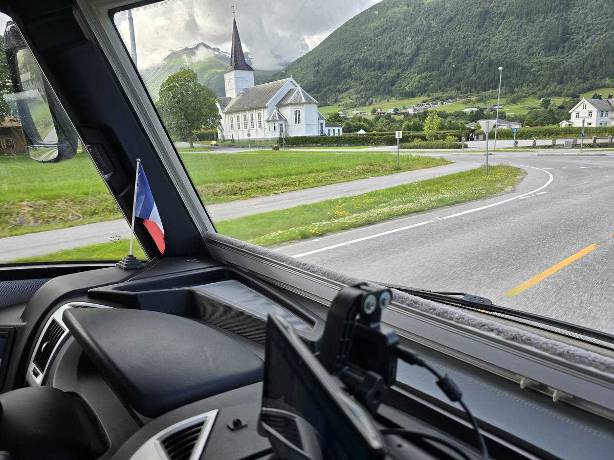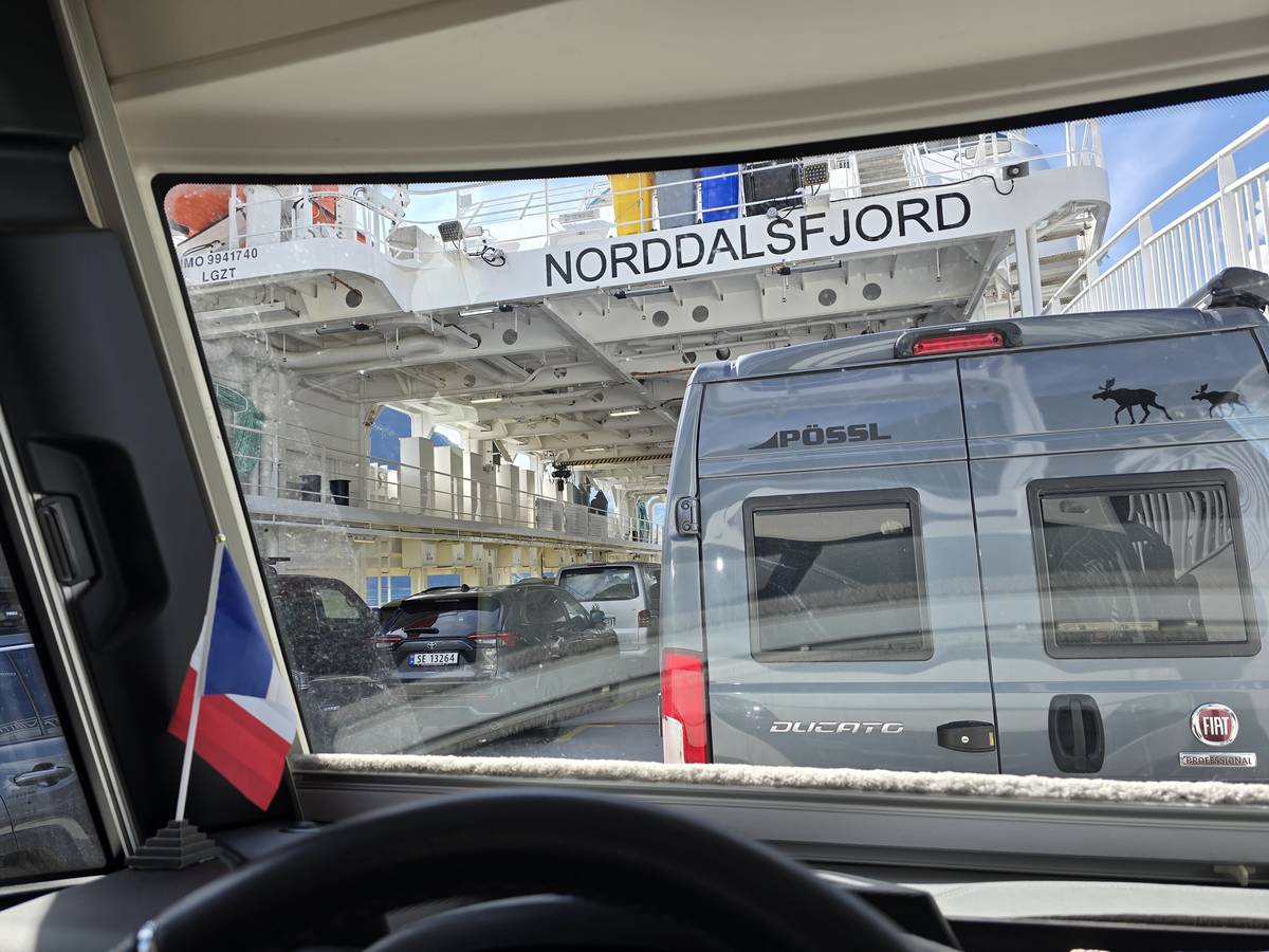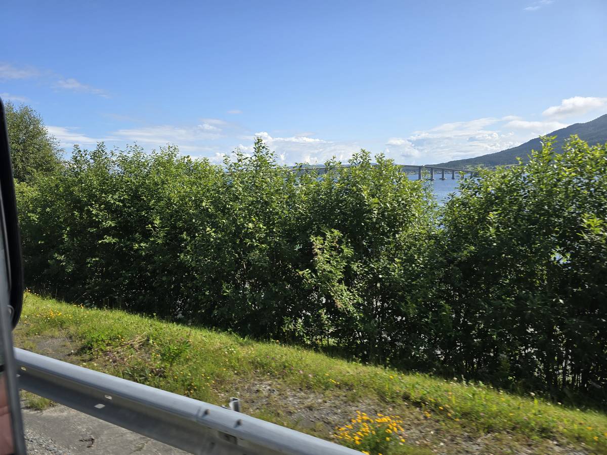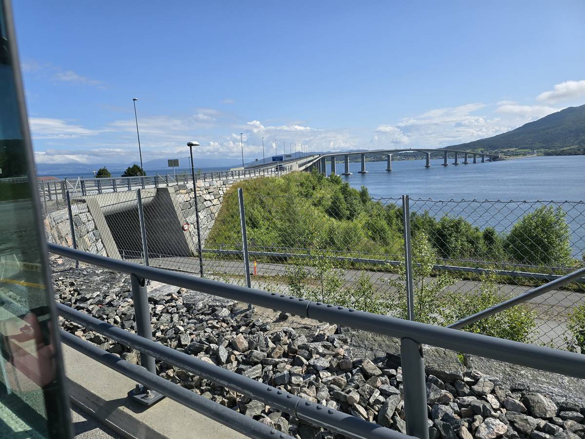 Sur la route jusqu'au sommet de la route des aigles (Orneveien). Nous prenons le ferry à Linge, nous traversons le Storfjord et débarquons à Eidsdal.