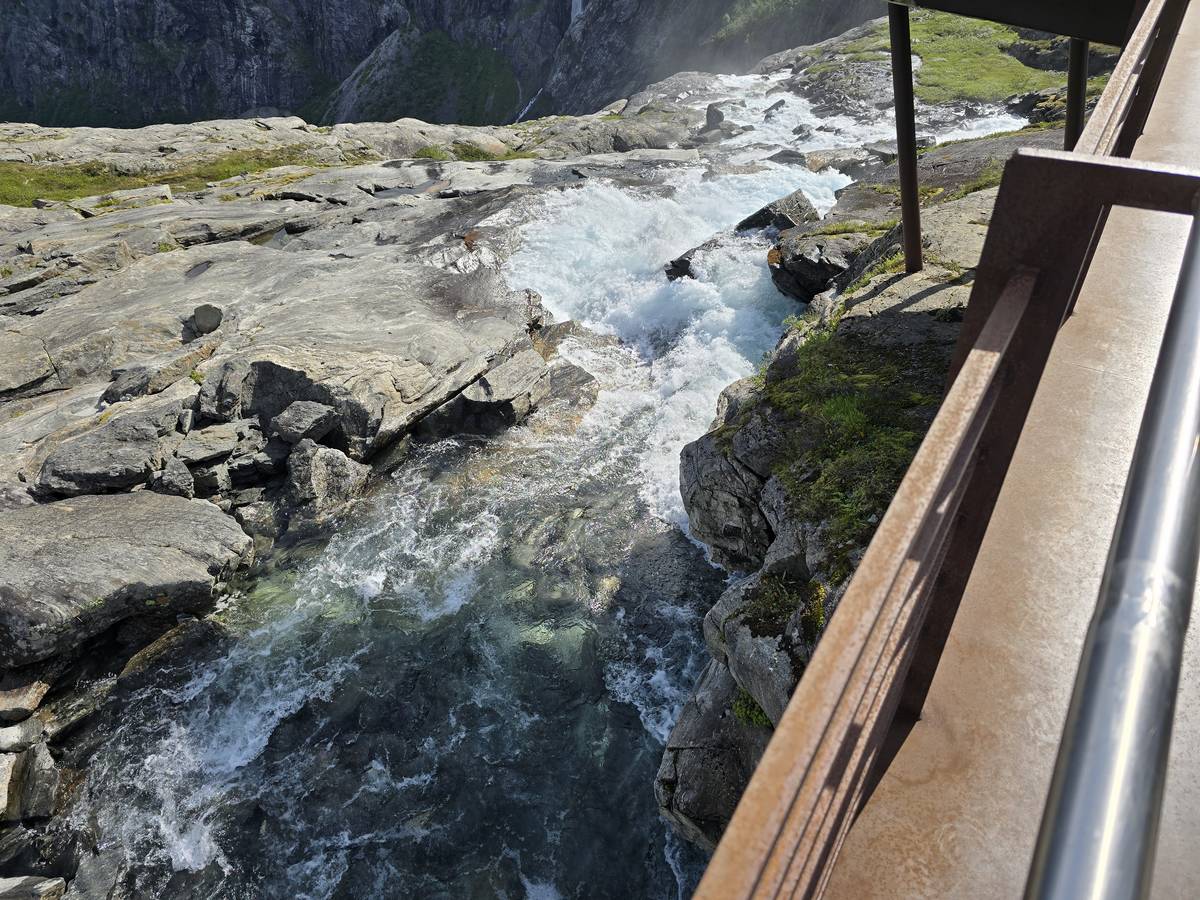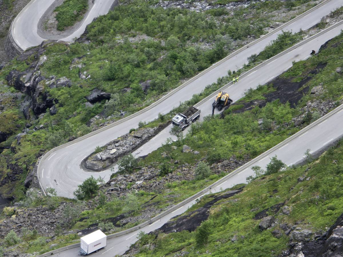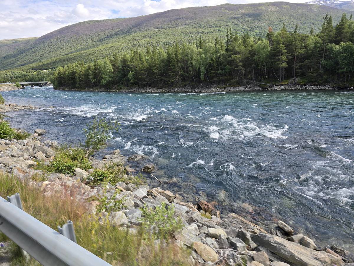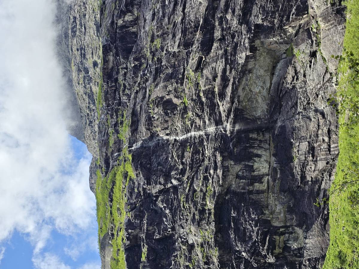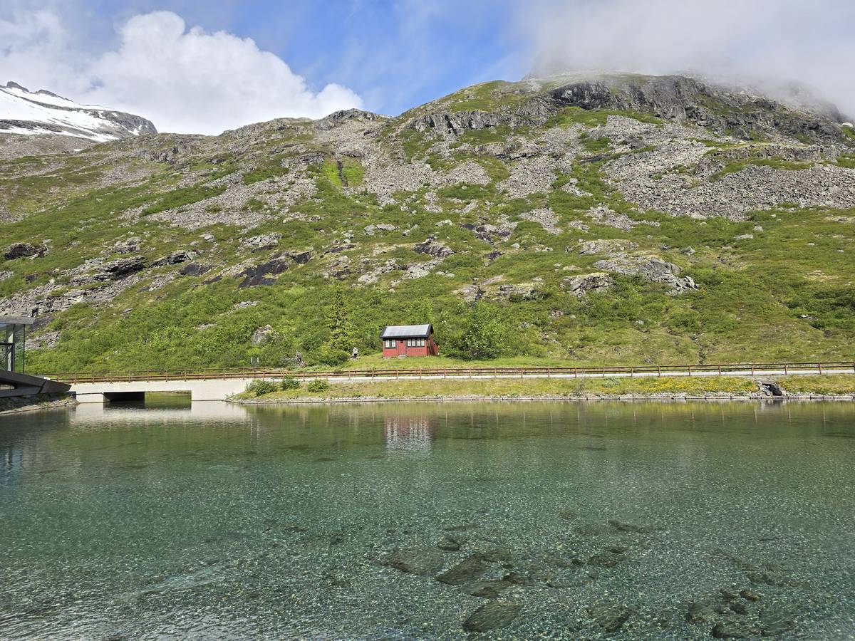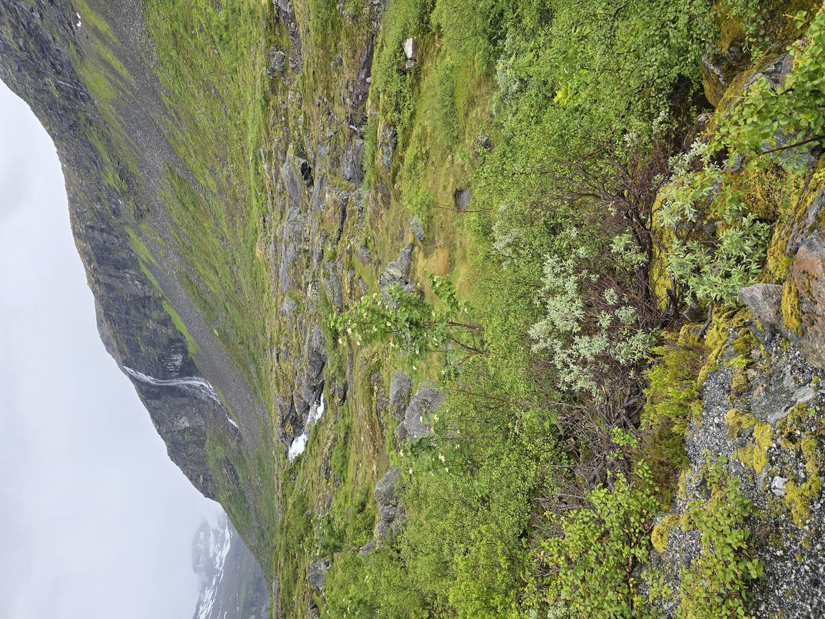 Ce jour, est un jour pas de chances!!! En effet, nous partons de notre parking-bivouac à une vingtaine de kilomètres d'Alesund pour rejoindre Andalsnes puis la route des trolls qui nous mènerait en haut des cascades à Trollstigen. Tout s'est bien passé jusqu'au début de la route des trolls que nous trouvons barrée avec un écriteau nous interdisant son passage pour cause de risques de glissement de terrain. Nous faisons quelques photos et... nous décidons de faire le tour pour admirer les chutes d'en haut... environ 120 Km... c'est faisable... puisque nous l'avons fait!!! Nous dormons le soir, bien fatigués, mais heureux sur le parking en haut à Trollstigen (nom de la route des trolls) (Coordonnées : 62.453375, 7.663351).