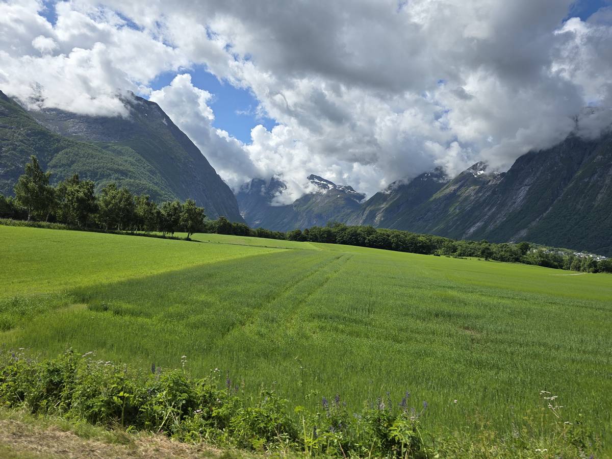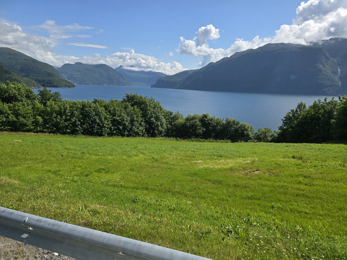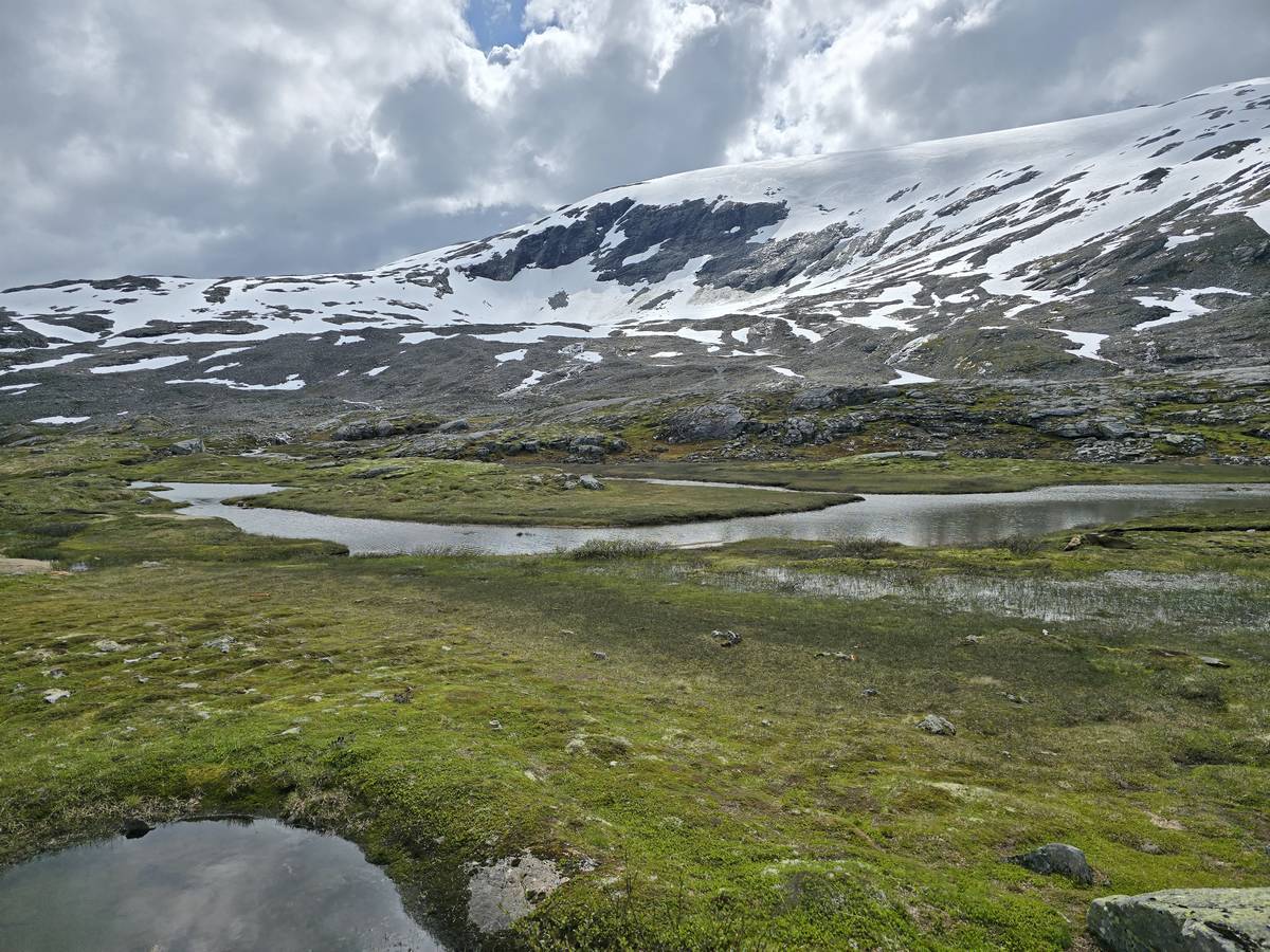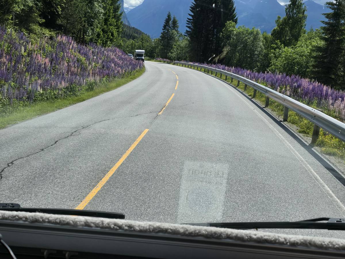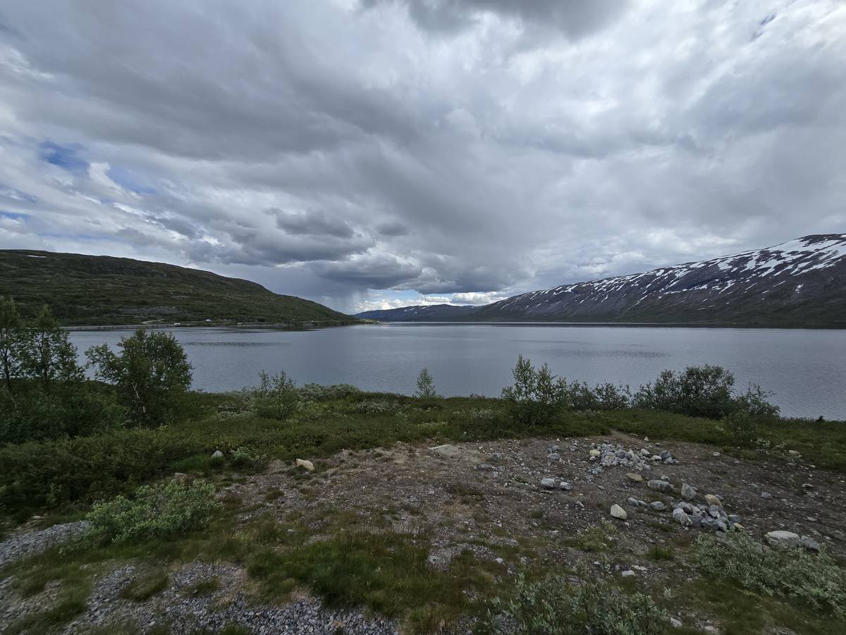 Aujourd'hui, nous ferons de la route, mais une route superbe nous menant à Lom et passant par La route des aigles et Geiranger. Nous trouverons sur notre route des montées et des descentes supérieures à 10%!!! Nous dormirons après Lom sur la route 55 (Coordonnées : 61.627082, 8.048620).