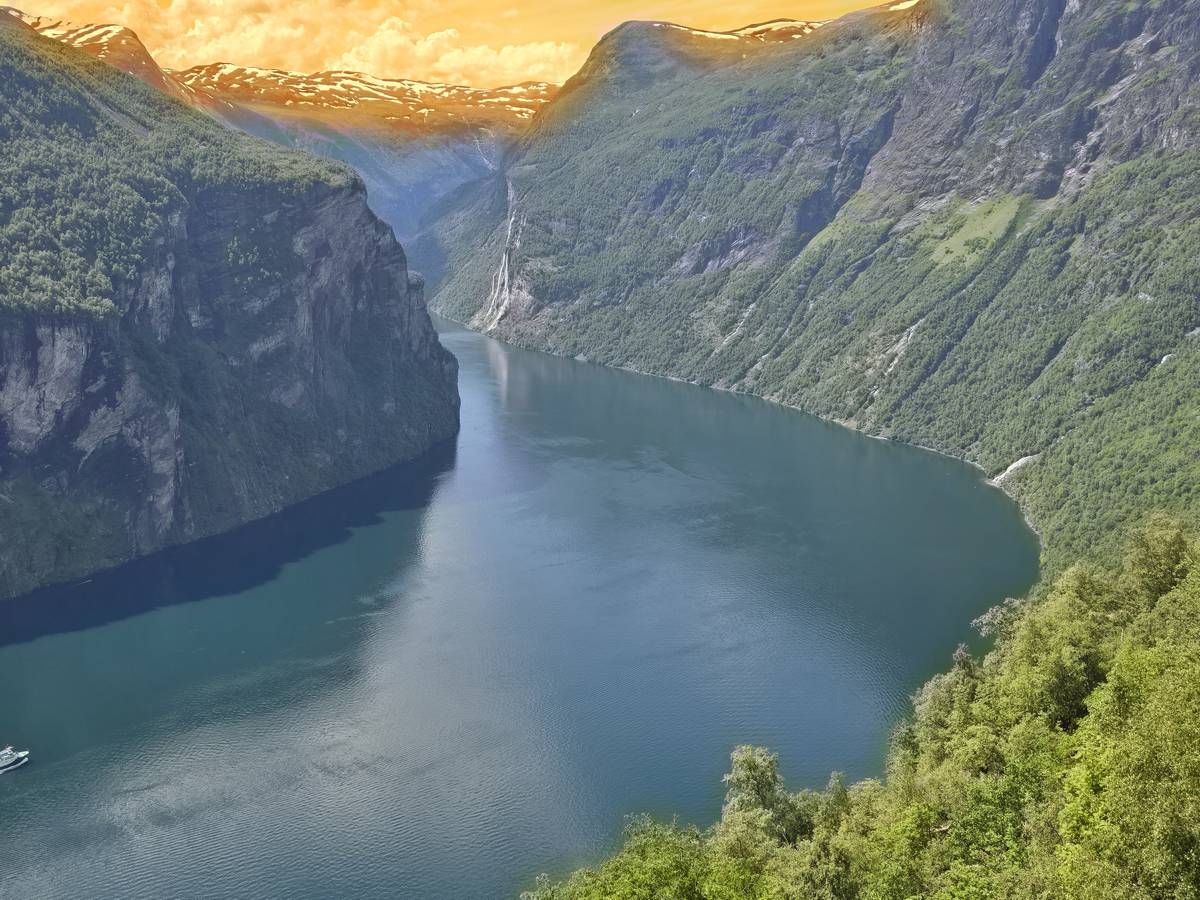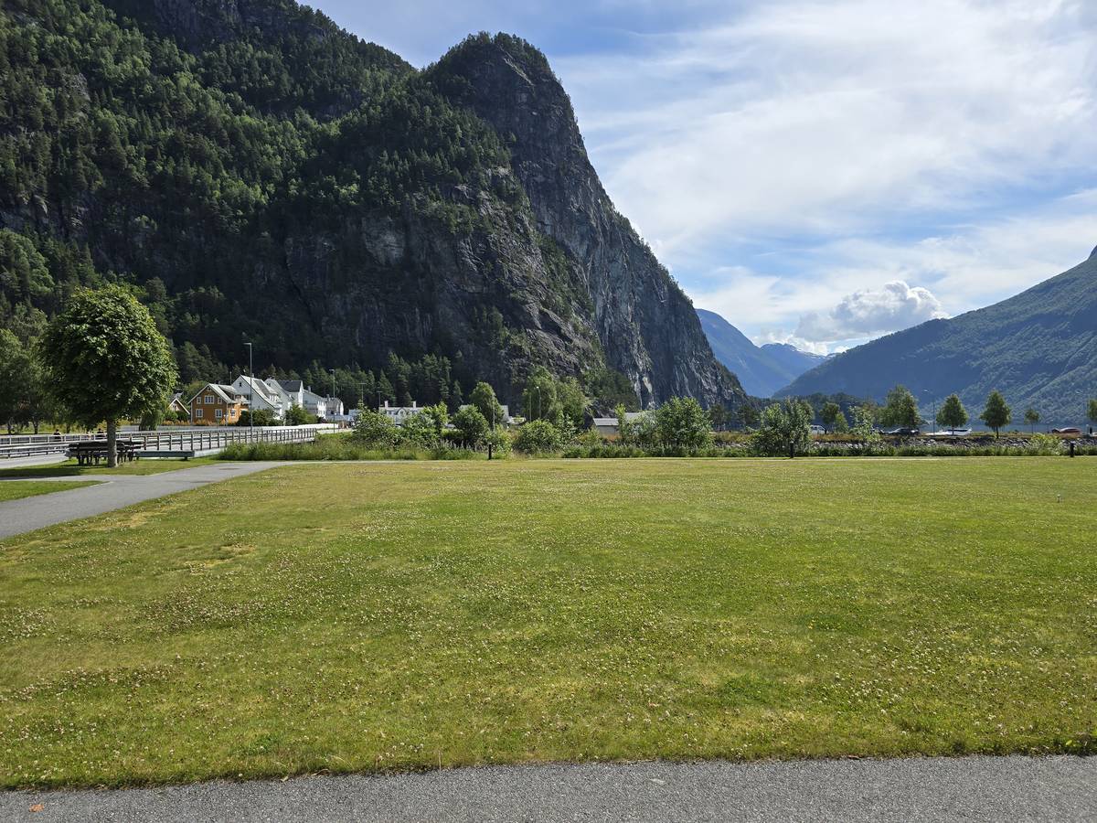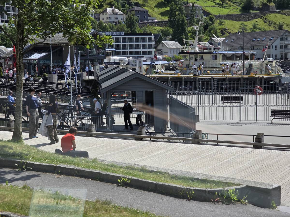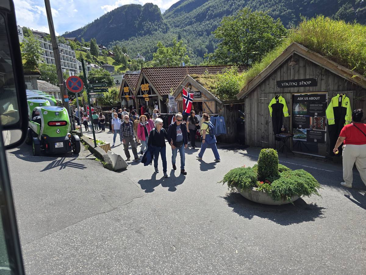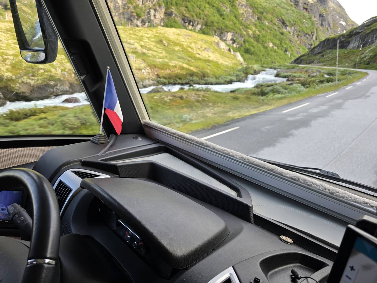 Nous nous arrêtons au sommet de la route des aigles (Orneveien), pour une pause avant la descente vers Geiranger. Nous avons la chance de trouver une place où garer le camping-car au virage des aigles (Ornesvongen) ce qui nous a permis de prendre de belles photos sur Geiranger et son fjord (Geirangerfjord).