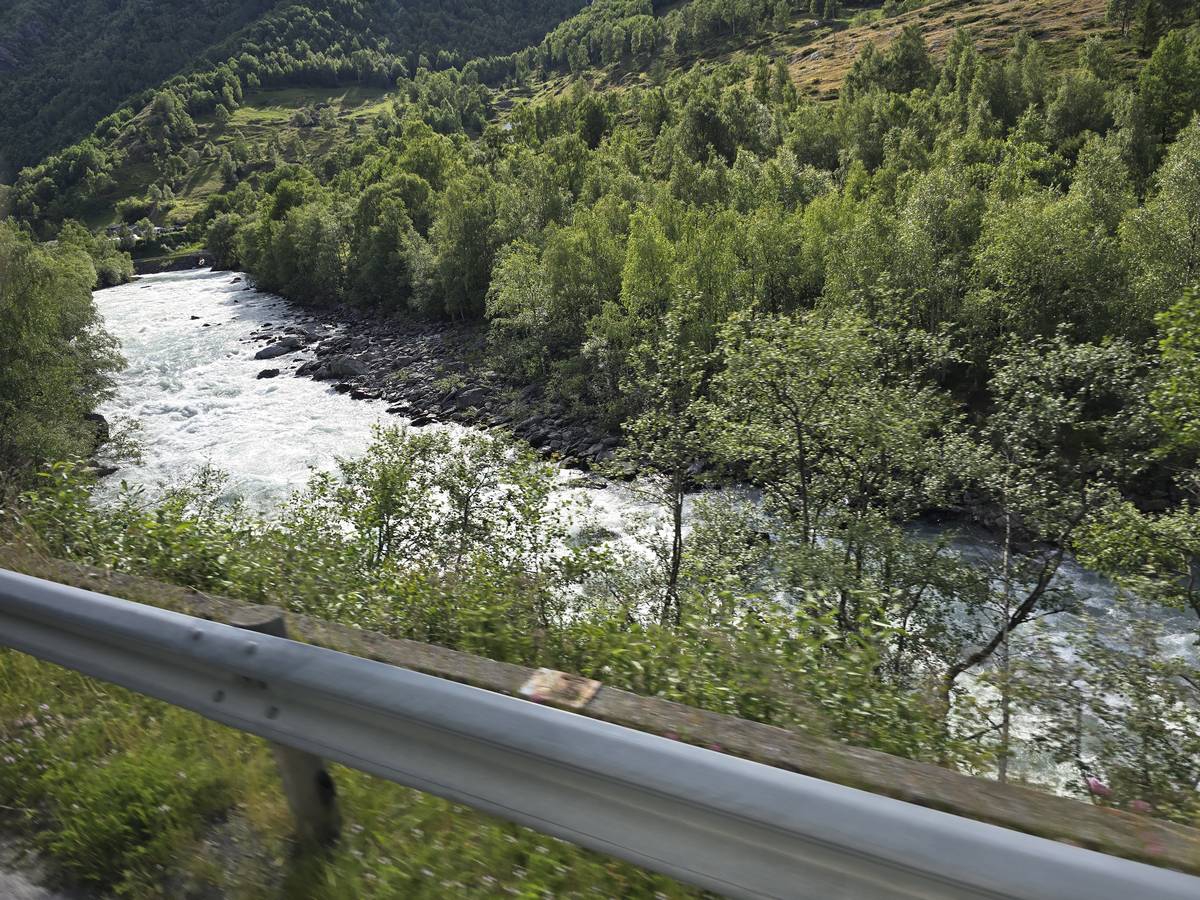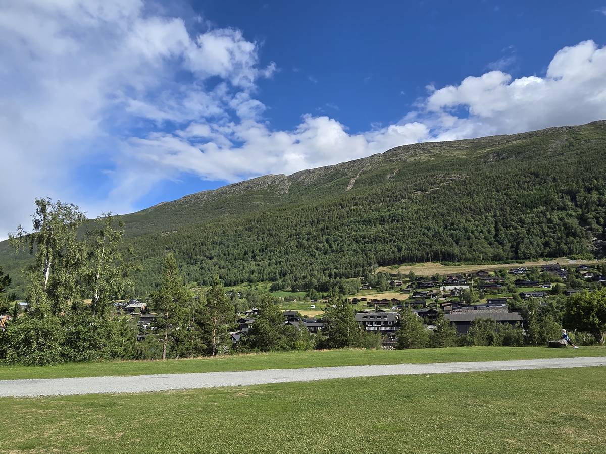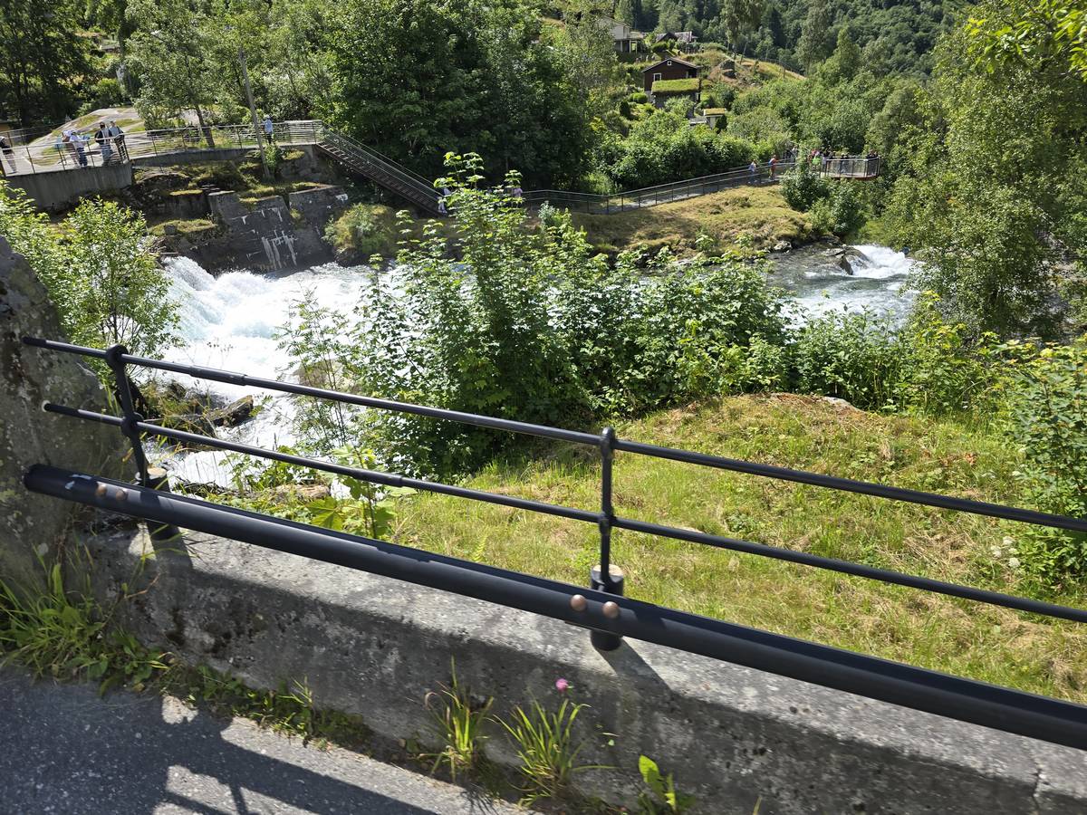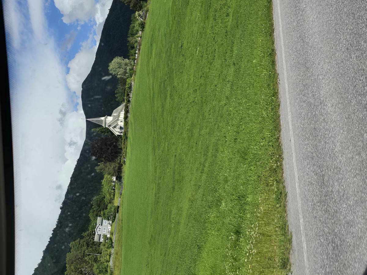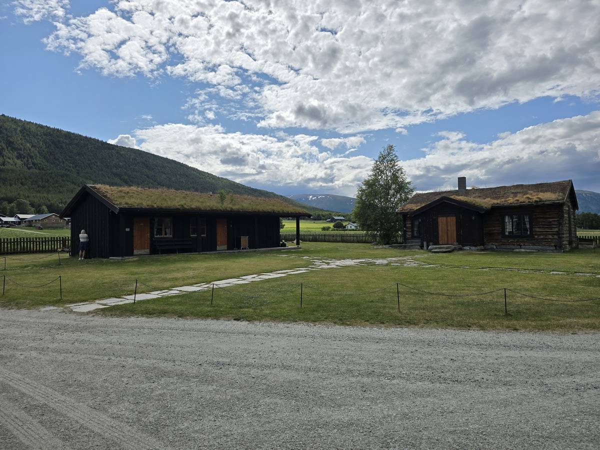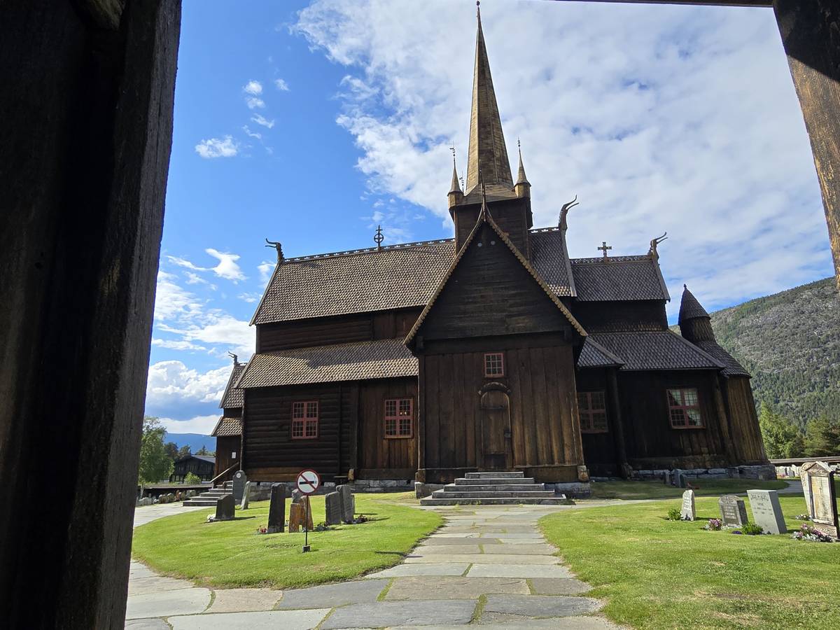 Lom et son église en bois debout au carrefour de la route 15 et de la route 55. Une surprise, il y a beaucoup de camping-cars sur la place de cette église! C'est normal, cette église est très belle, vous pourrez en juger par vous-même en regardant les photos. Nous la visiterons, puis continuerons notre route par la route 55 vers Solvorn. Nous bivouaquerons sur la route sur une aire de stationnement près d'un torrent. Sans doute, vous posez-vous cette question : "Pourquoi ce détour par Lom, alors qu'il y a une route plus directe?". Eh bien, la route directe est une route de tunnels, donc peu de paysages et rien à visiter! De plus, par Lom, nous avons vu des paysages et quelques églises superbes. Nous ne regrettons pas...