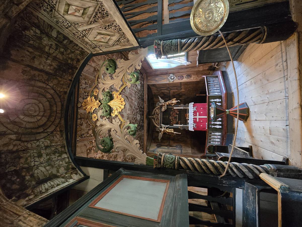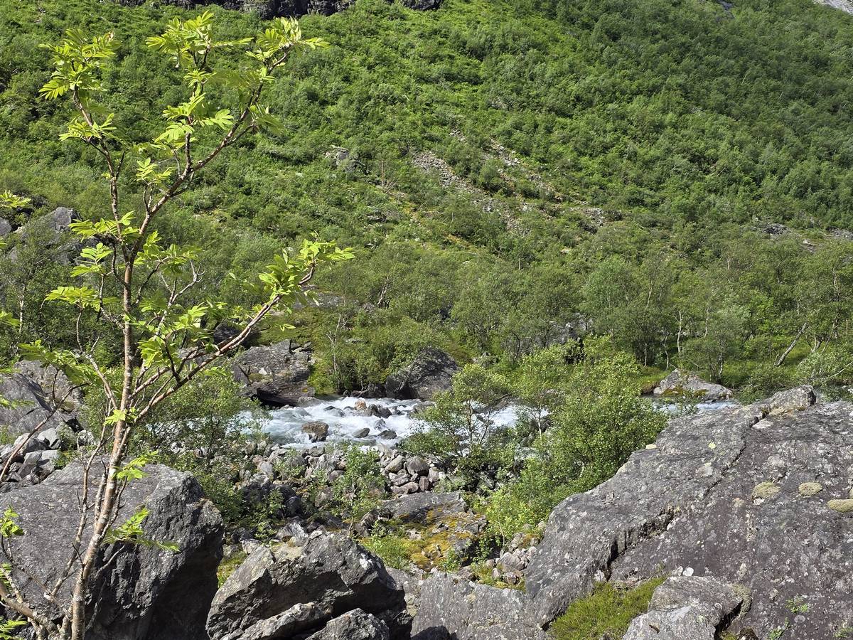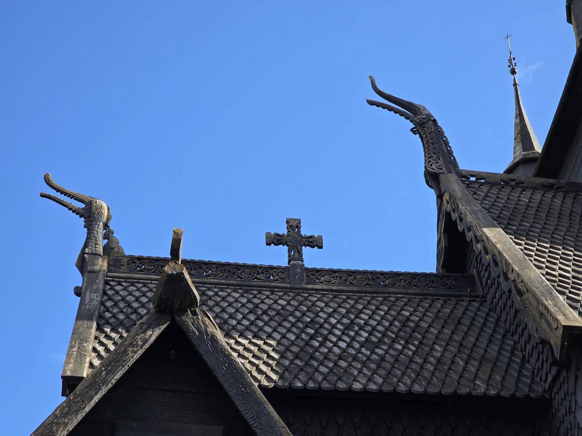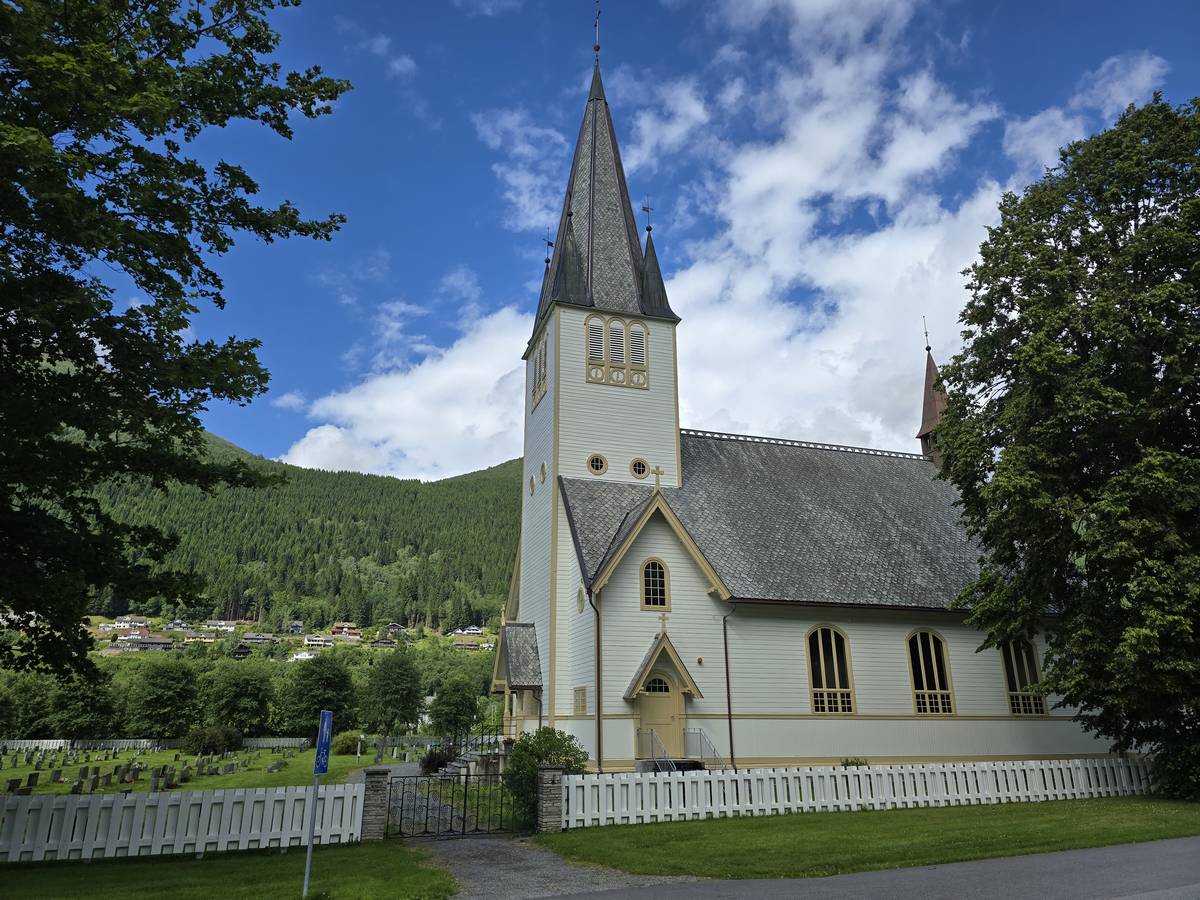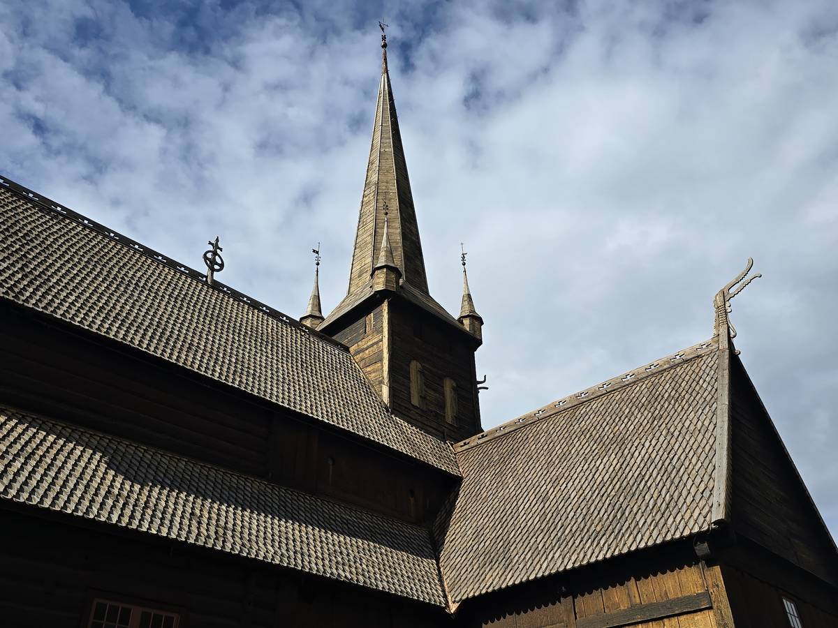Lom et son église en bois debout au carrefour de la route 15 et de la route 55. Une surprise, il y a beaucoup de camping-cars sur la place de cette église! C'est normal, cette église est très belle, vous pourrez en juger par vous-même en regardant les photos. Nous la visiterons, puis continuerons notre route par la route 55 vers Solvorn. Nous bivouaquerons sur la route sur une aire de stationnement près d'un torrent. Sans doute, vous posez-vous cette question : "Pourquoi ce détour par Lom, alors qu'il y a une route plus directe?". Eh bien, la route directe est une route de tunnels, donc peu de paysages et rien à visiter! De plus, par Lom, nous avons vu des paysages et quelques églises superbes. Nous ne regrettons pas...