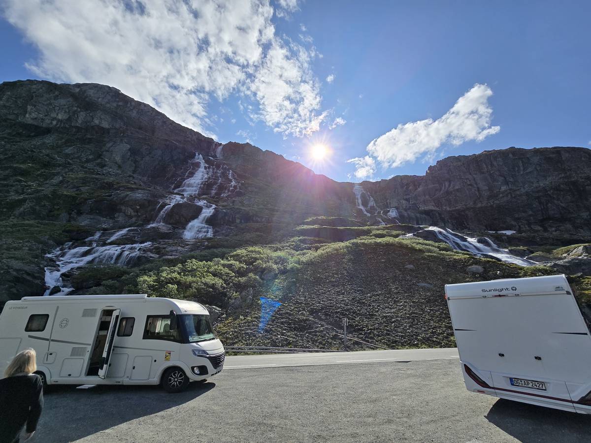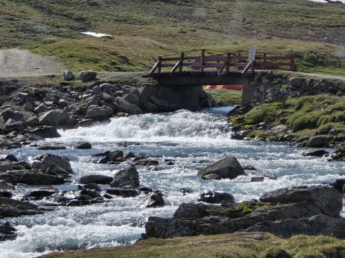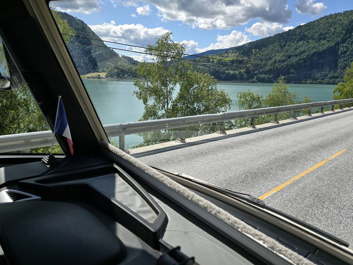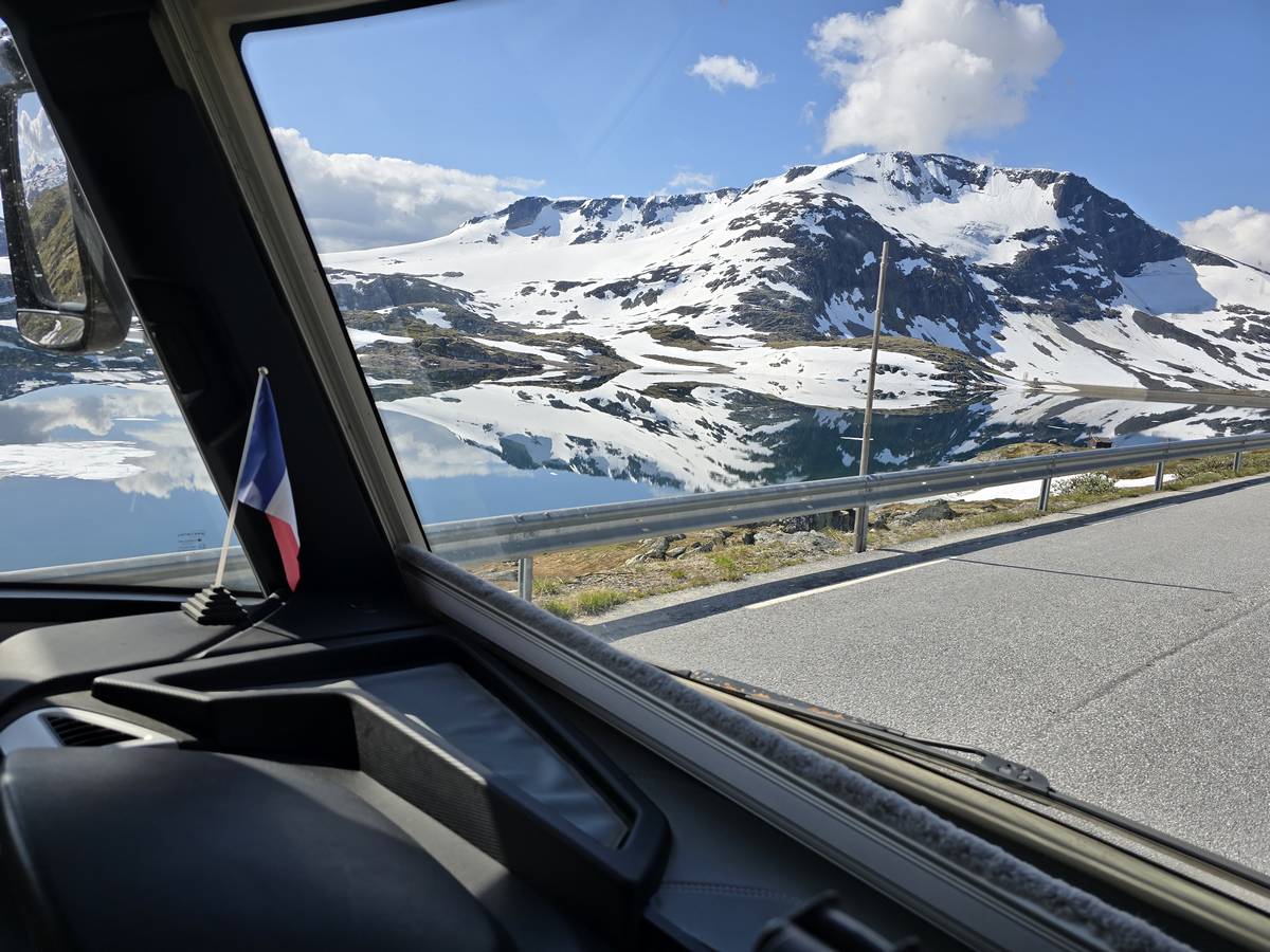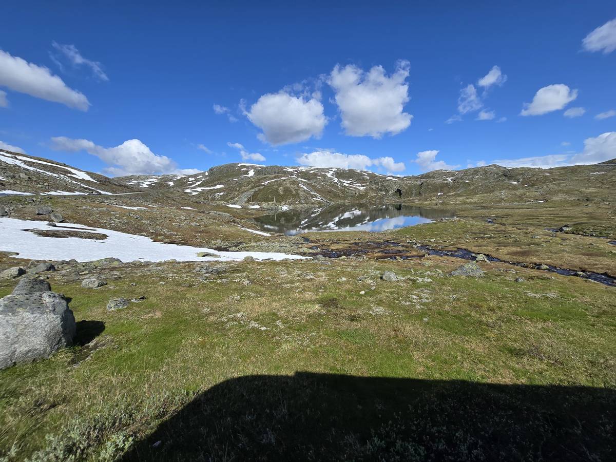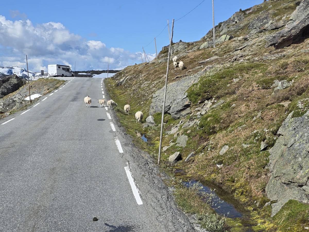 Quelques photos sur la route de Solvorn. Nous sommes sur un haut plateau d'environ 1200m d'altitude et nous cotoyons la neige. Comme partout en Norvège, nous pouvons y admirer les cascades toutes différentes et toutes plus belles les unes que les autres. Nous dormirons après Solvorn sur une aire de stationnement (Coordonnées : 61.283616, 7.164119)