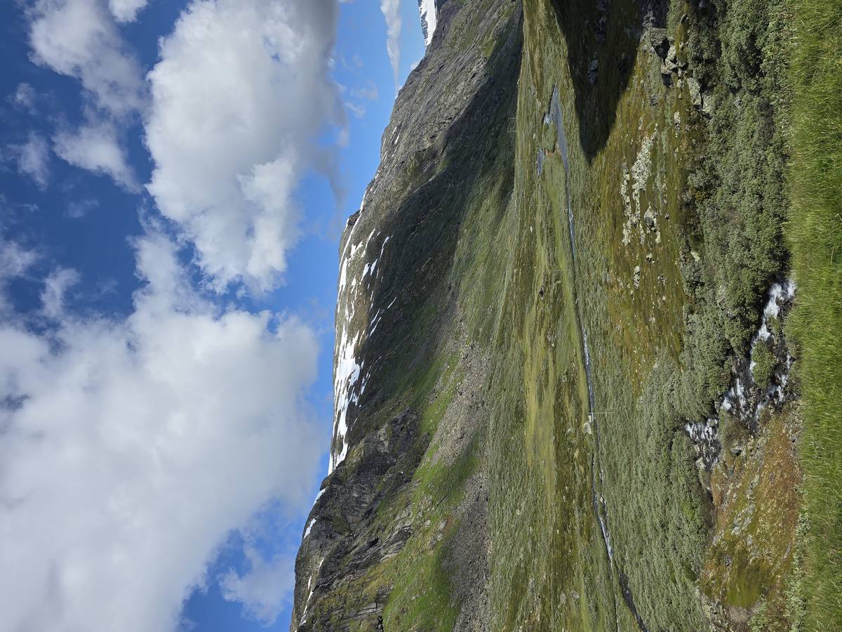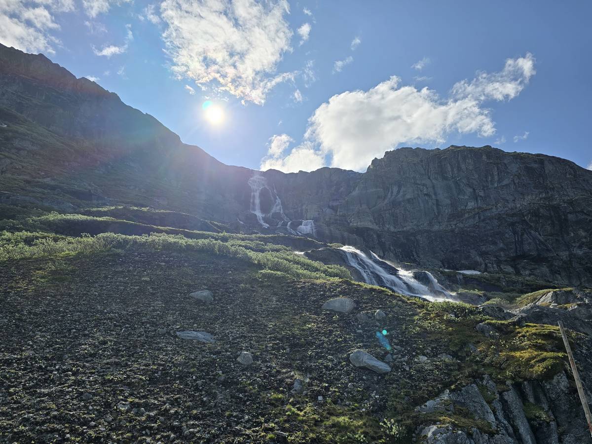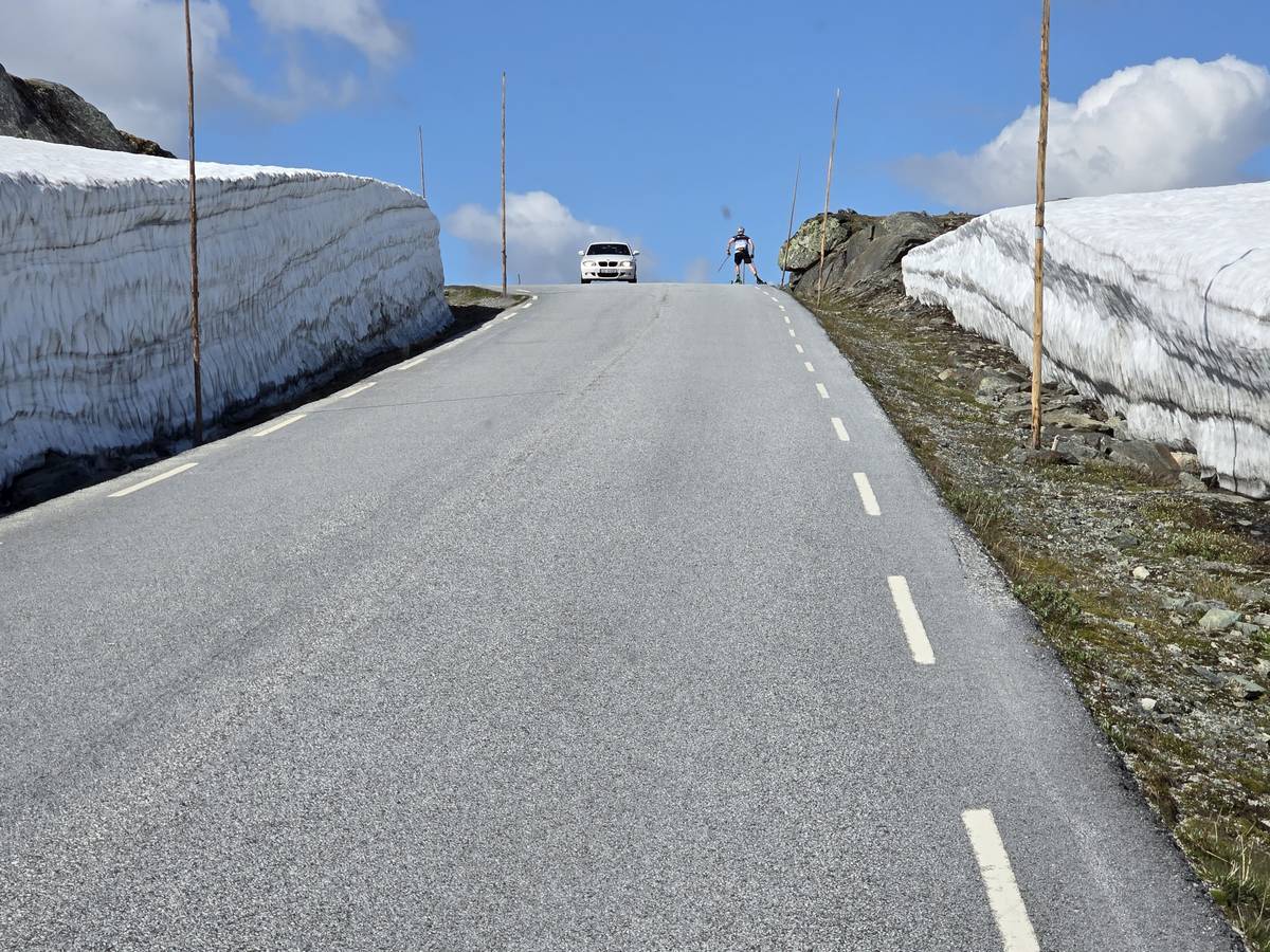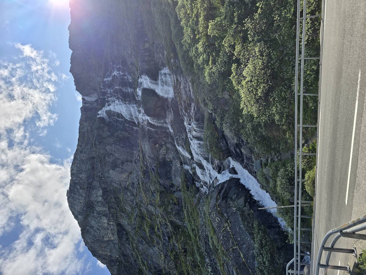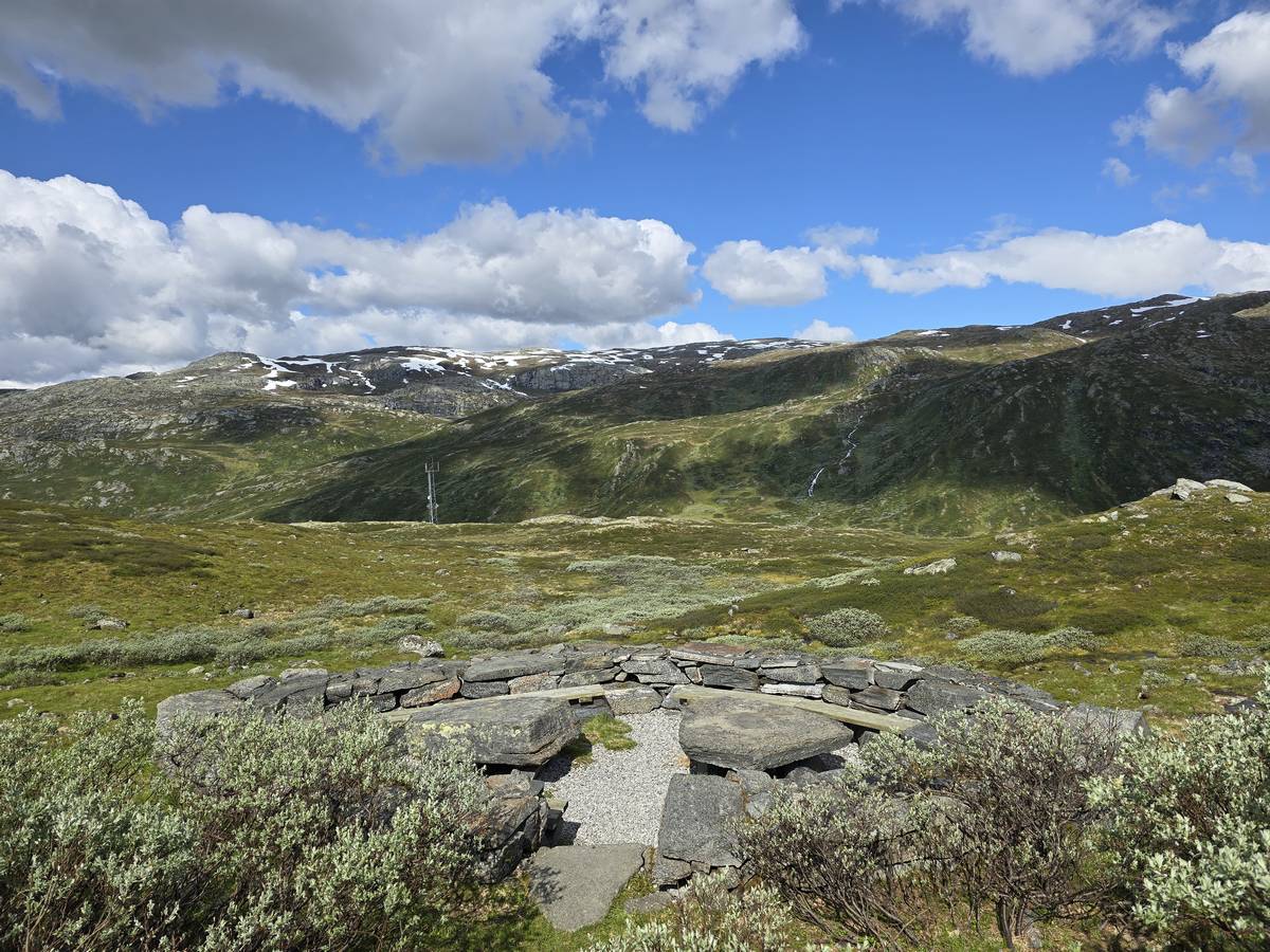 Quelques photos sur la route de Solvorn. Nous sommes sur un haut plateau d'environ 1200m d'altitude et nous cotoyons la neige. Comme partout en Norvège, nous pouvons y admirer les cascades toutes différentes et toutes plus belles les unes que les autres. Nous dormirons après Solvorn sur une aire de stationnement (Coordonnées : 61.283616, 7.164119)