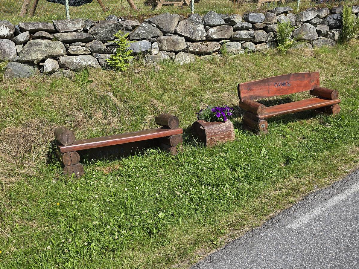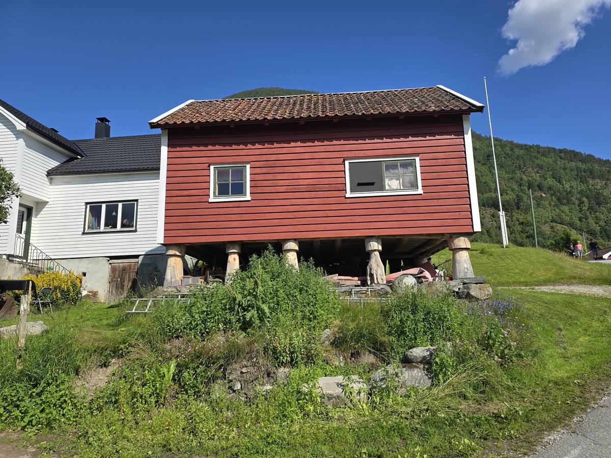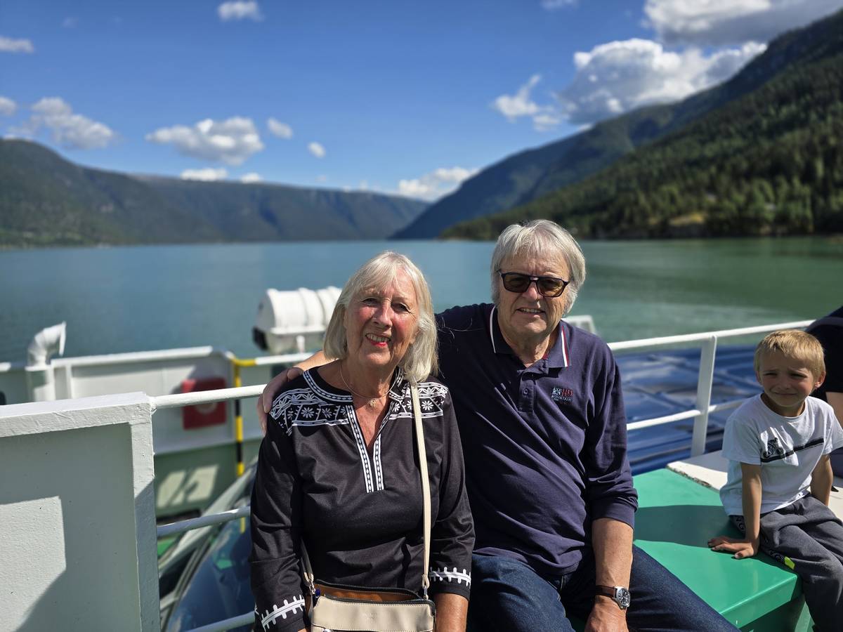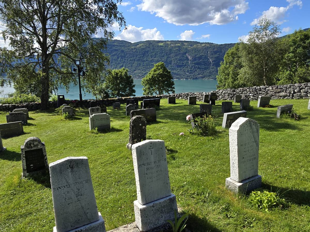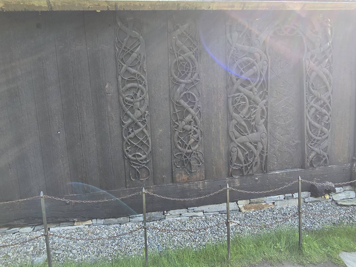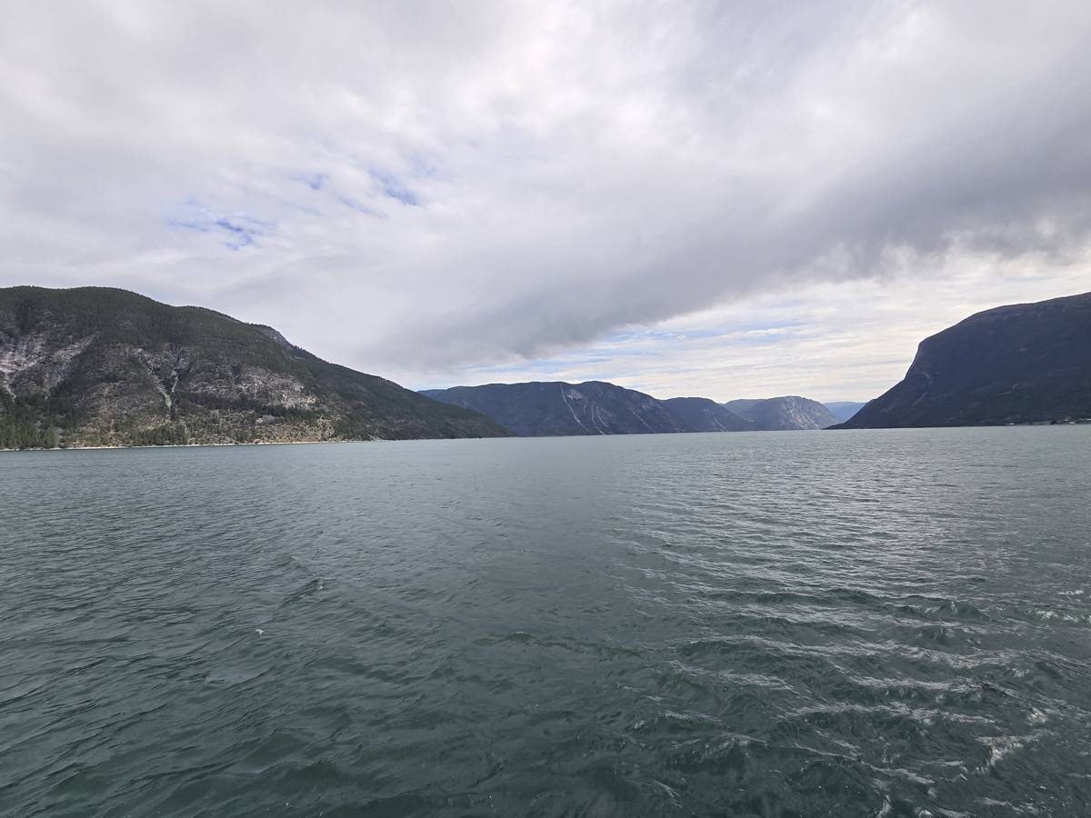 Arrivés à Solvorn, nous posons le camping-car sur le parking près de l'église puis nous prenons le ferry, à pied, pour aller en face à Ornes voir l'église en bois debout d'Urnes. Pour les vicieux qui pensent qu'on aurait pu y aller à la nage, je répondrais qu'on y a pensé, mais l'eau était vraiment froide!!!