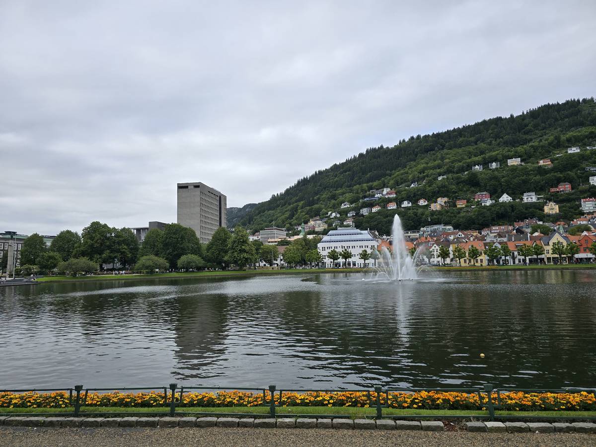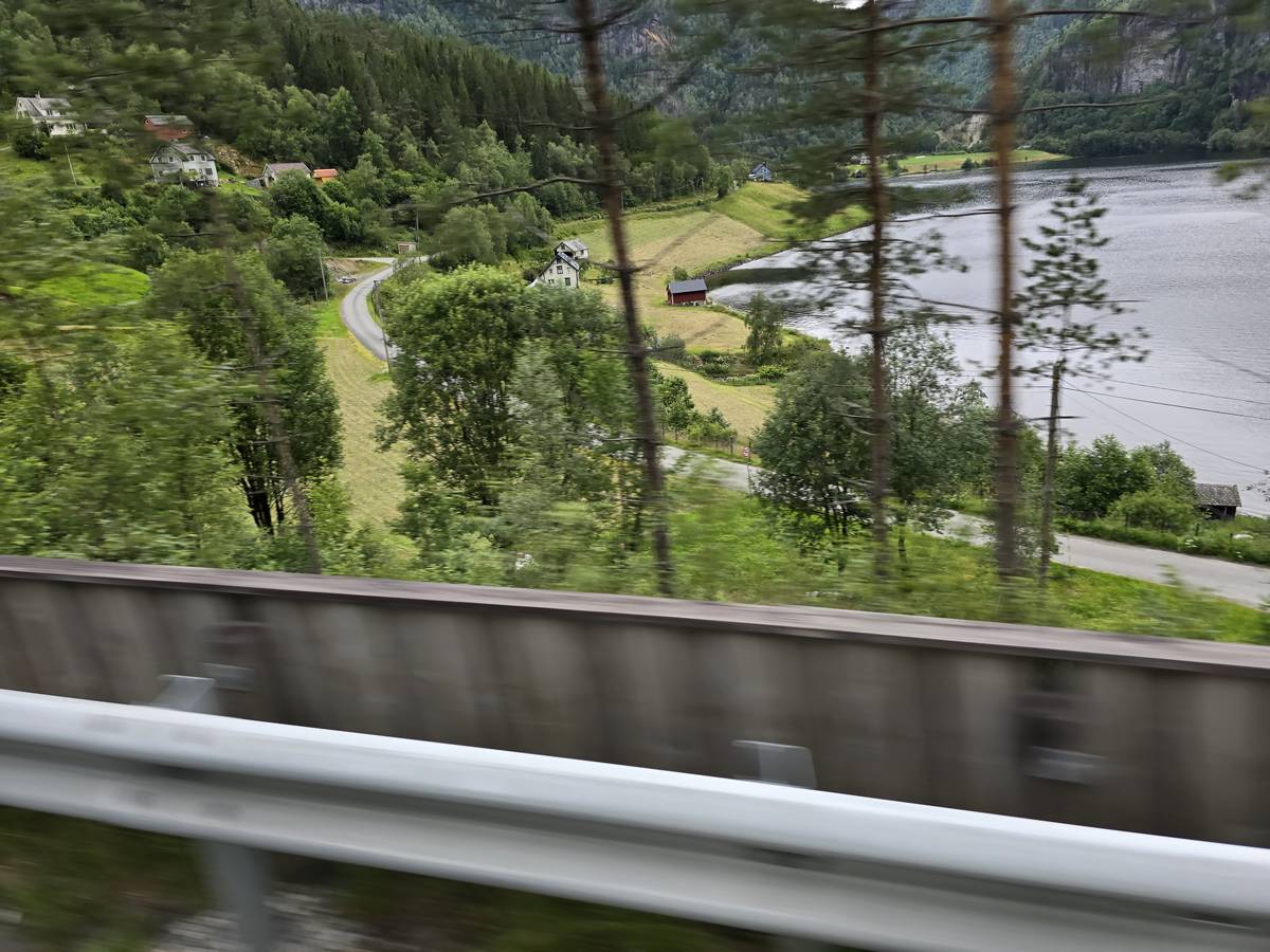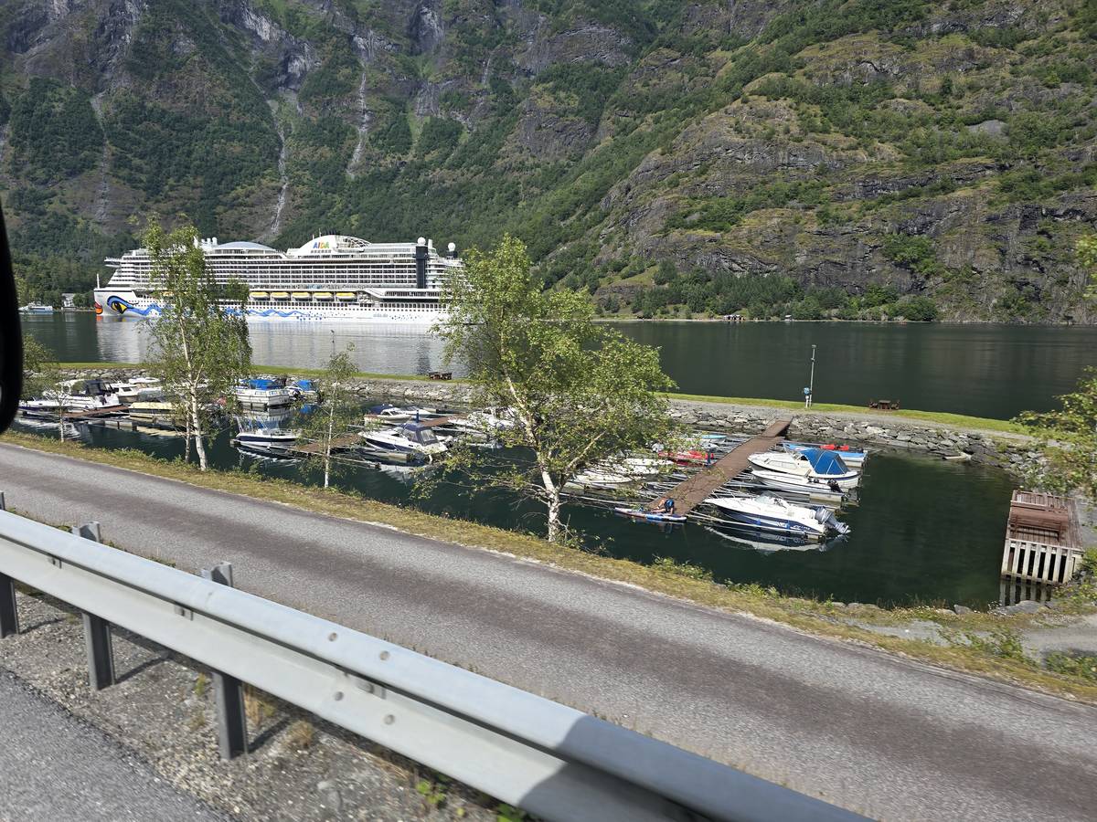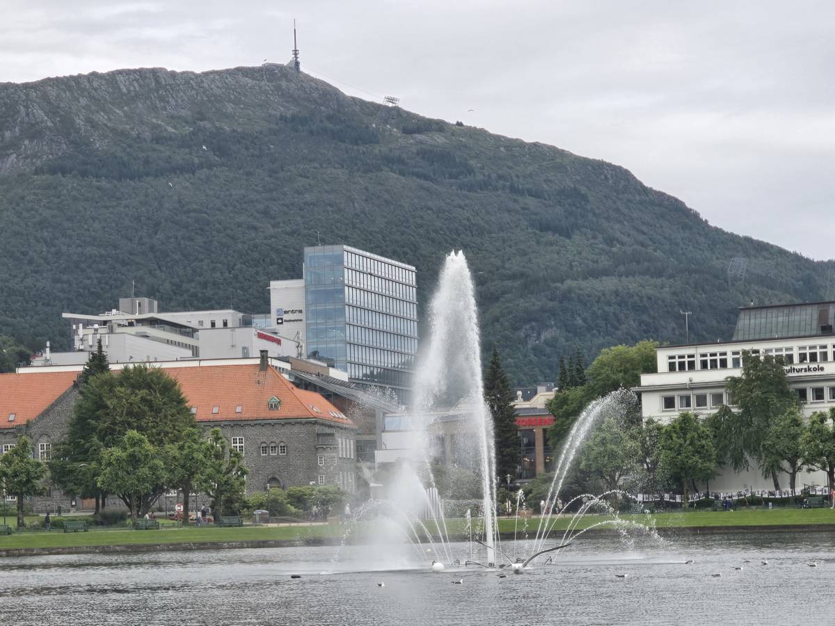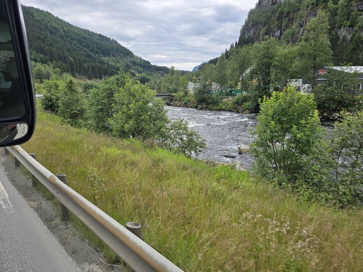 Nous nous rendons à Bergen par la route E16. Beaucoup de tunnels dont un de 24 kilomètres et un de 11,6 kilomètres plus, beaucoup de moindre importance. Nous dormirons à Bergen sur le port. (Coordonnées : 60.392034, 5.312786)