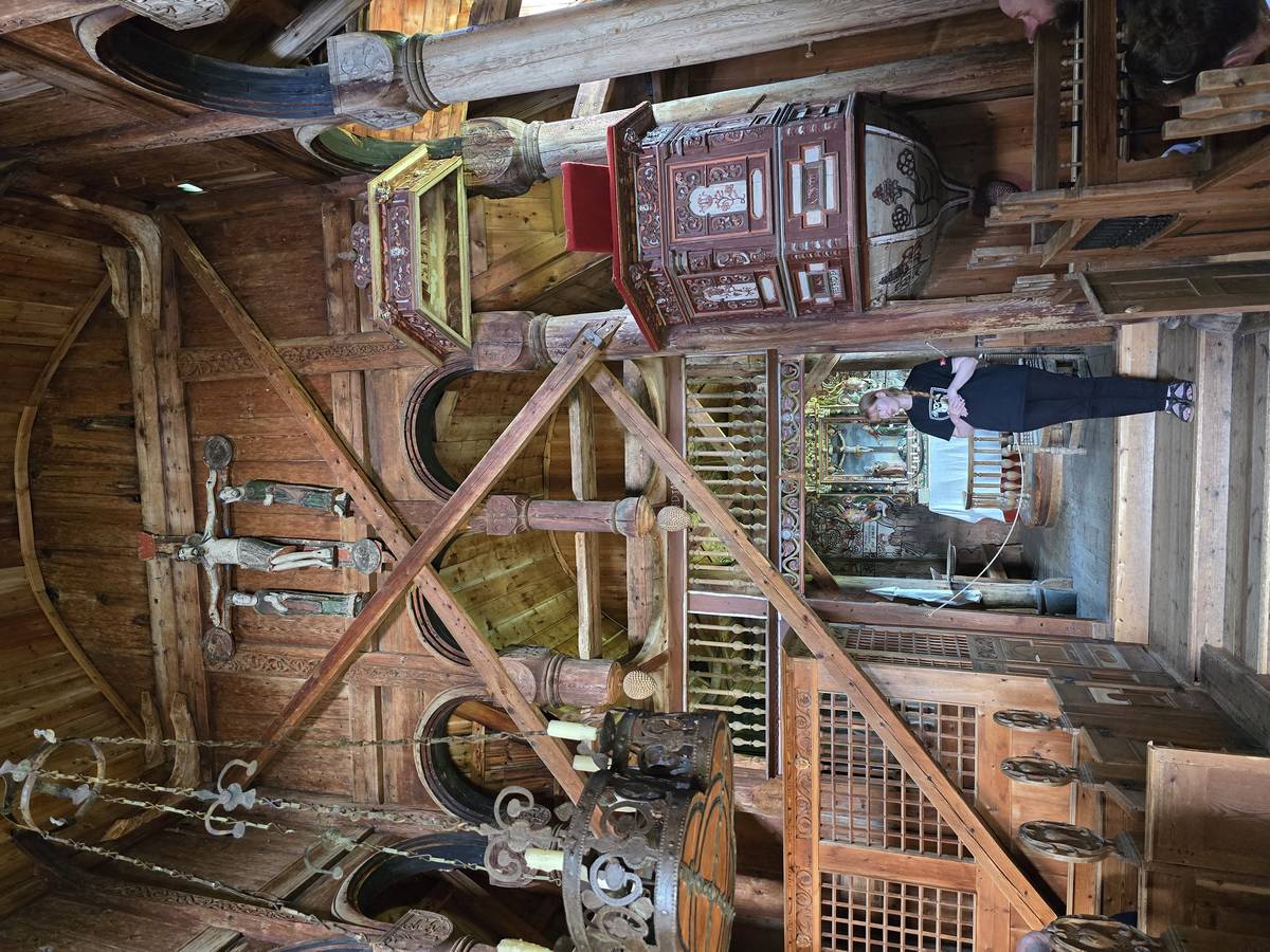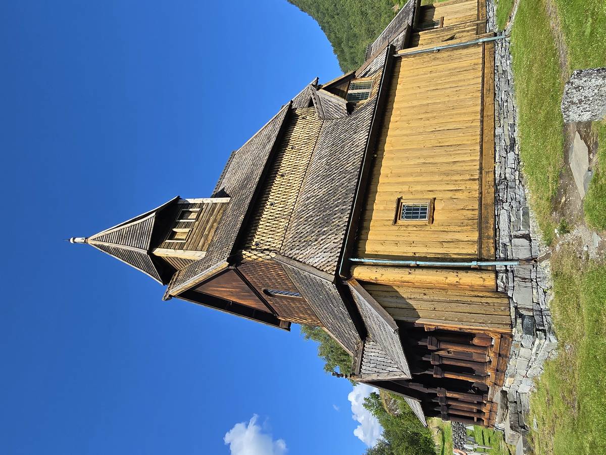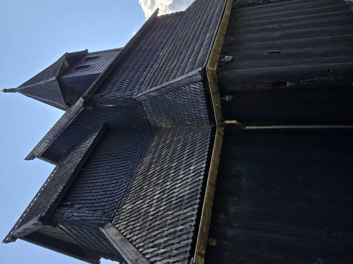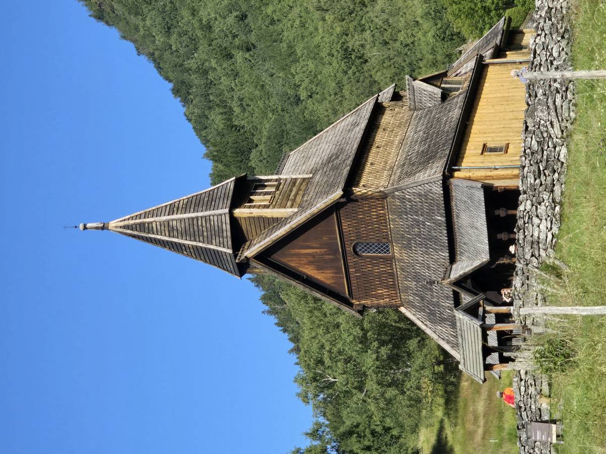 Arrivés à Ornes, ce n'est pas fini, il faut grimper environ 20 minutes, par une petite route en lacets jusqu'à l'église en bois debout qui mérite cette ascension. Vous me croirez si vous voulez, mais la descente a été plus agréable... De plus, nous avons eu un beau temps... Il s'est mis à pleuvoir soudainement alors que nous venions de rentrer dans le camping-car.