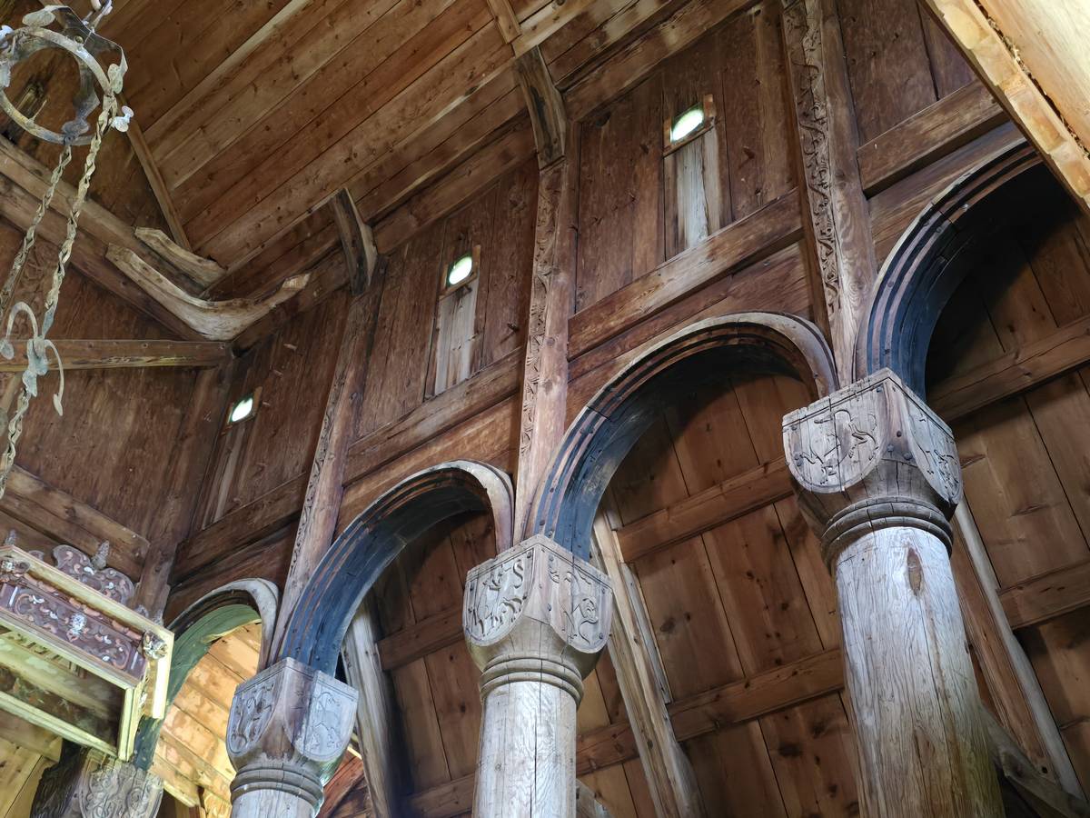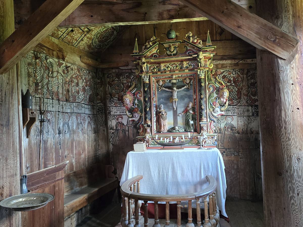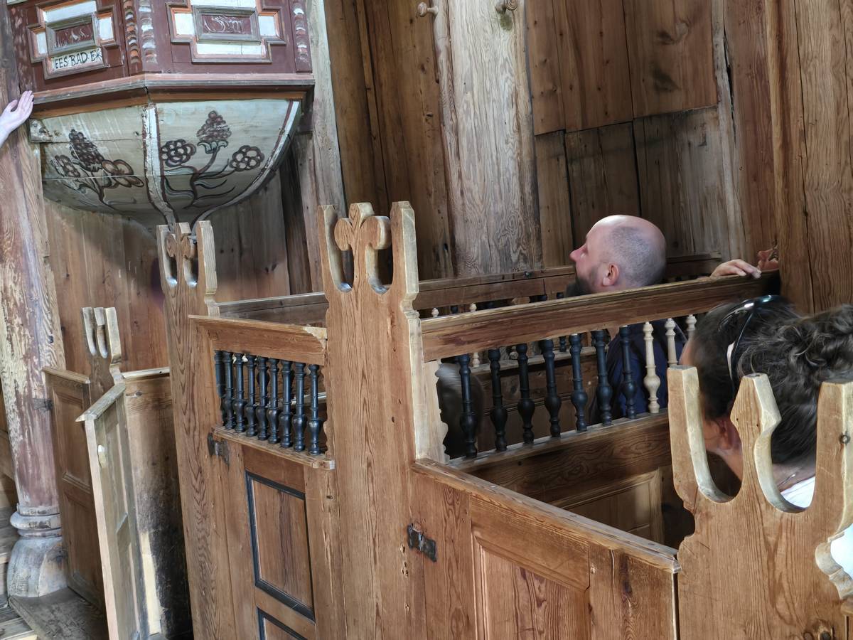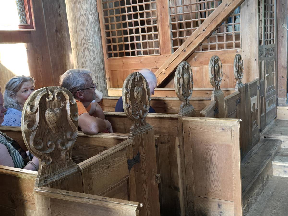Arrivés à Ornes, ce n'est pas fini, il faut grimper environ 20 minutes, par une petite route en lacets jusqu'à l'église en bois debout qui mérite cette ascension. Vous me croirez si vous voulez, mais la descente a été plus agréable... De plus, nous avons eu un beau temps... Il s'est mis à pleuvoir soudainement alors que nous venions de rentrer dans le camping-car.