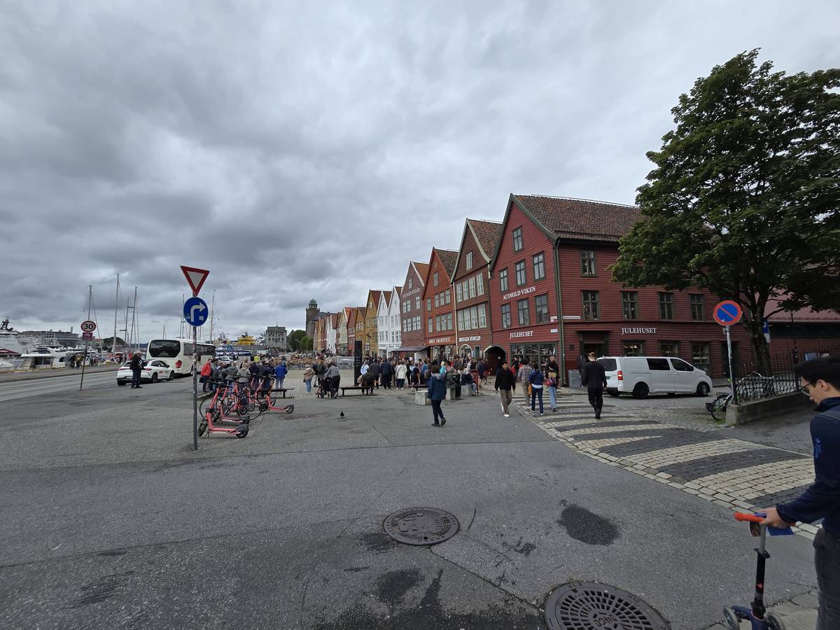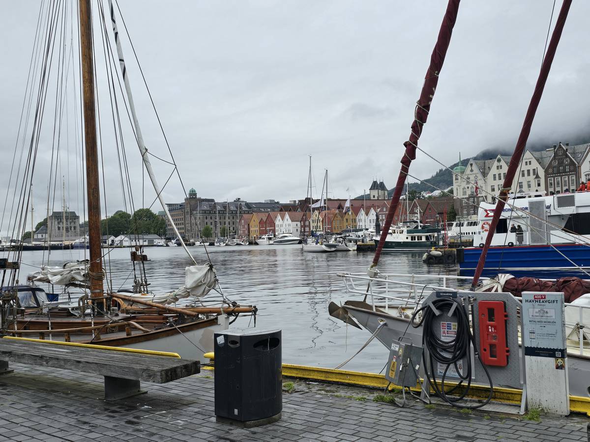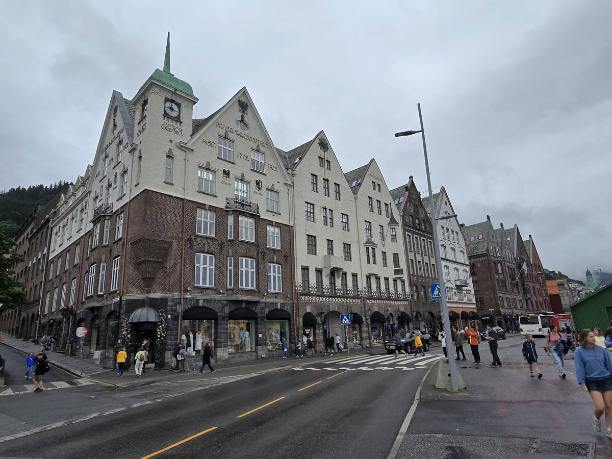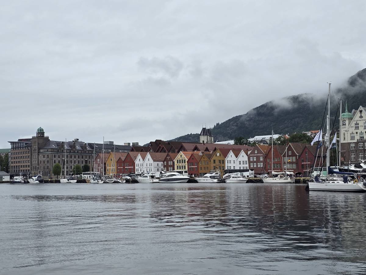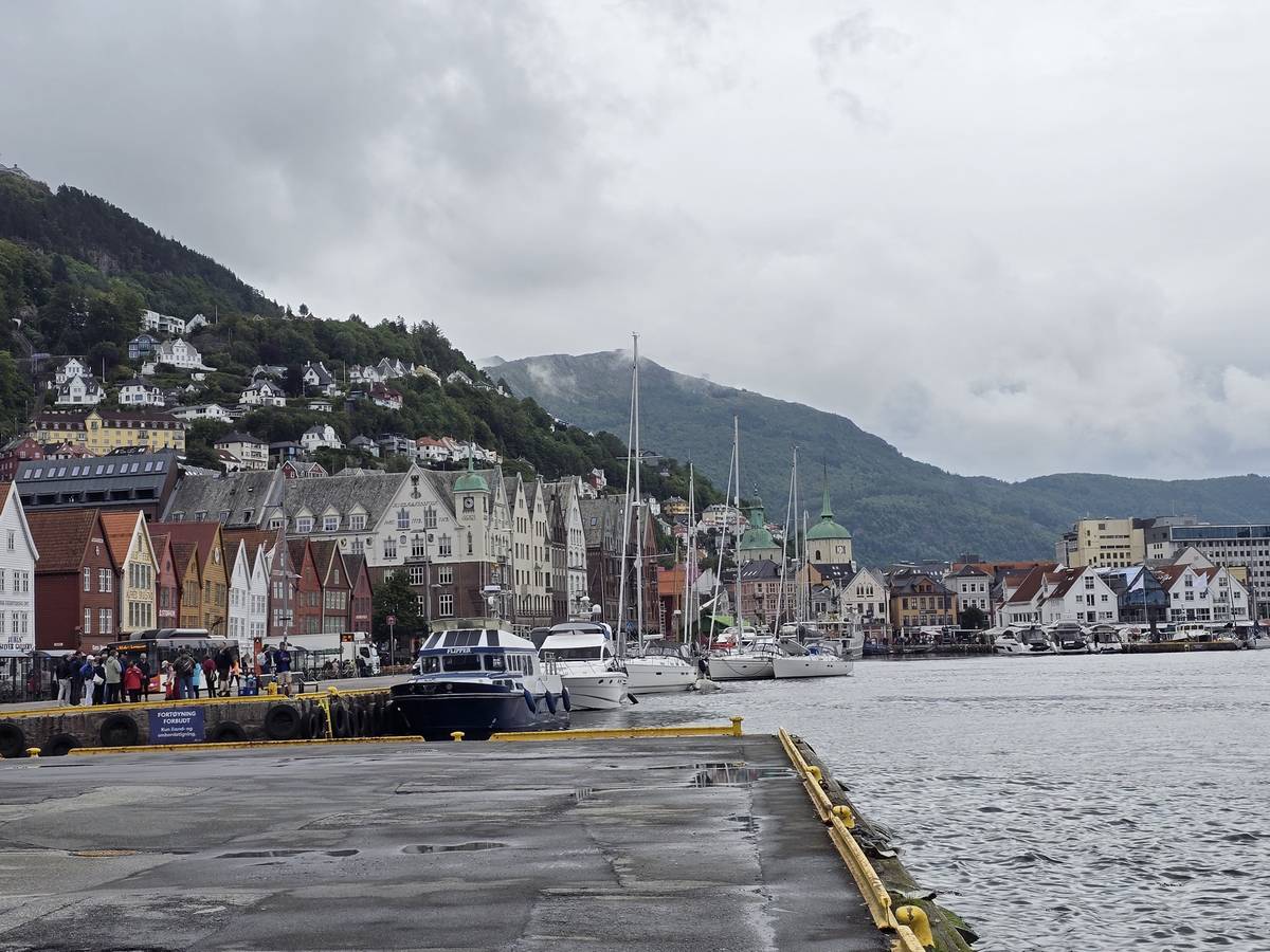 La nuit a été bonne malgré le bruit des moteurs des gros bateaux à touristes. Quand je dis nuit, c'est d'une nuit encore claire dont je parle, nous n'avons pas encore retrouvé une vraie nuit, ce n'est qu'à Jorpeland que nous retrouverons une nuit qu'on pourra appeler nuit. Ce matin, nous retournons faire un tour, cette fois dans le vieux Bergen. Il pleut, mais nous sommes bretons!!! Nous déjeunerons sur le lieu de bivouac, puis nous nous dirigeons vers les cascades jumelles de Latefossen que nous atteindrons le soir. Nous dormons sur le parking des cascades de Latefossen (Coordonnées : 59.948080, 6.583847)