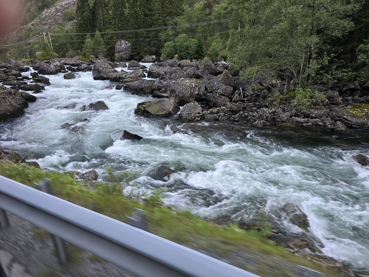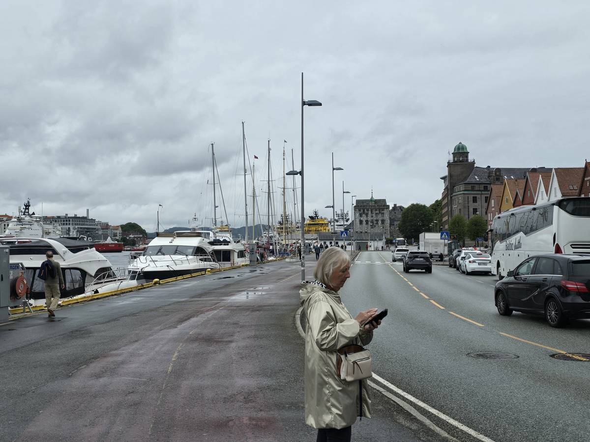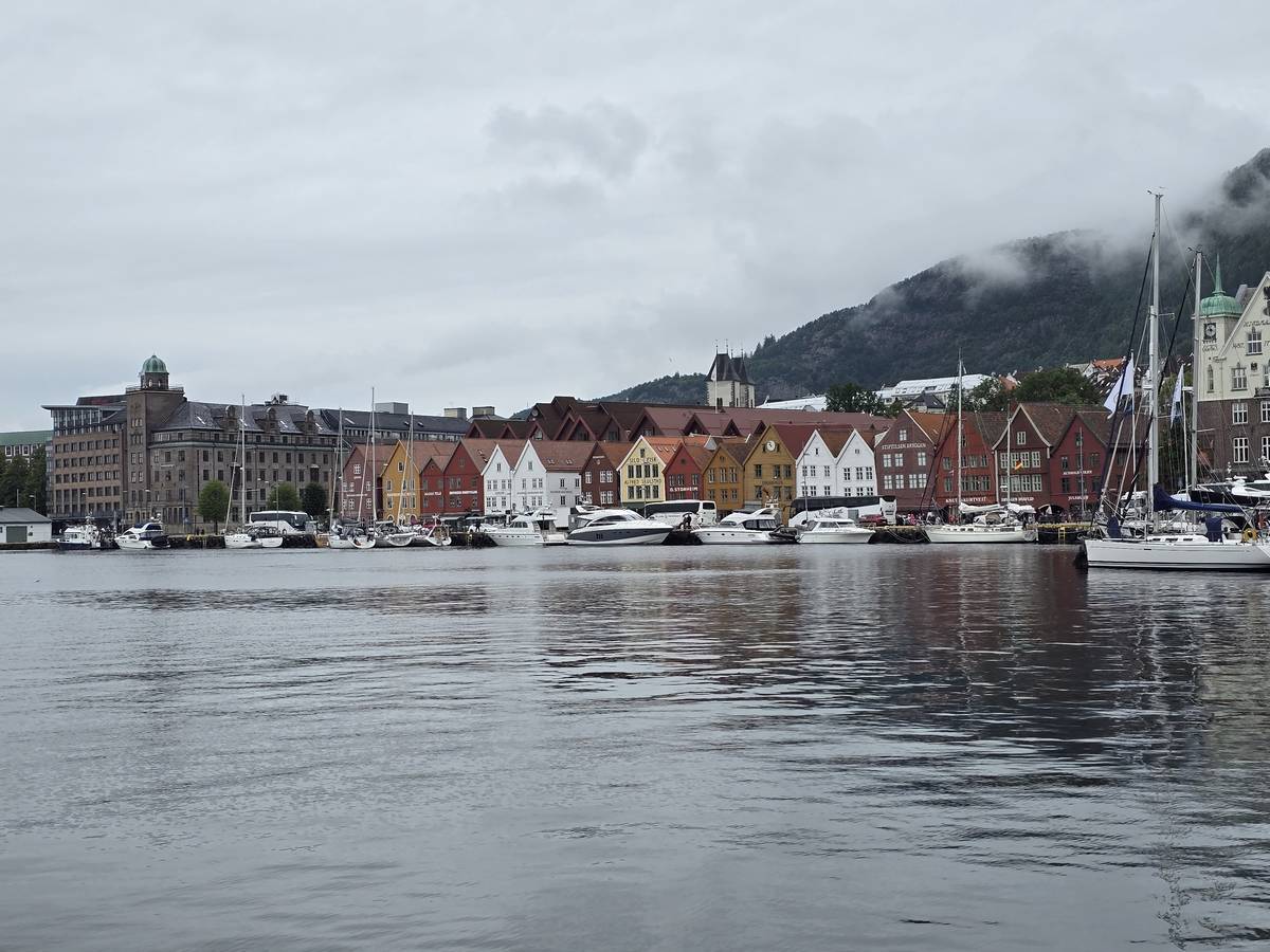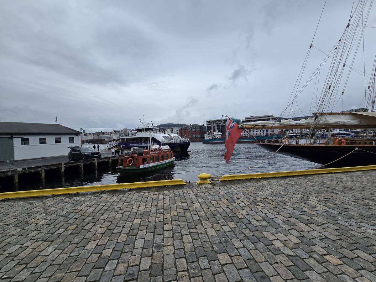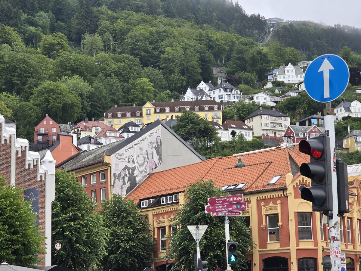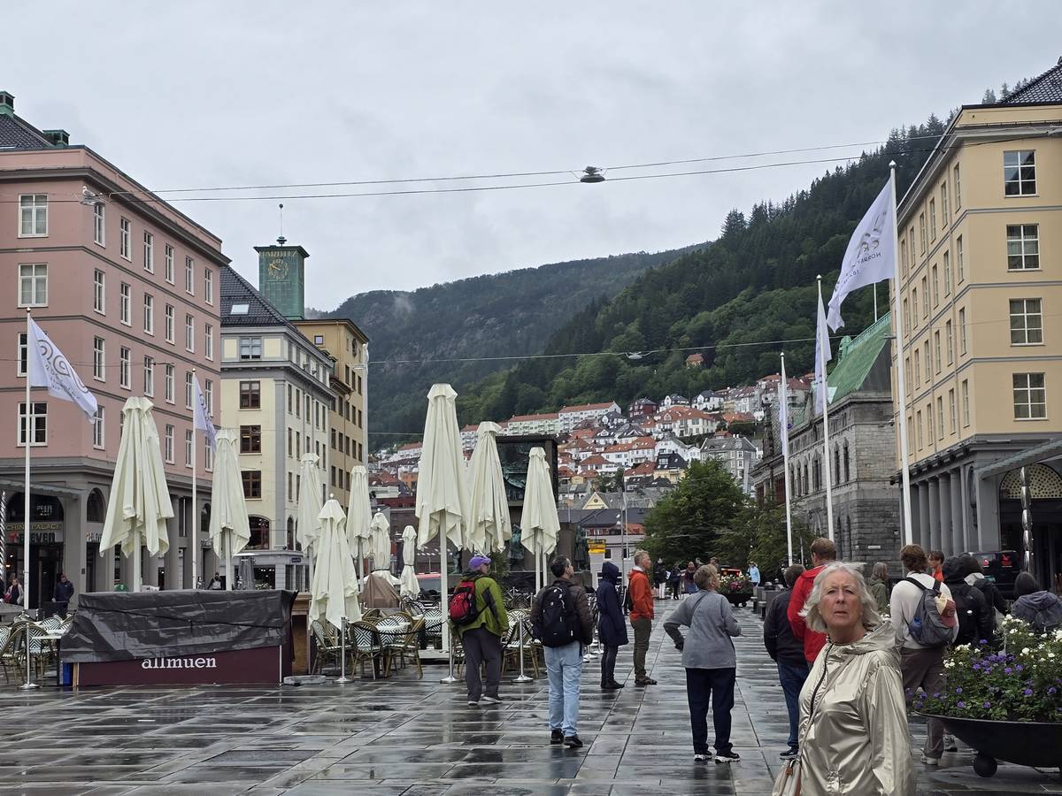 La nuit a été bonne malgré le bruit des moteurs des gros bateaux à touristes. Quand je dis nuit, c'est d'une nuit encore claire dont je parle, nous n'avons pas encore retrouvé une vraie nuit, ce n'est qu'à Jorpeland que nous retrouverons une nuit qu'on pourra appeler nuit. Ce matin, nous retournons faire un tour, cette fois dans le vieux Bergen. Il pleut, mais nous sommes bretons!!! Nous déjeunerons sur le lieu de bivouac, puis nous nous dirigeons vers les cascades jumelles de Latefossen que nous atteindrons le soir. Nous dormons sur le parking des cascades de Latefossen (Coordonnées : 59.948080, 6.583847)