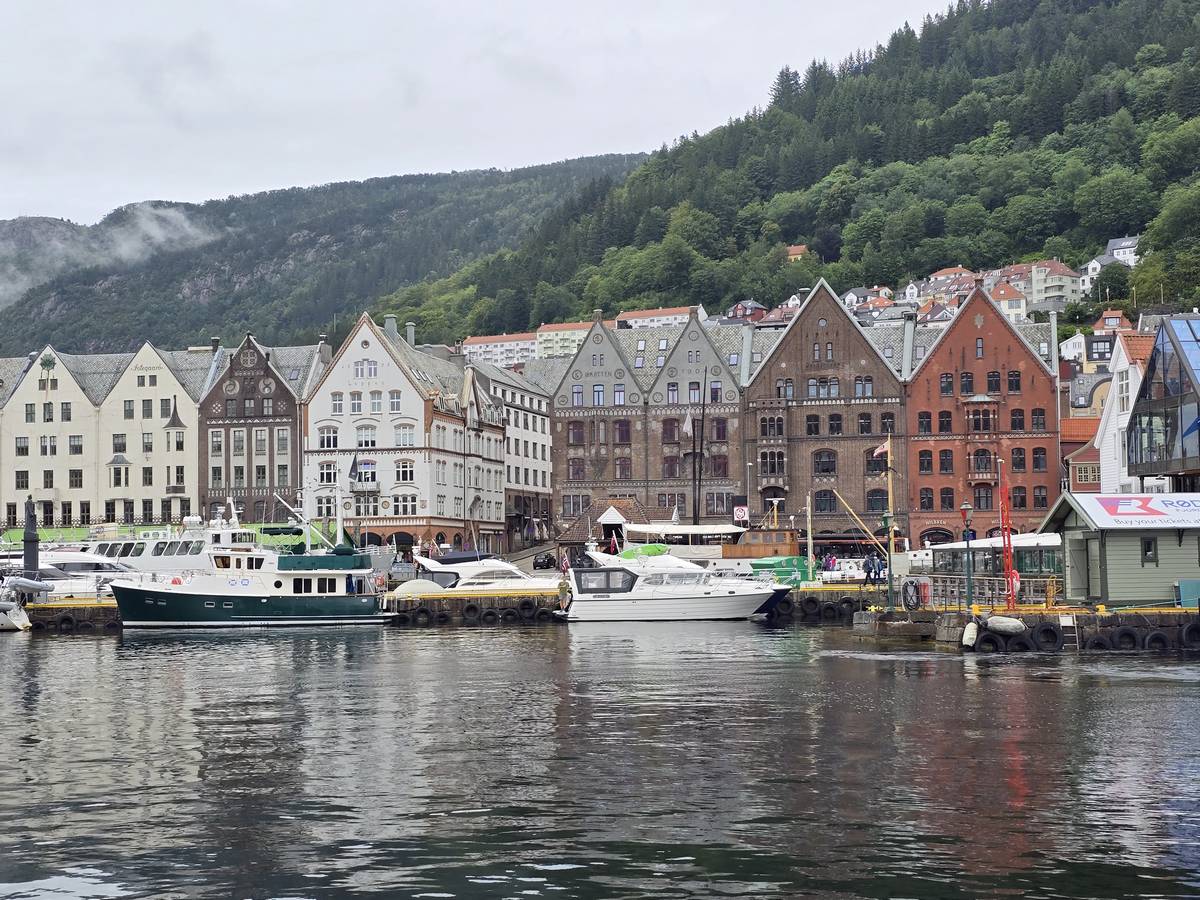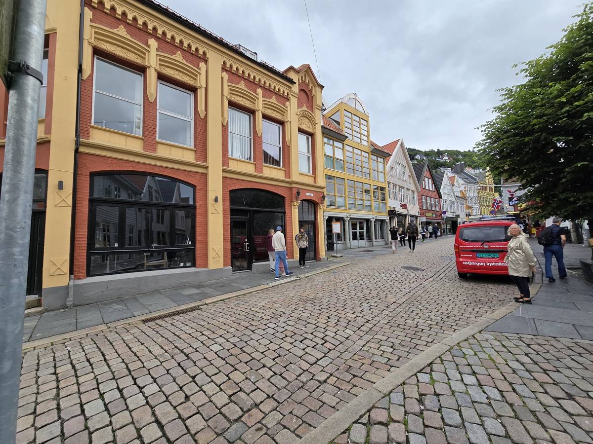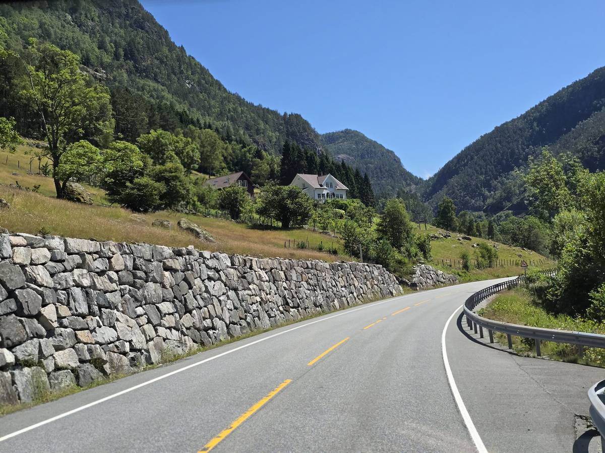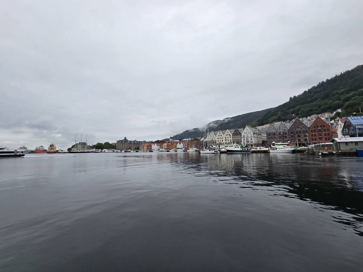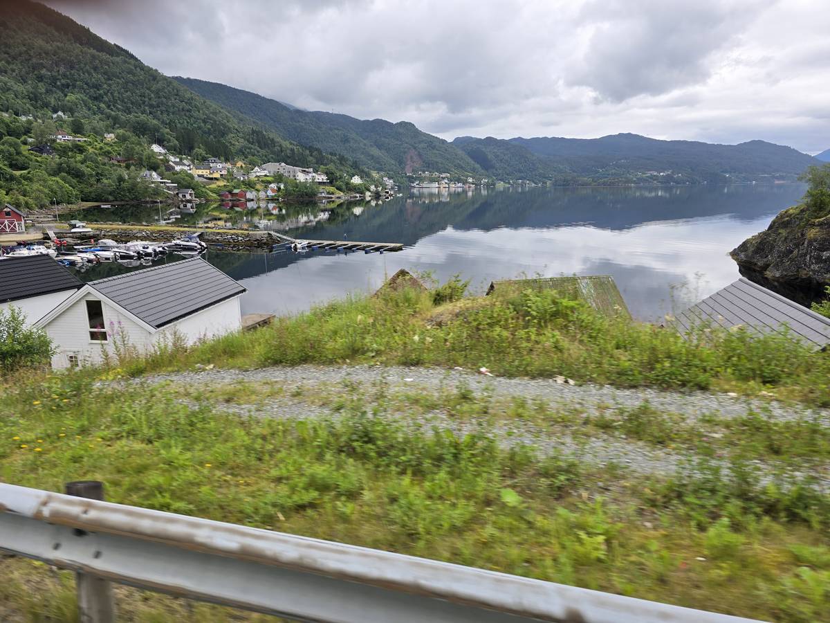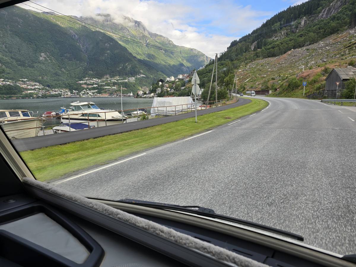 La nuit a été bonne malgré le bruit des moteurs des gros bateaux à touristes. Quand je dis nuit, c'est d'une nuit encore claire dont je parle, nous n'avons pas encore retrouvé une vraie nuit, ce n'est qu'à Jorpeland que nous retrouverons une nuit qu'on pourra appeler nuit. Ce matin, nous retournons faire un tour, cette fois dans le vieux Bergen. Il pleut, mais nous sommes bretons!!! Nous déjeunerons sur le lieu de bivouac, puis nous nous dirigeons vers les cascades jumelles de Latefossen que nous atteindrons le soir. Nous dormons sur le parking des cascades de Latefossen (Coordonnées : 59.948080, 6.583847)