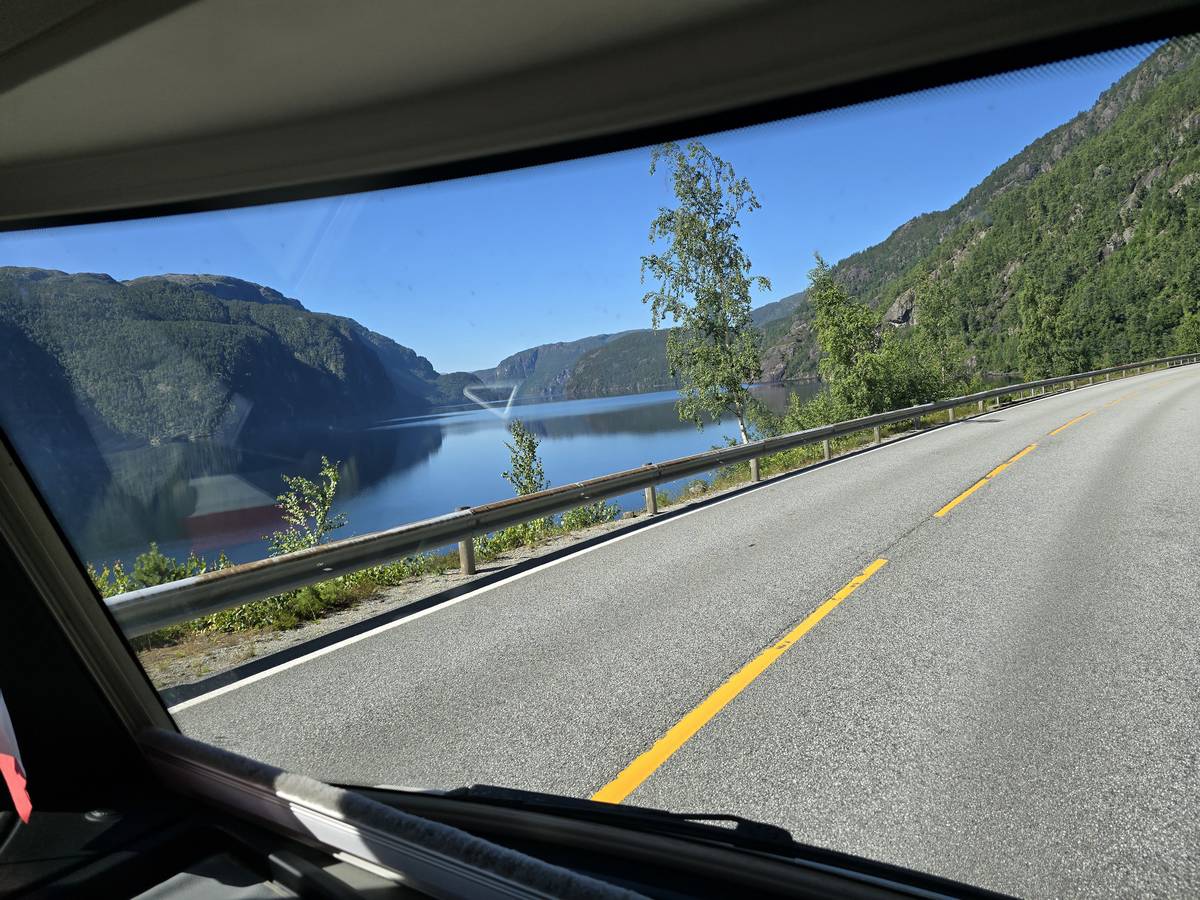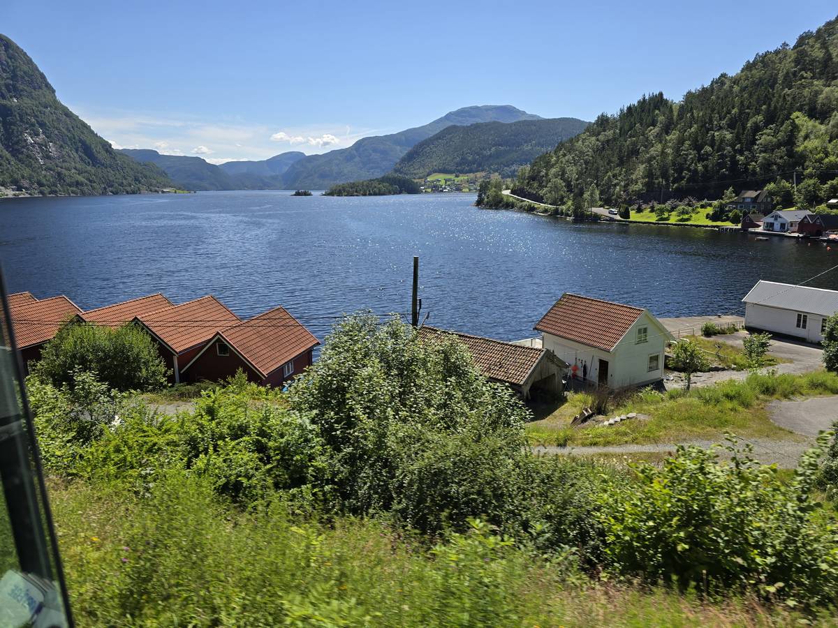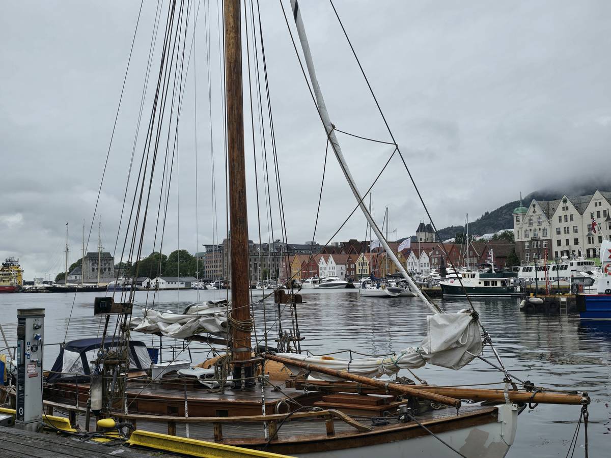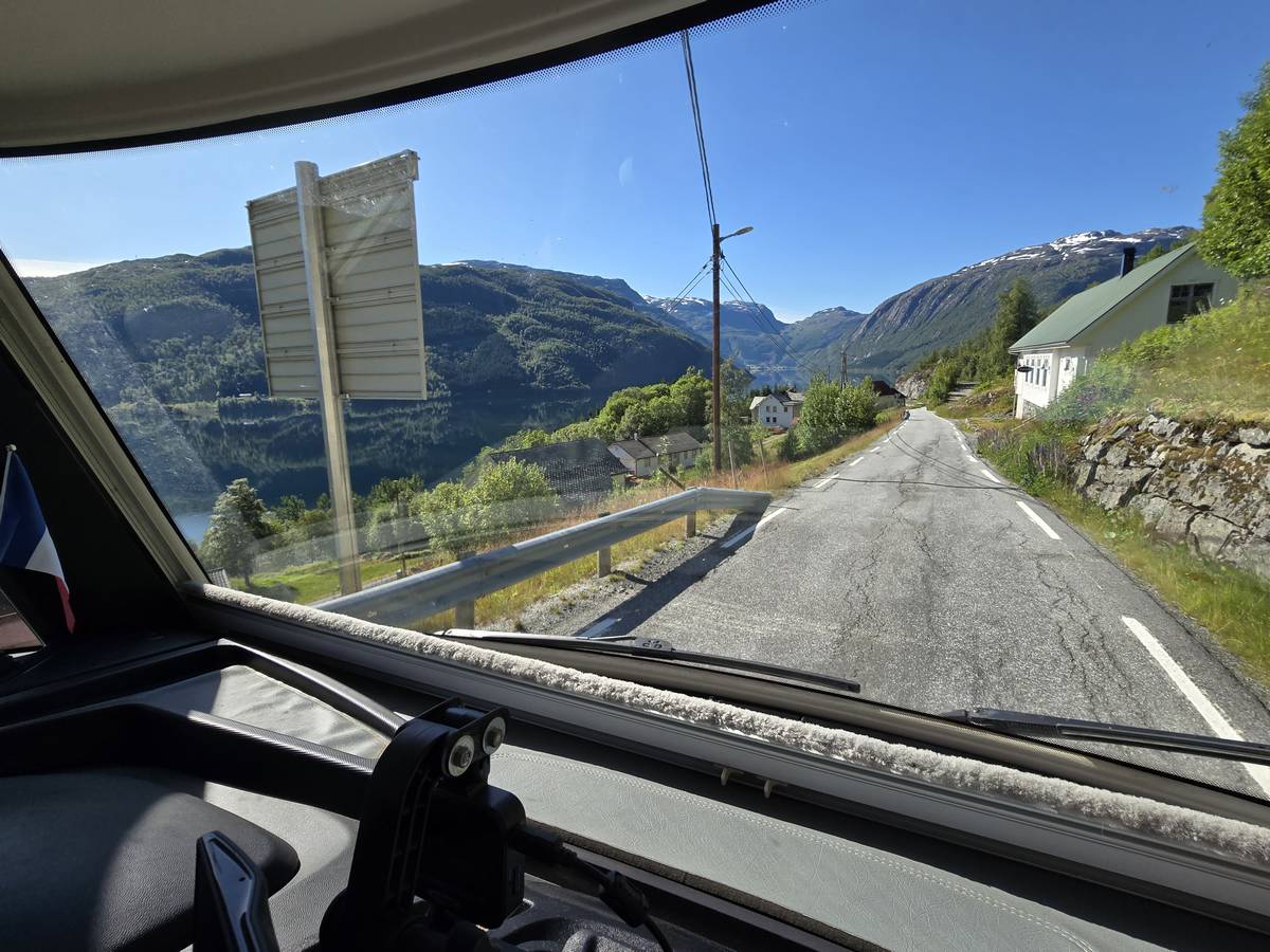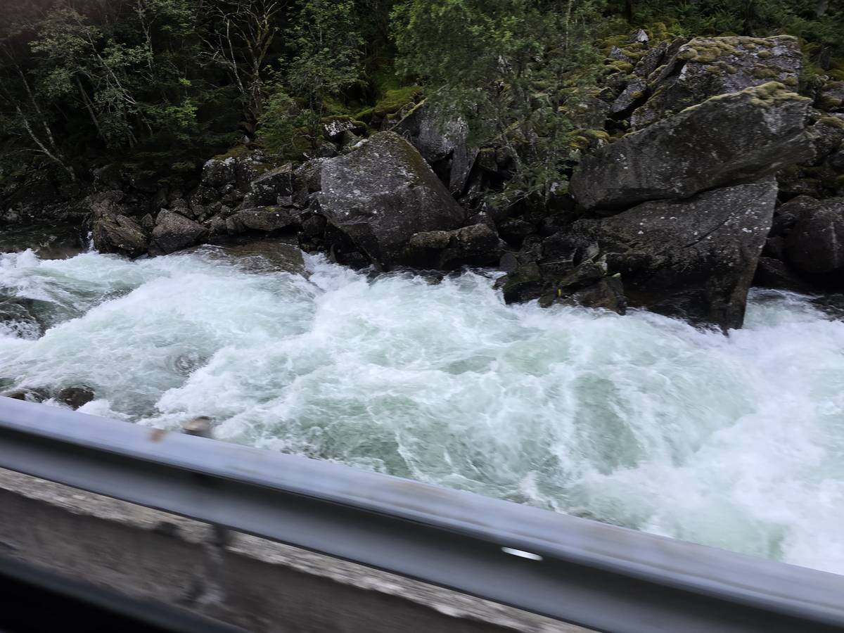 La nuit a été bonne malgré le bruit des moteurs des gros bateaux à touristes. Quand je dis nuit, c'est d'une nuit encore claire dont je parle, nous n'avons pas encore retrouvé une vraie nuit, ce n'est qu'à Jorpeland que nous retrouverons une nuit qu'on pourra appeler nuit. Ce matin, nous retournons faire un tour, cette fois dans le vieux Bergen. Il pleut, mais nous sommes bretons!!! Nous déjeunerons sur le lieu de bivouac, puis nous nous dirigeons vers les cascades jumelles de Latefossen que nous atteindrons le soir. Nous dormons sur le parking des cascades de Latefossen (Coordonnées : 59.948080, 6.583847)
