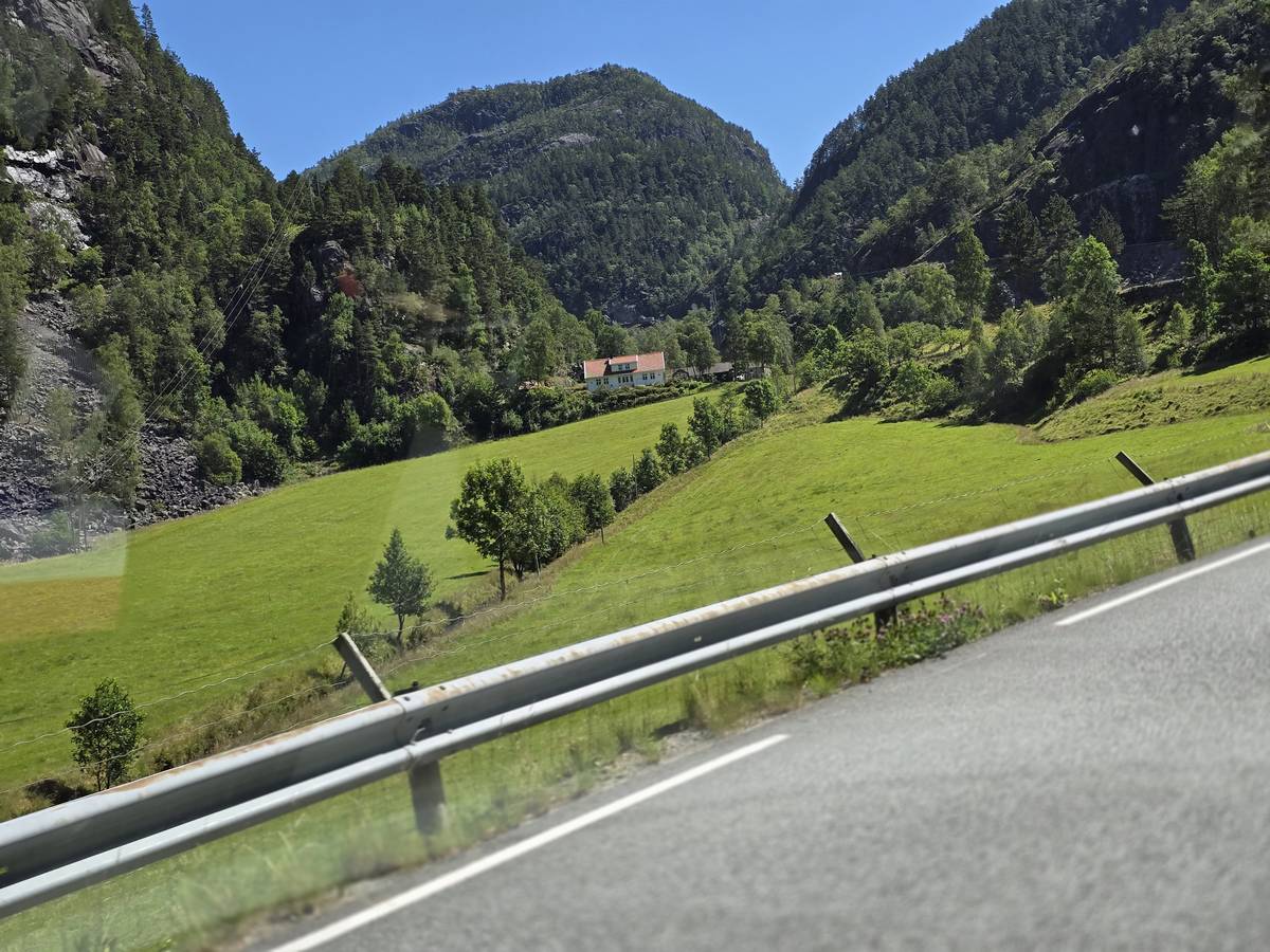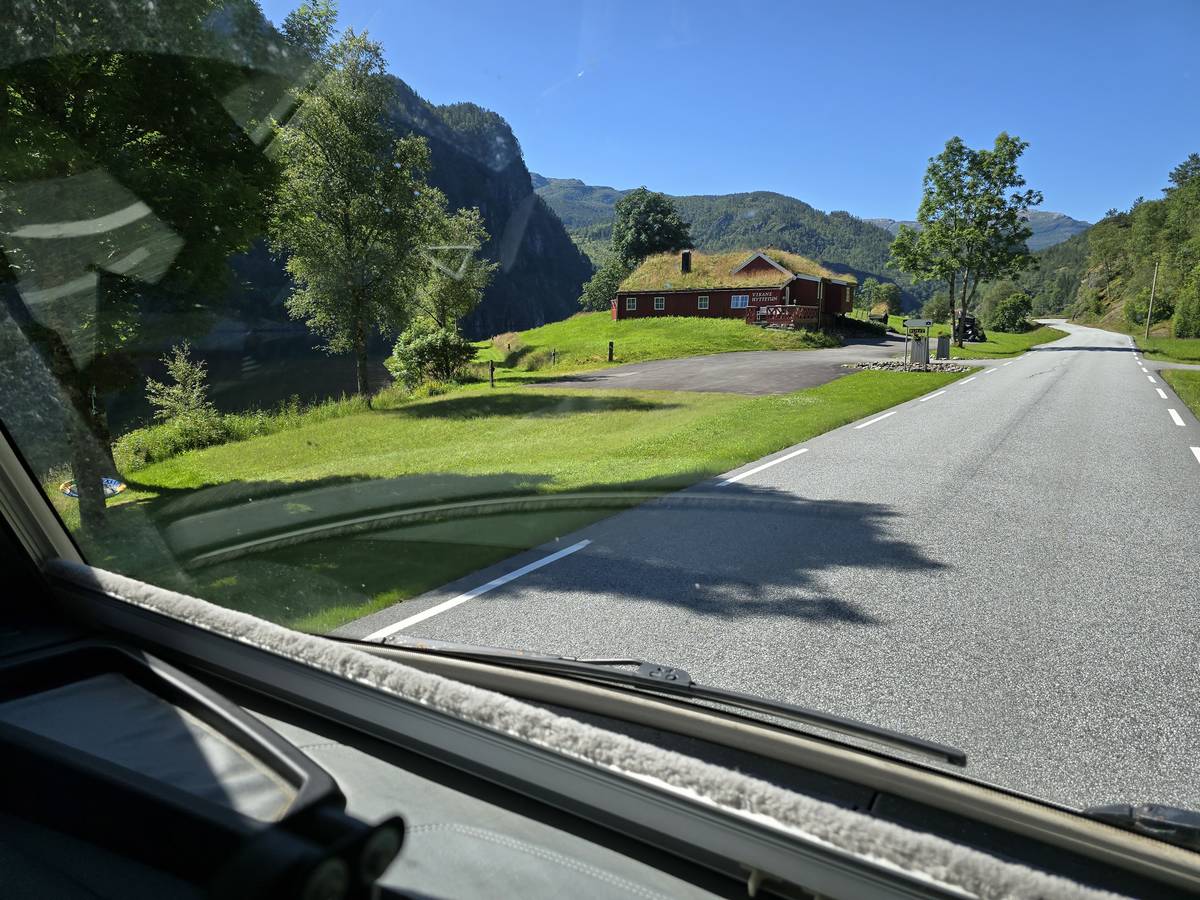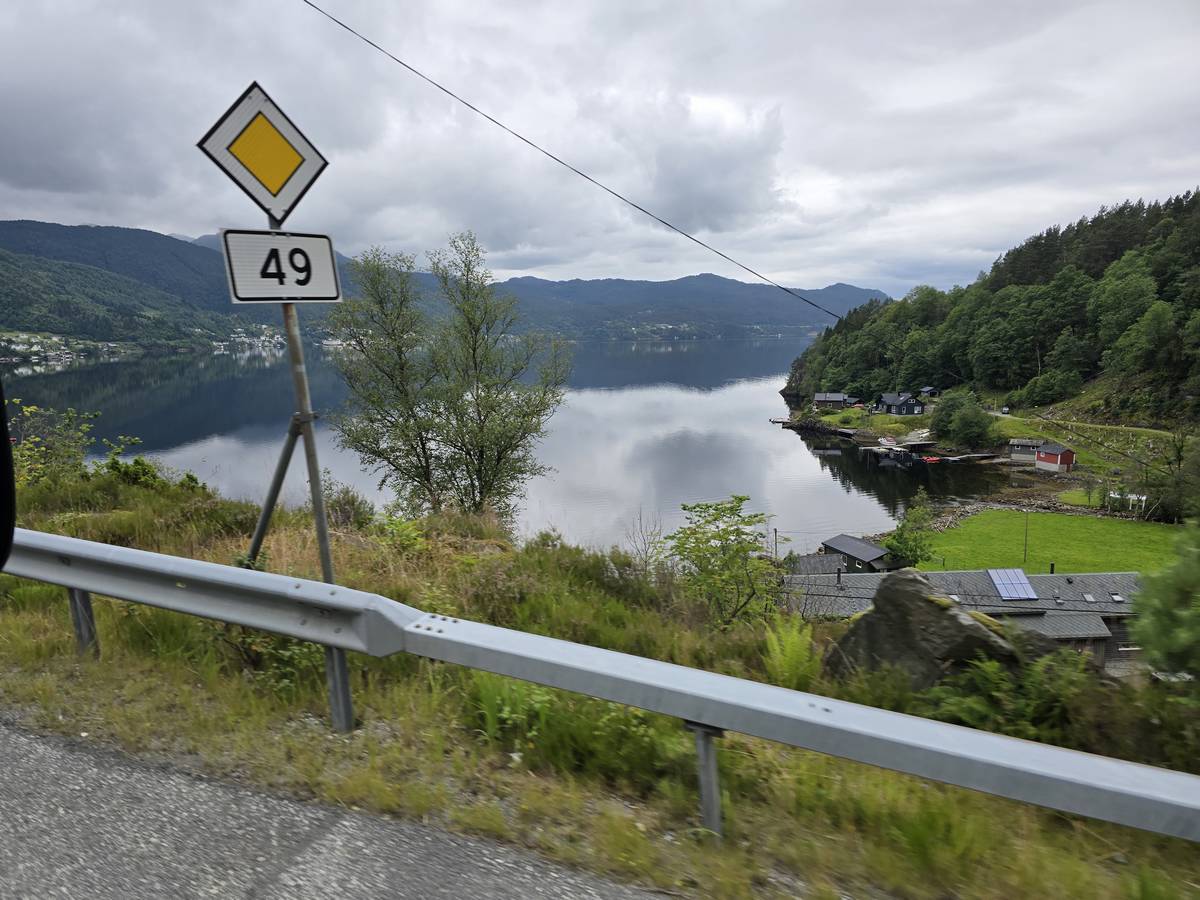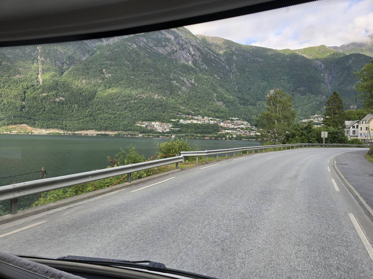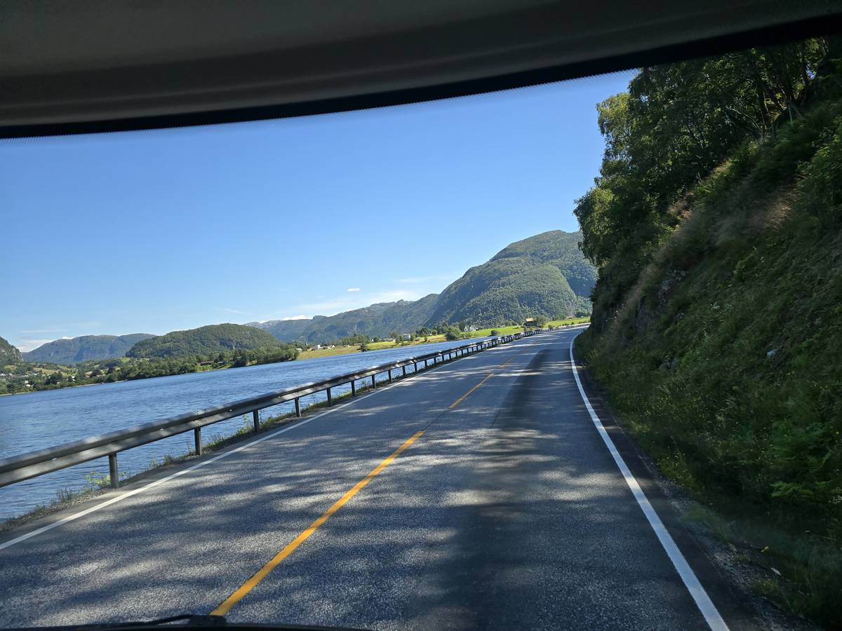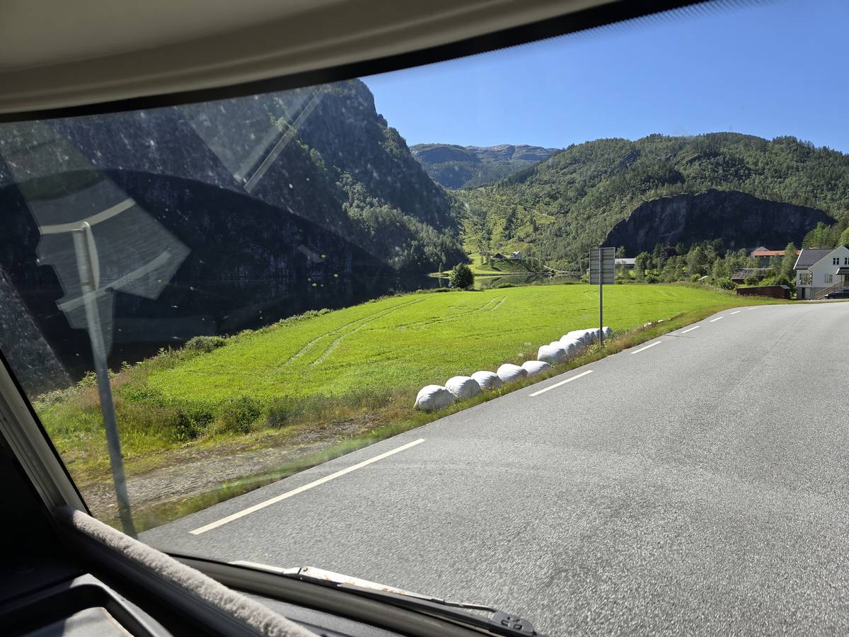 La nuit a été bonne malgré le bruit des moteurs des gros bateaux à touristes. Quand je dis nuit, c'est d'une nuit encore claire dont je parle, nous n'avons pas encore retrouvé une vraie nuit, ce n'est qu'à Jorpeland que nous retrouverons une nuit qu'on pourra appeler nuit. Ce matin, nous retournons faire un tour, cette fois dans le vieux Bergen. Il pleut, mais nous sommes bretons!!! Nous déjeunerons sur le lieu de bivouac, puis nous nous dirigeons vers les cascades jumelles de Latefossen que nous atteindrons le soir. Nous dormons sur le parking des cascades de Latefossen (Coordonnées : 59.948080, 6.583847)